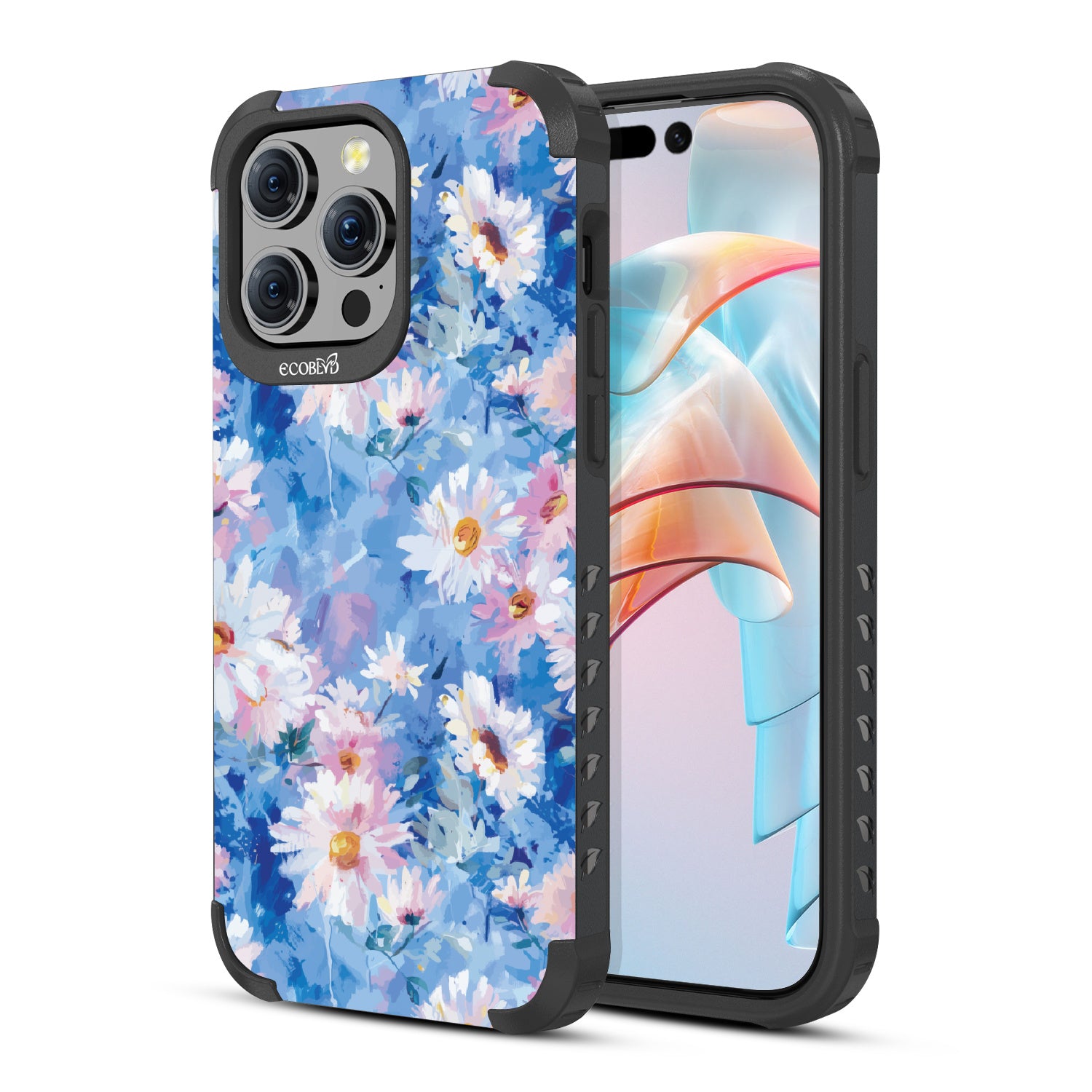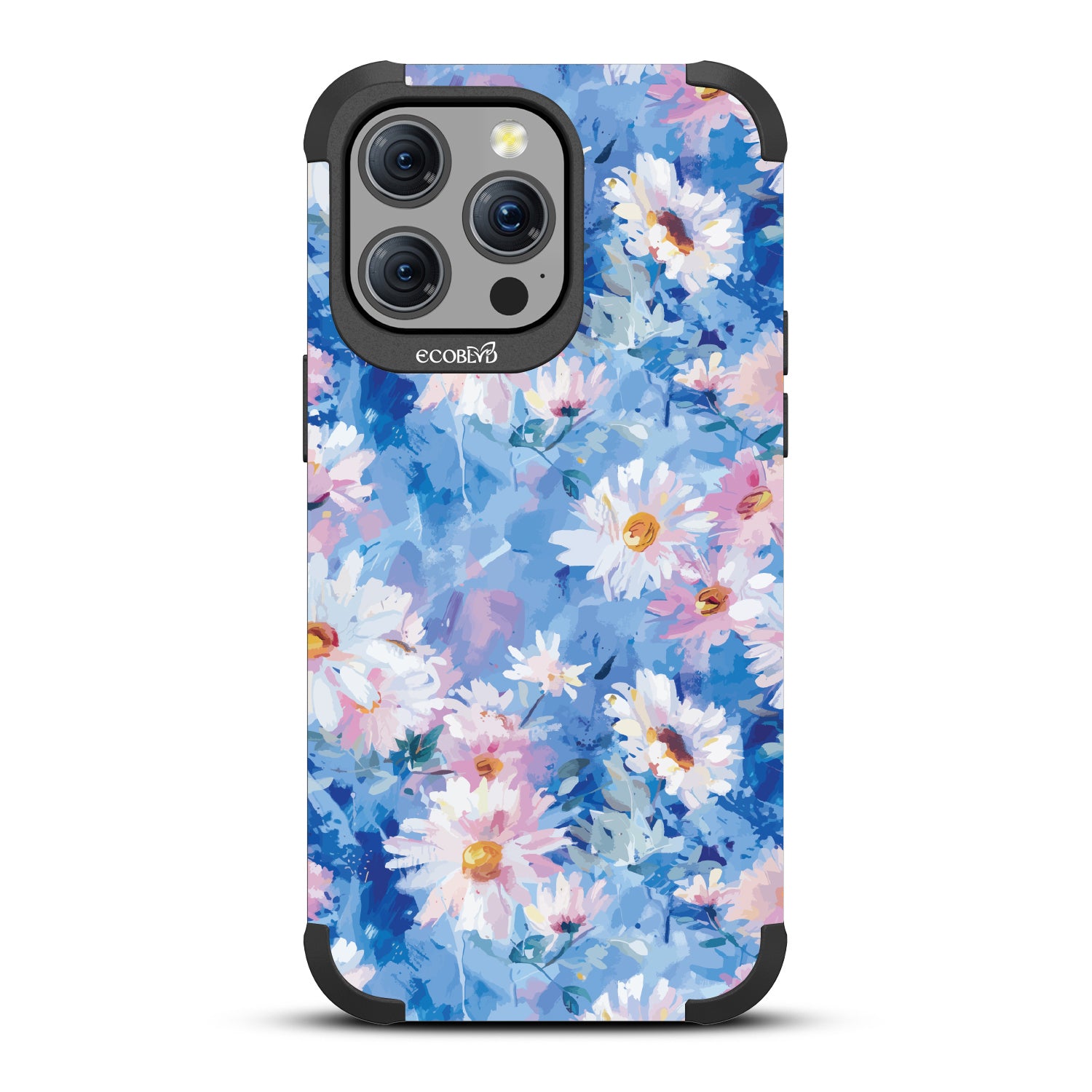 It’s a breeze really. The Blown Away design on our Mojave rugged and compostable iPhone 15 Pro Max case sends soft daisy petals swirling across layered blue strokes, like a gust caught mid-canvas. Each pastel bloom feels weightless but intentional—an airy moment you can hold onto.