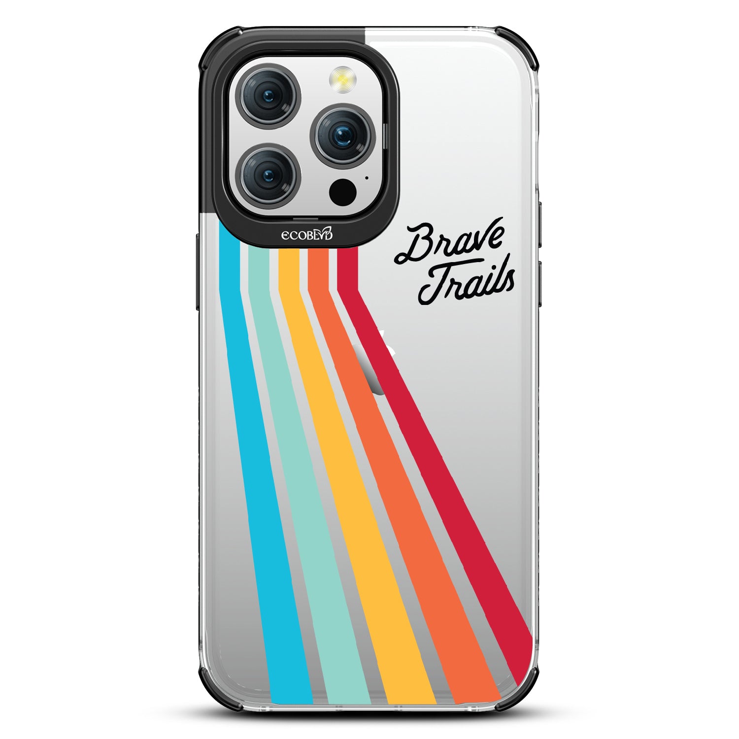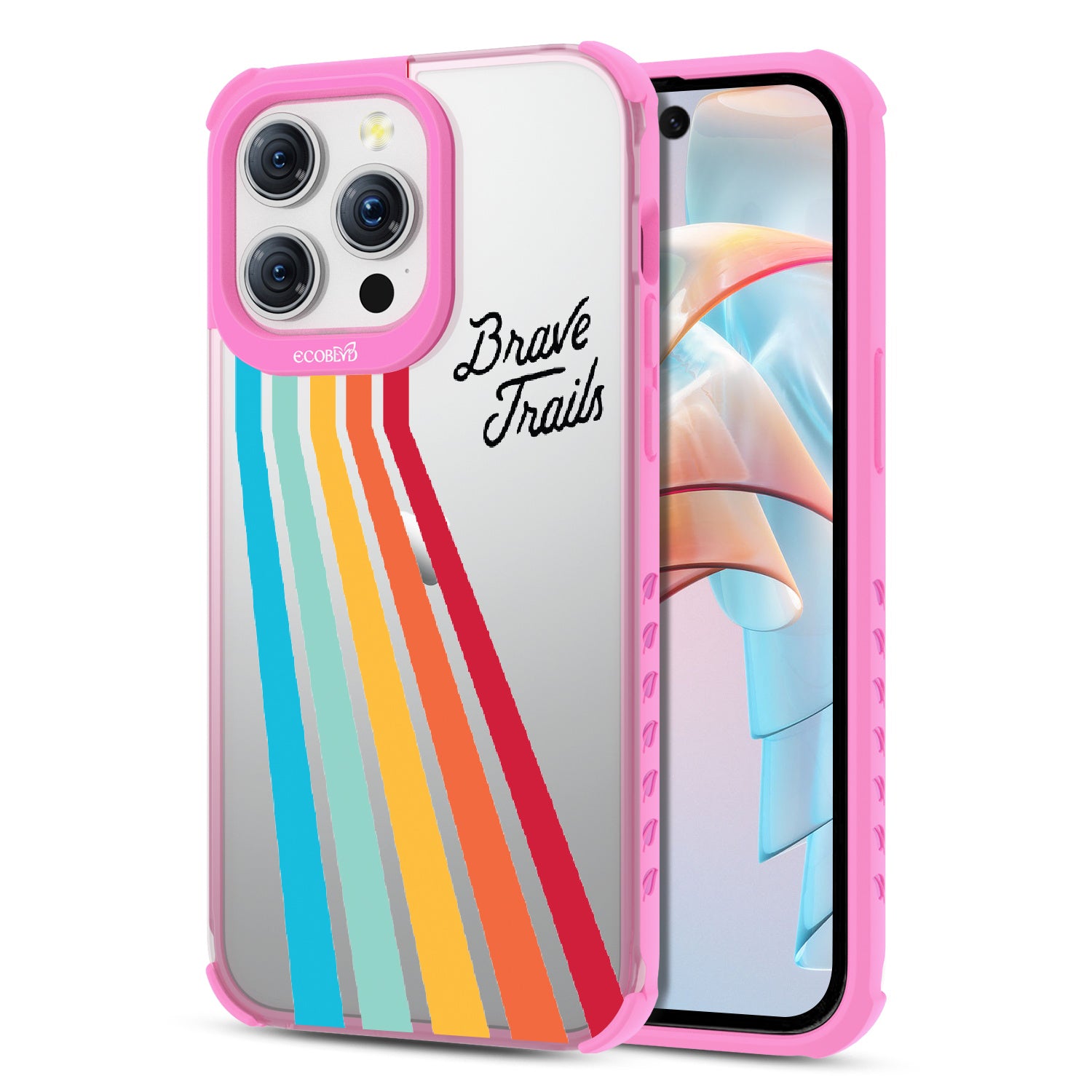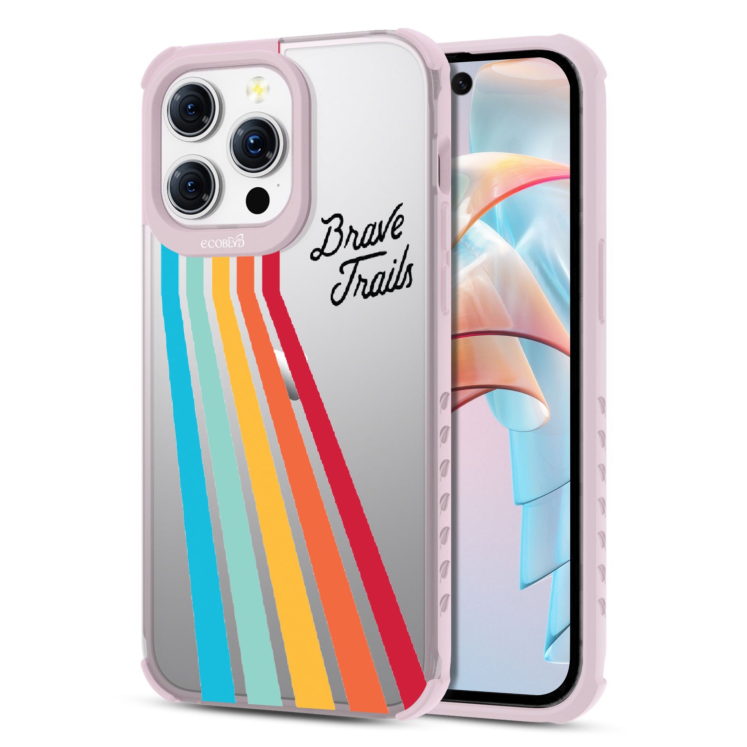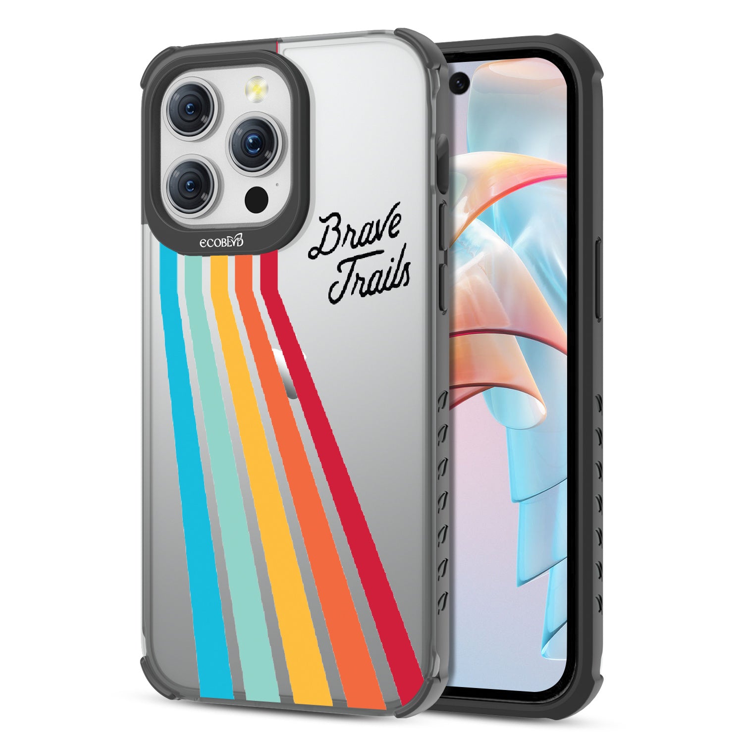 Forge your own path with the Trailblazer x Brave Trails design on our Laguna clear iPhone 15 Pro Max case. Its design celebrates the spirit of adventure and fearlessness. The intertwining trails, painted in a vibrant spectrum of rainbow colors, symbolize the diverse journeys we embark upon in life. With the Brave Trails logo shining brightly at its core, this design serves as a beacon of inspiration, encouraging you to break barriers and blaze a trail that is uniquely yours.