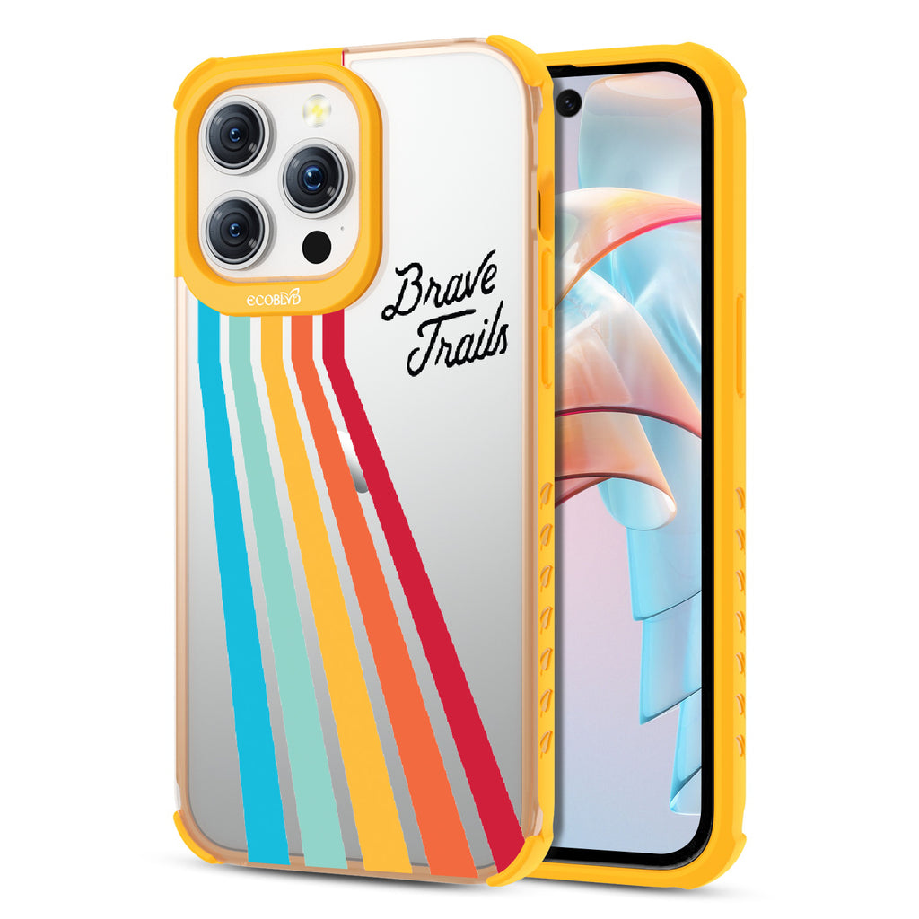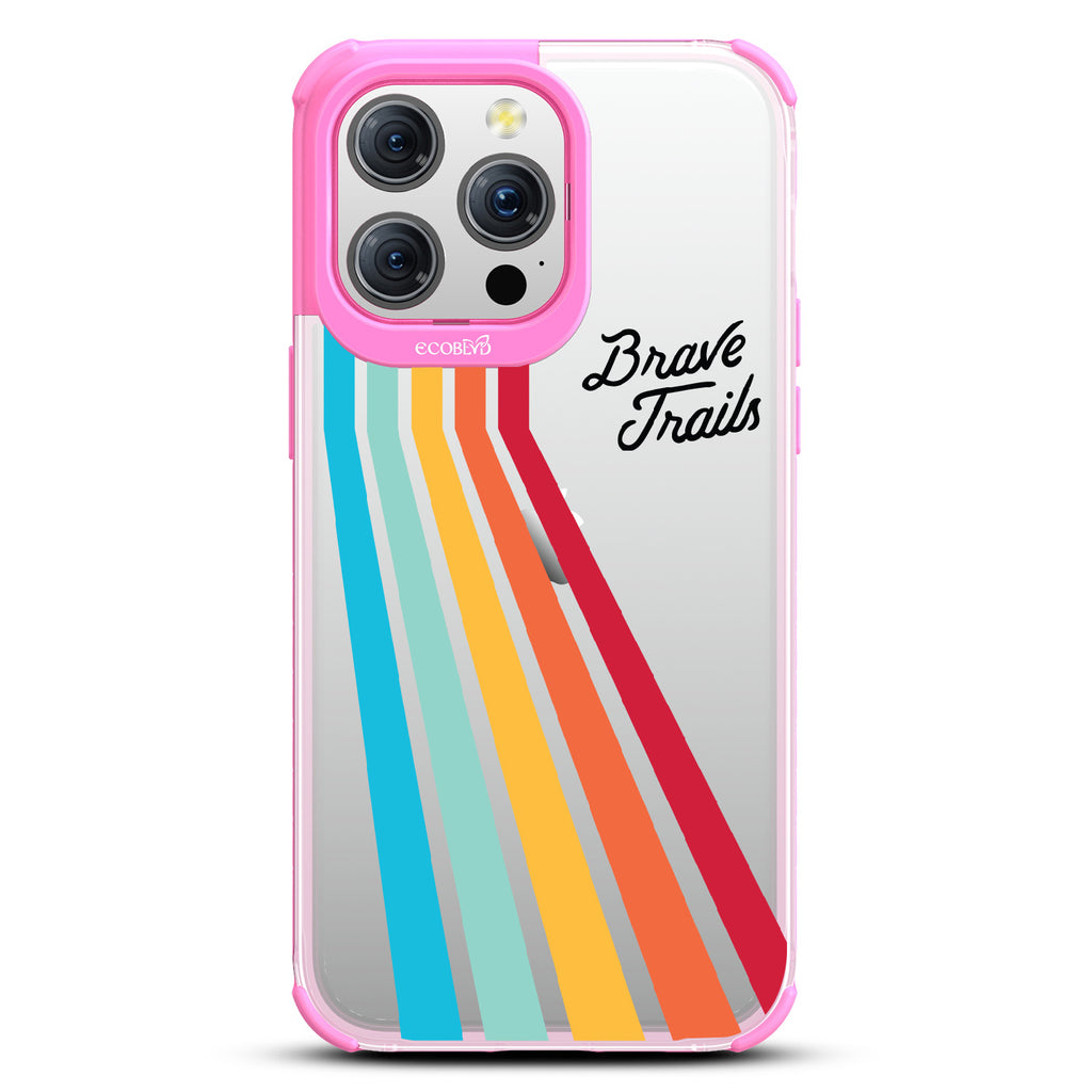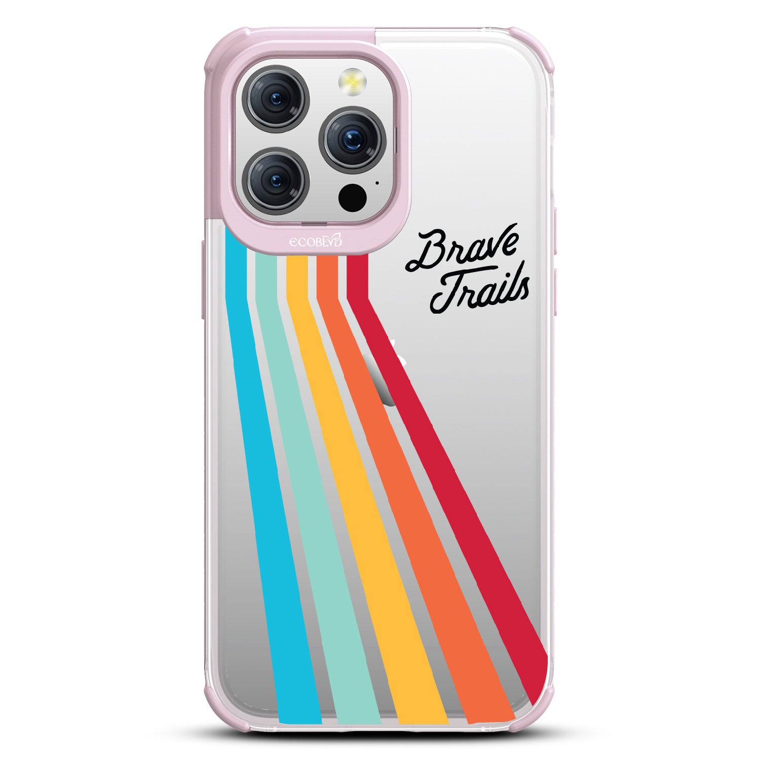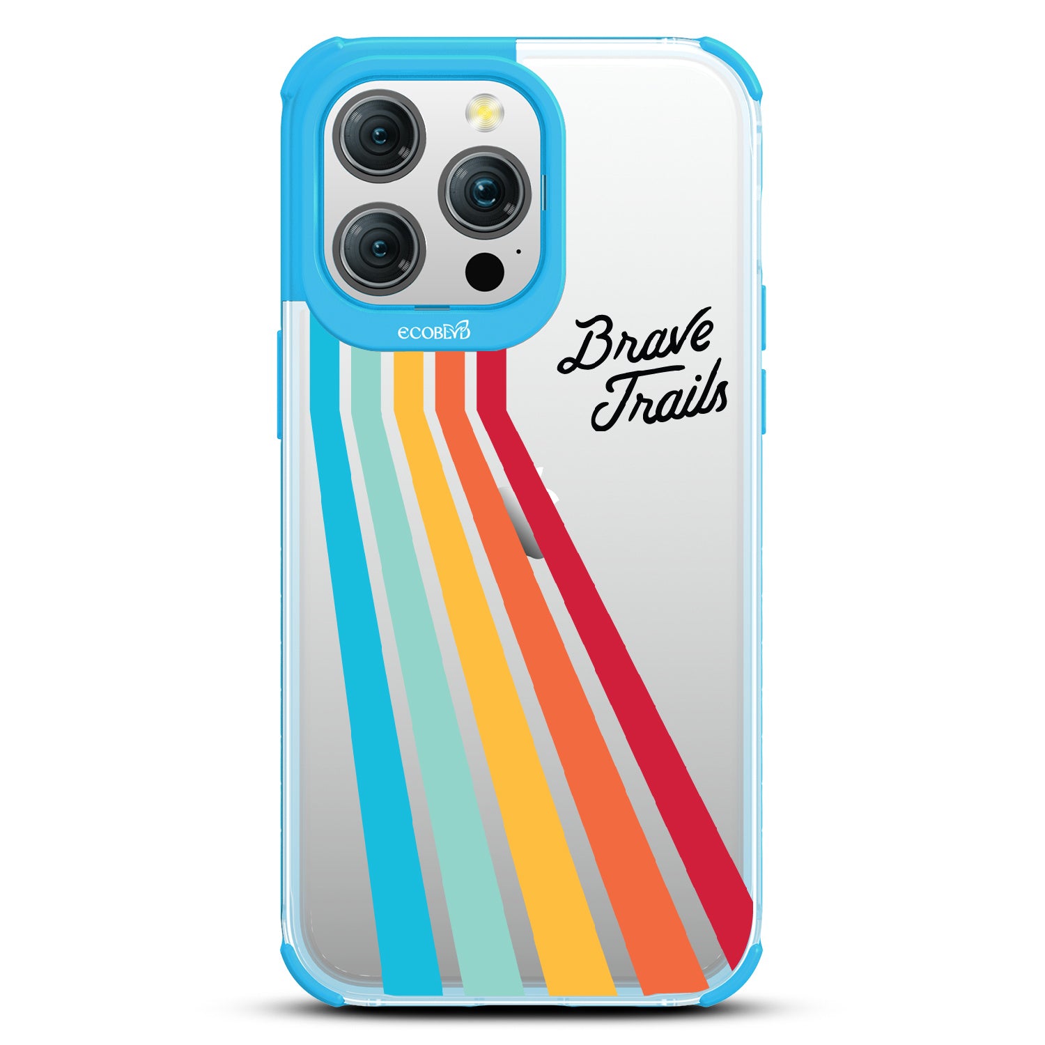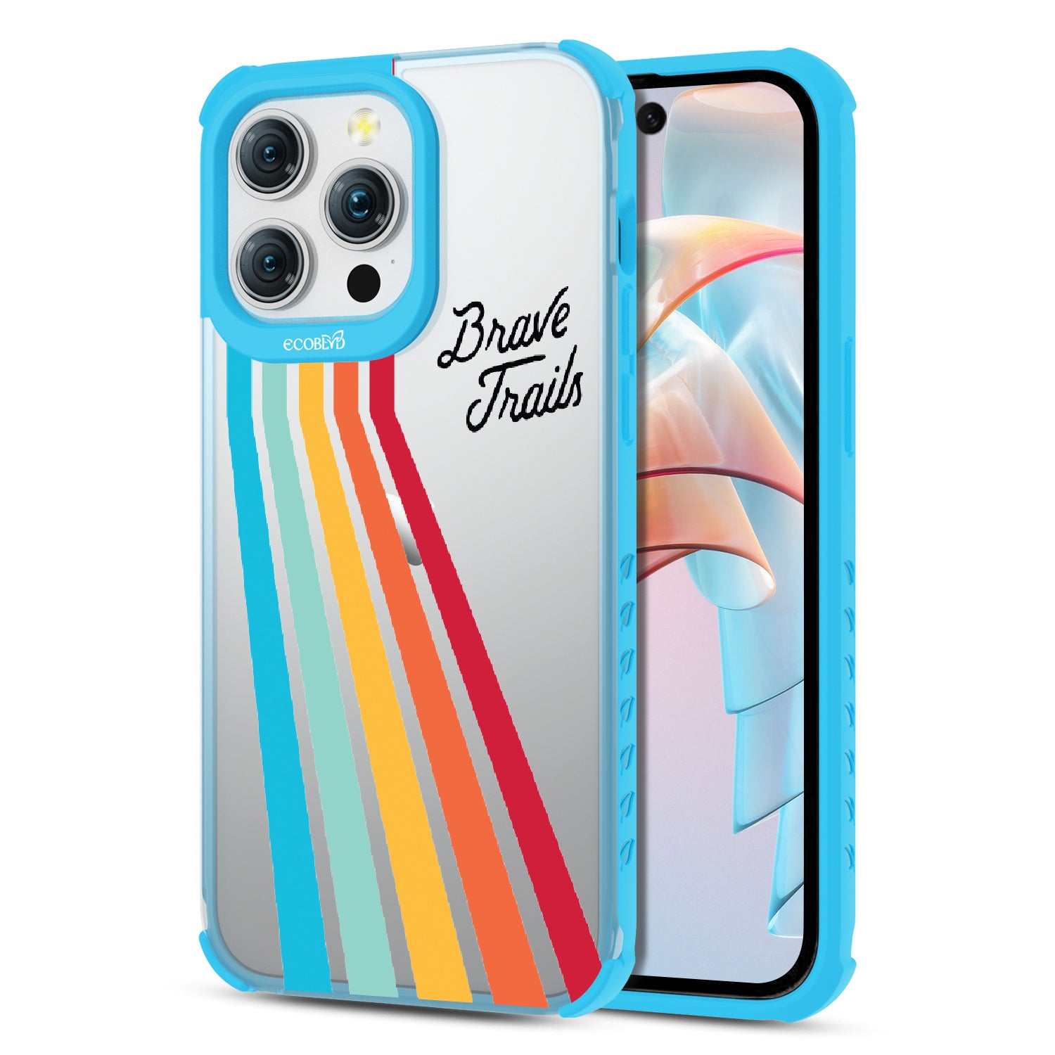 Forge your own path with the Trailblazer x Brave Trails design on our Laguna clear iPhone 15 Pro Max case. Its design celebrates the spirit of adventure and fearlessness. The intertwining trails, painted in a vibrant spectrum of rainbow colors, symbolize the diverse journeys we embark upon in life. With the Brave Trails logo shining brightly at its core, this design serves as a beacon of inspiration, encouraging you to break barriers and blaze a trail that is uniquely yours.