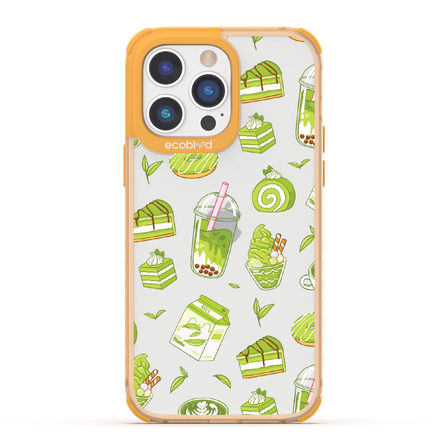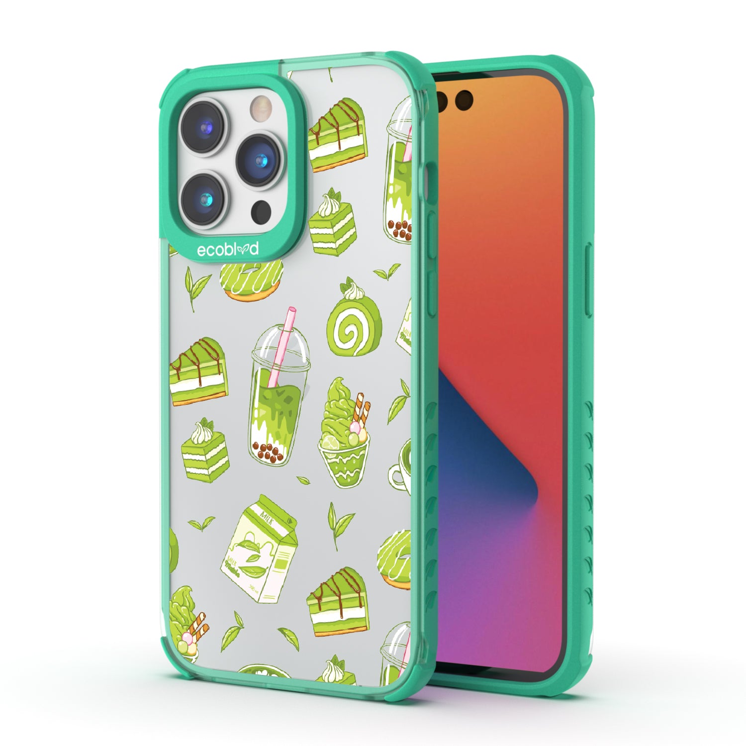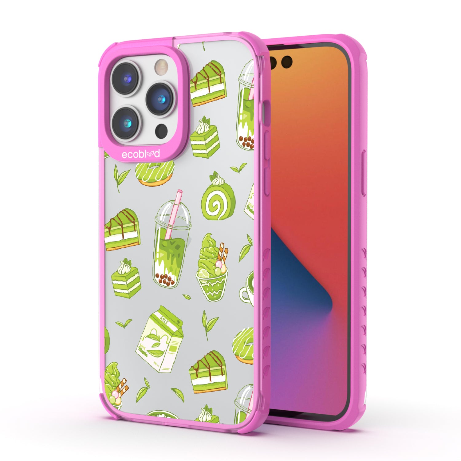 Ice cream and boba, cake, milk, and so matcha more! Overflowing with matcha flavor, this design on our Laguna clear iPhone 14 Pro Max case! brings you a perfect blend of your favorite green treats. Because who ever said there was such a thing as too much matcha?