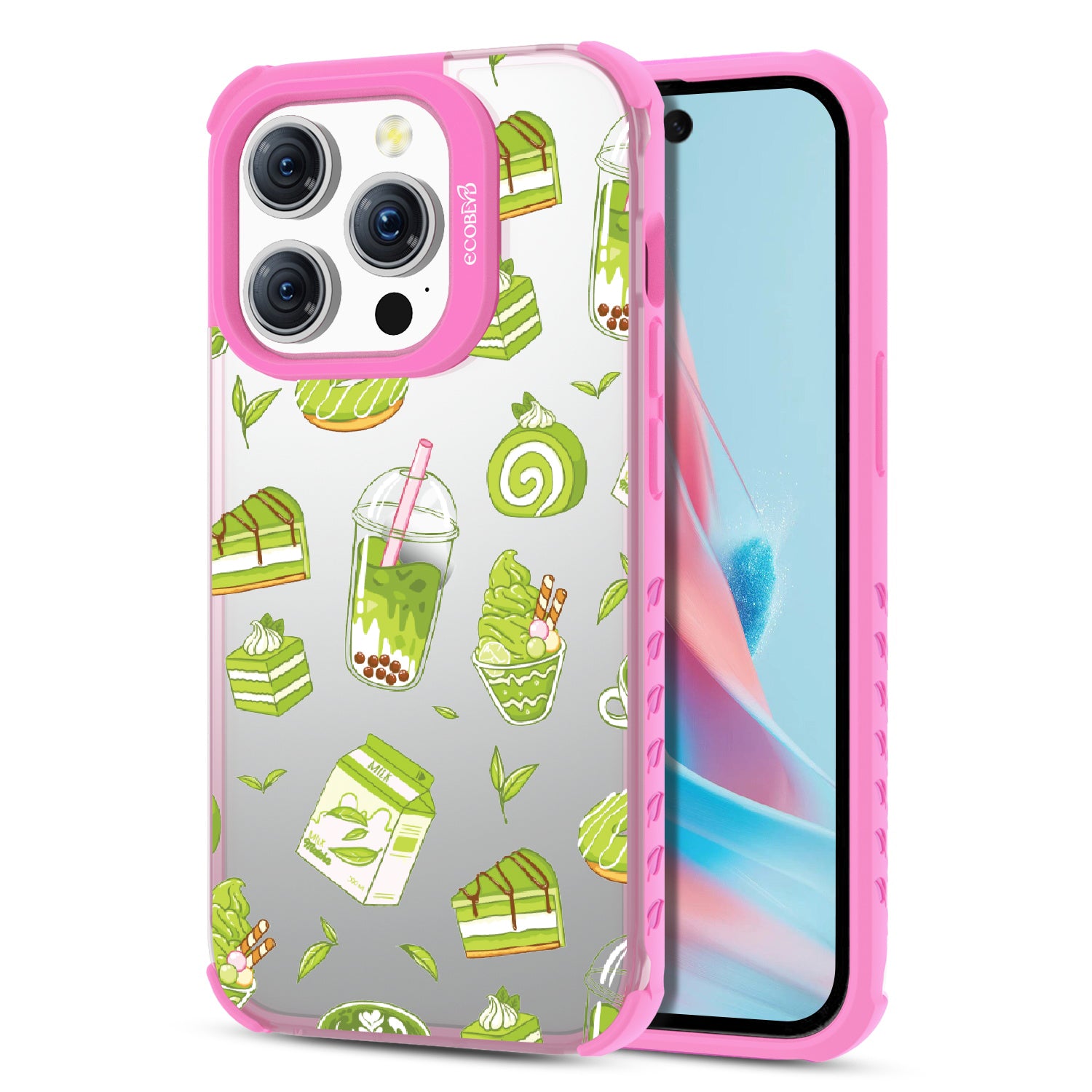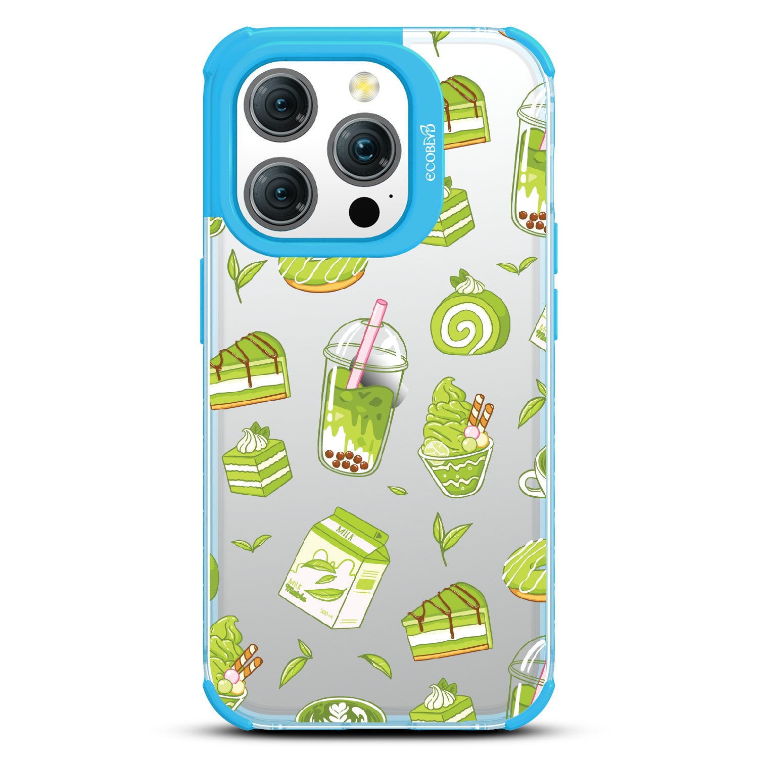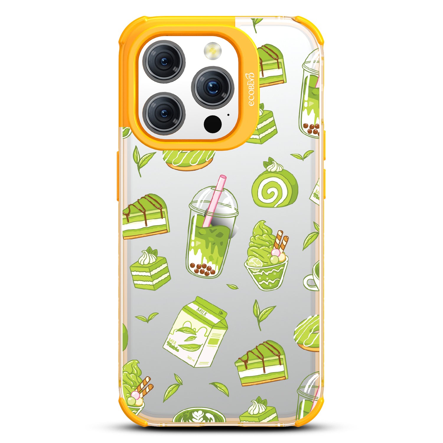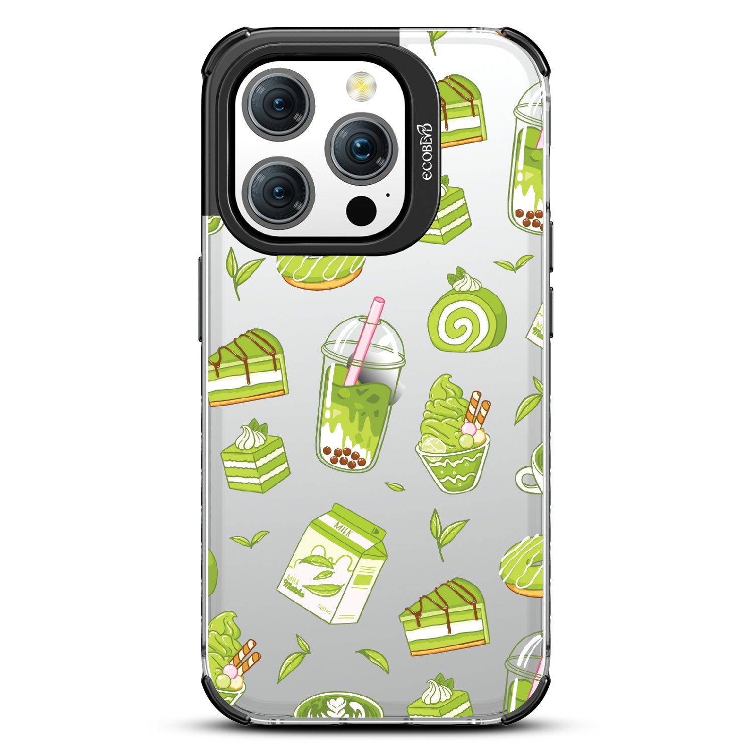 Ice cream and boba, cake, milk, and so matcha more! Overflowing with matcha flavor, this design on our Laguna clear iPhone 15 Pro case! brings you a perfect blend of your favorite green treats. Because who ever said there was such a thing as too much matcha?