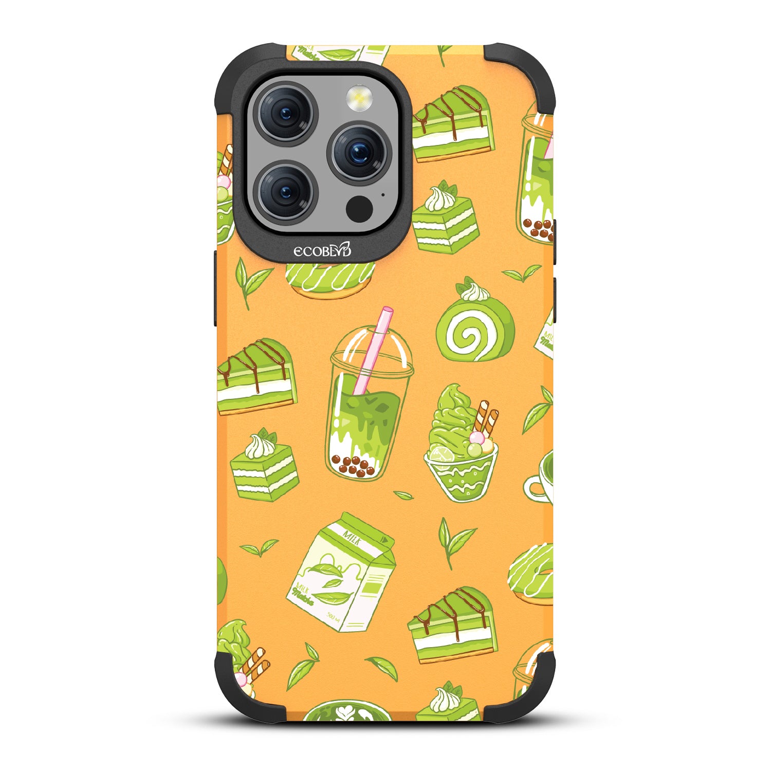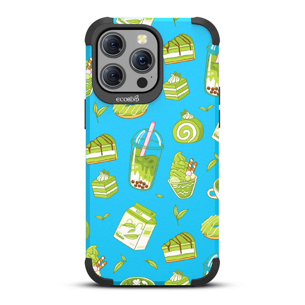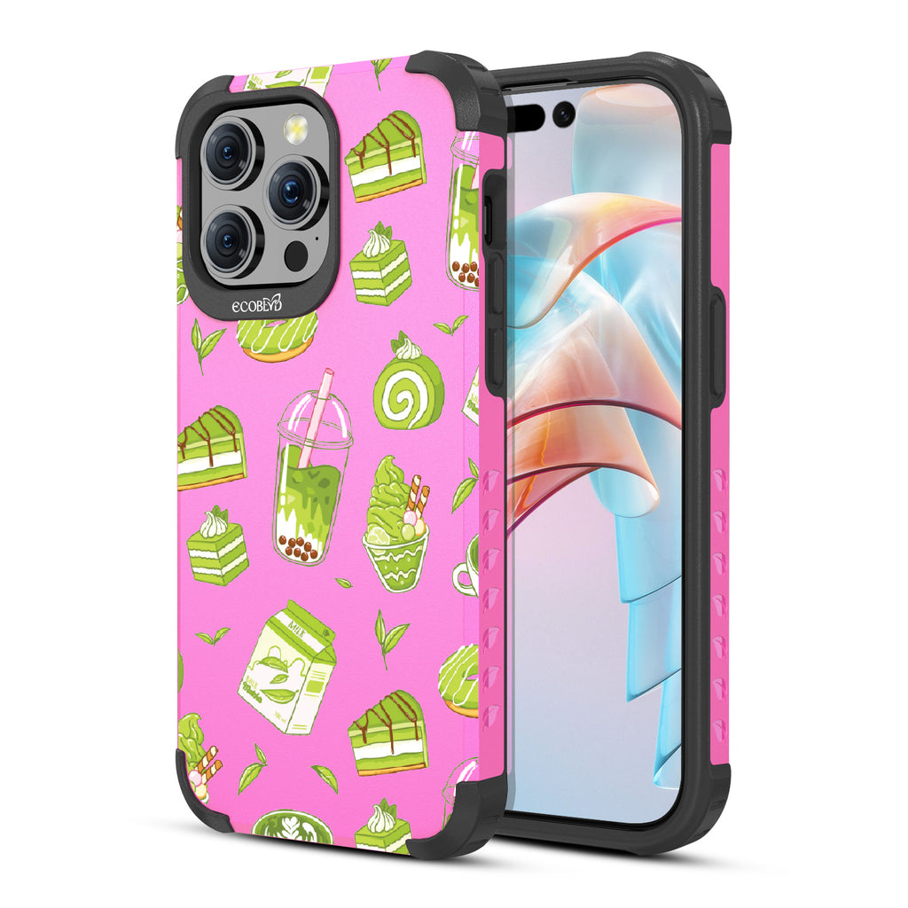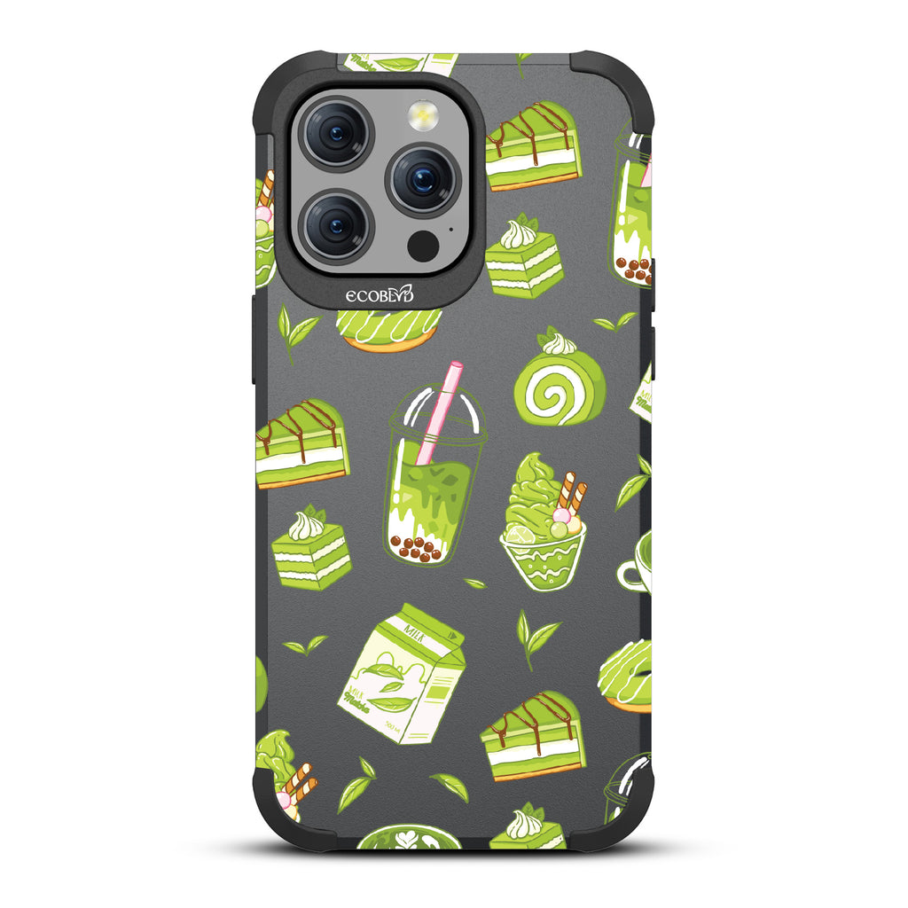 Ice cream and boba, cake, milk, and so matcha more! Overflowing with matcha flavor, this design on our Mojave rugged and compostable iPhone 15 Pro Max MagSafe case! brings you a perfect blend of your favorite green treats. Because who ever said there was such a thing as too much matcha?