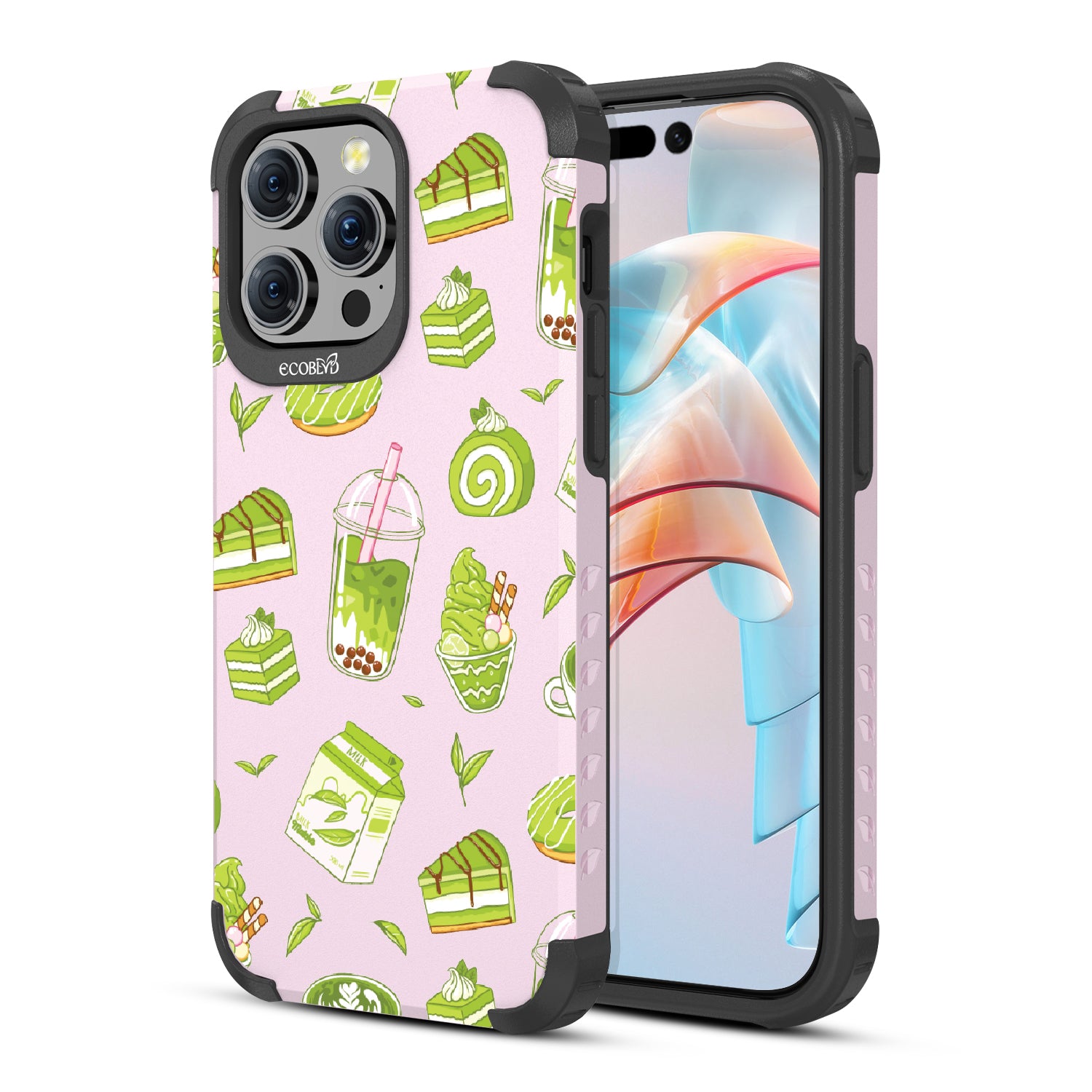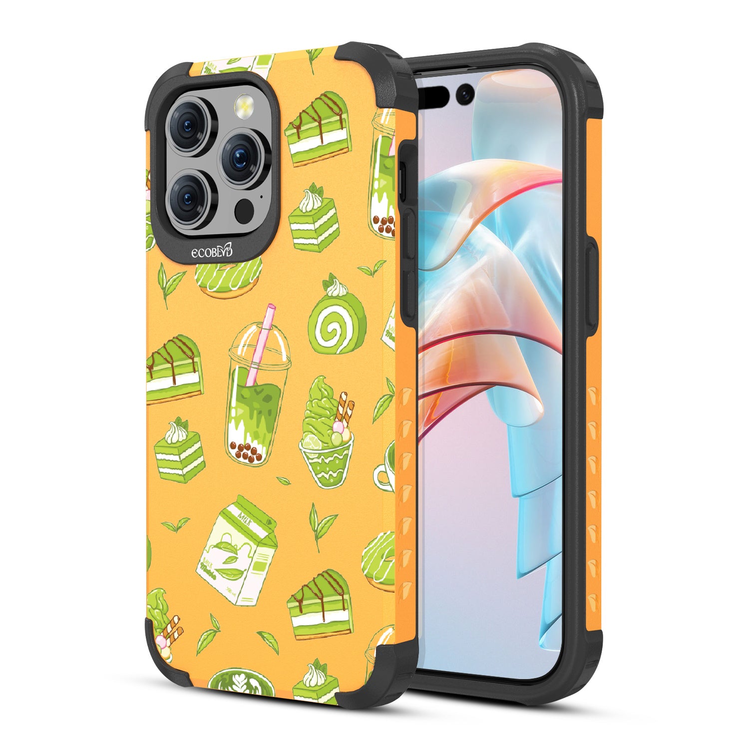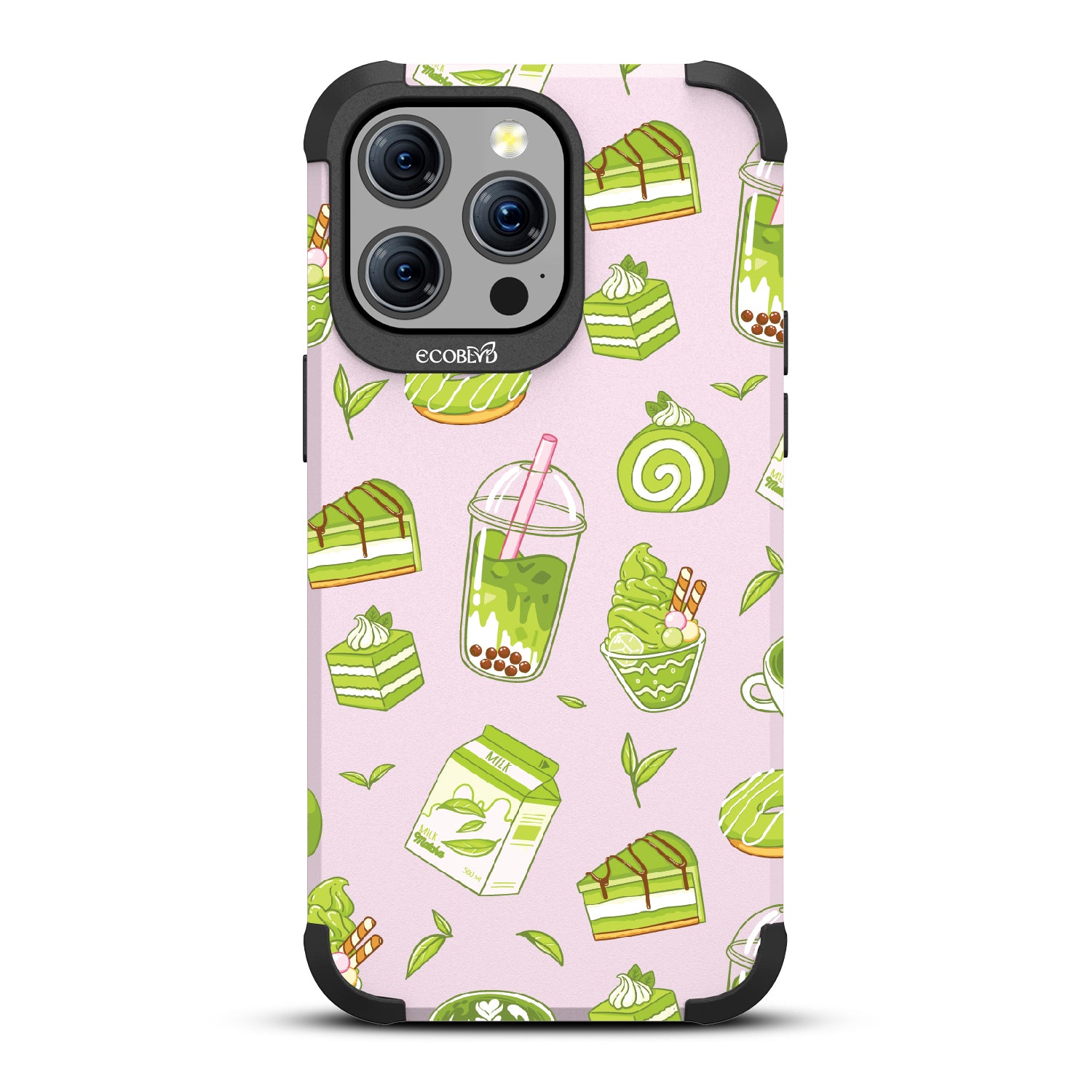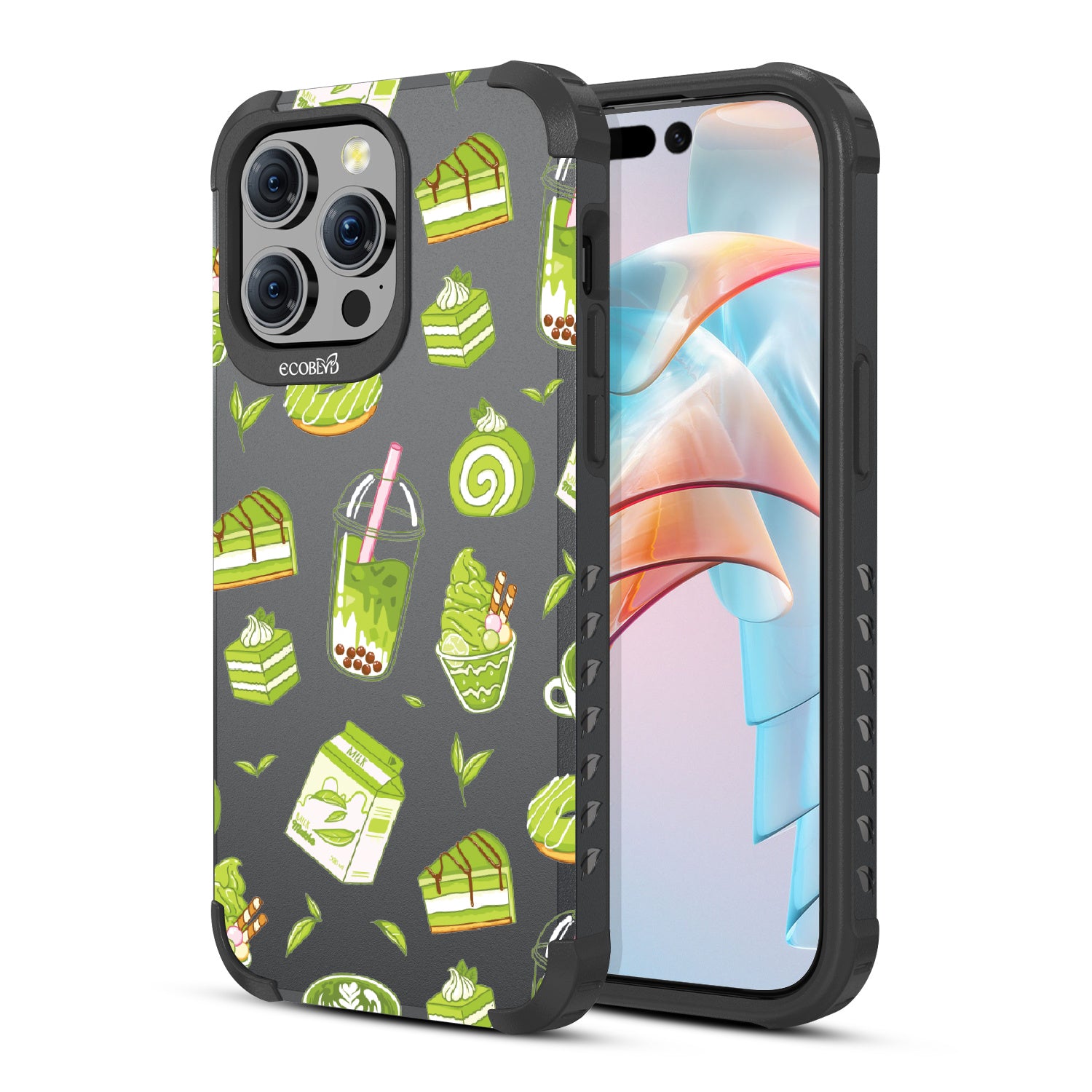 Ice cream and boba, cake, milk, and so matcha more! Overflowing with matcha flavor, this design on our Mojave rugged and compostable iPhone 15 Pro Max MagSafe case! brings you a perfect blend of your favorite green treats. Because who ever said there was such a thing as too much matcha?