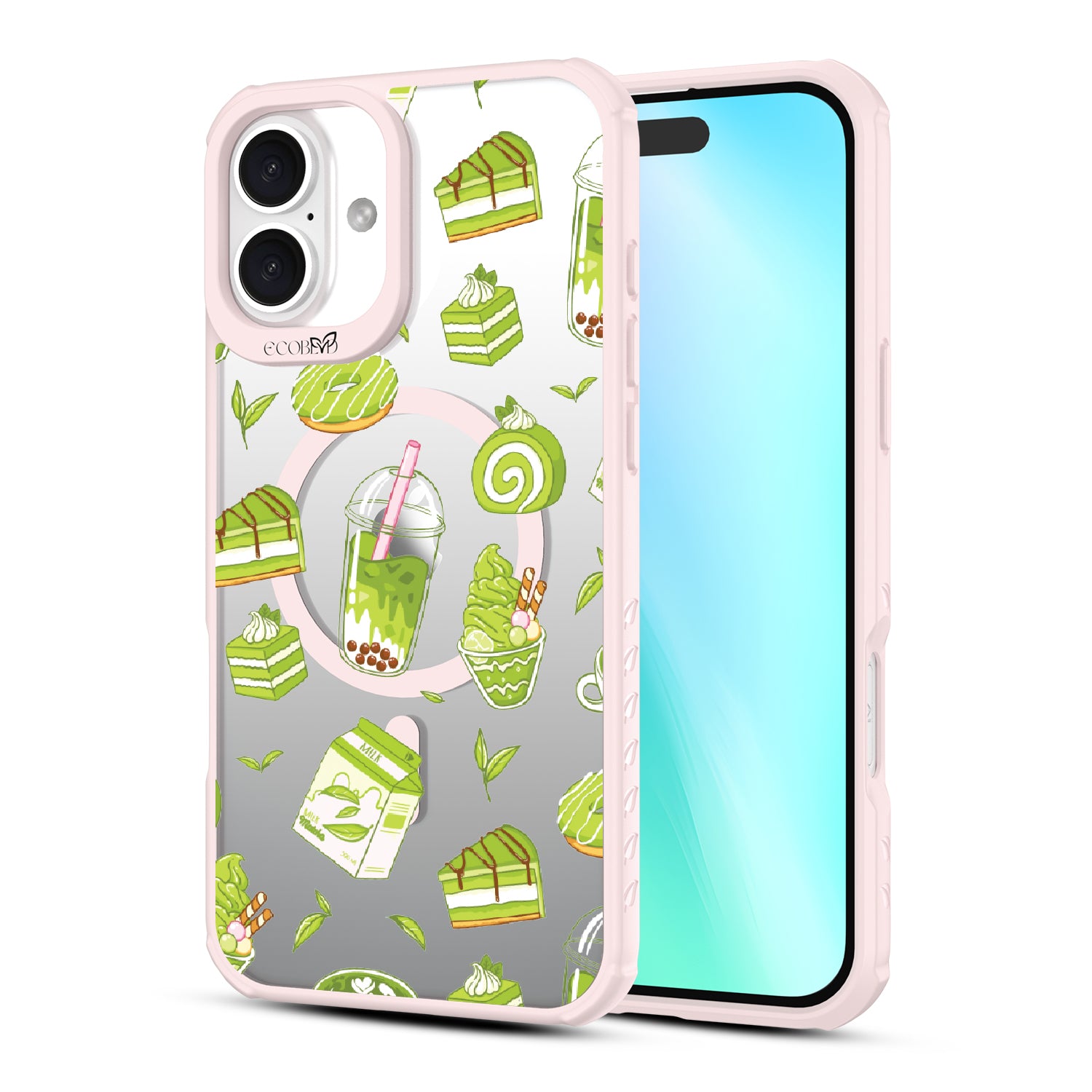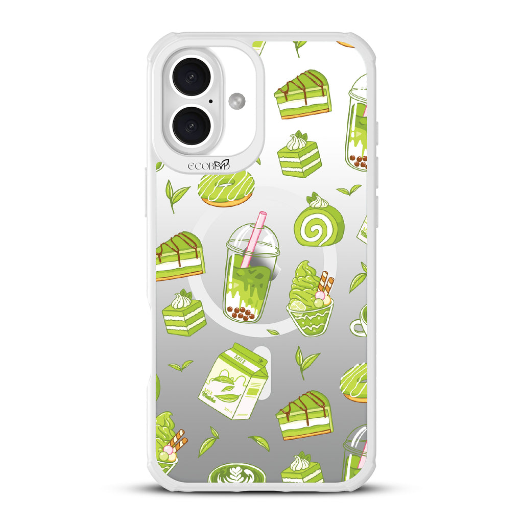 Ice cream and boba, cake, milk, and so matcha more! Overflowing with matcha flavor, this design on our Revive clear iPhone 16 Plus case! brings you a perfect blend of your favorite green treats. Because who ever said there was such a thing as too much matcha?