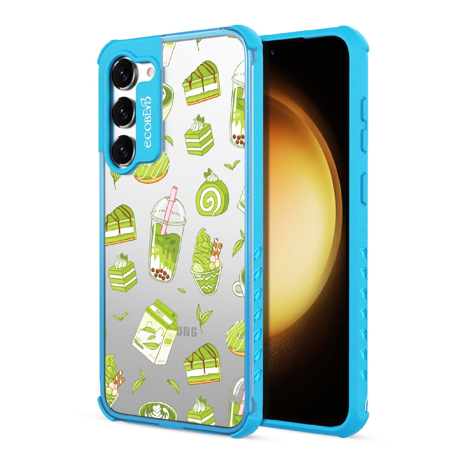 Ice cream and boba, cake, milk, and so matcha more! Overflowing with matcha flavor, this design on our Laguna clear Galaxy S23 case! brings you a perfect blend of your favorite green treats. Because who ever said there was such a thing as too much matcha?