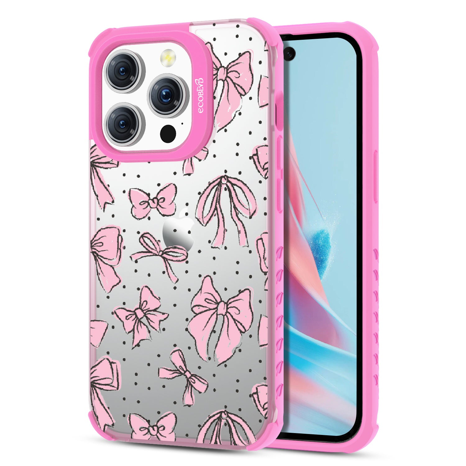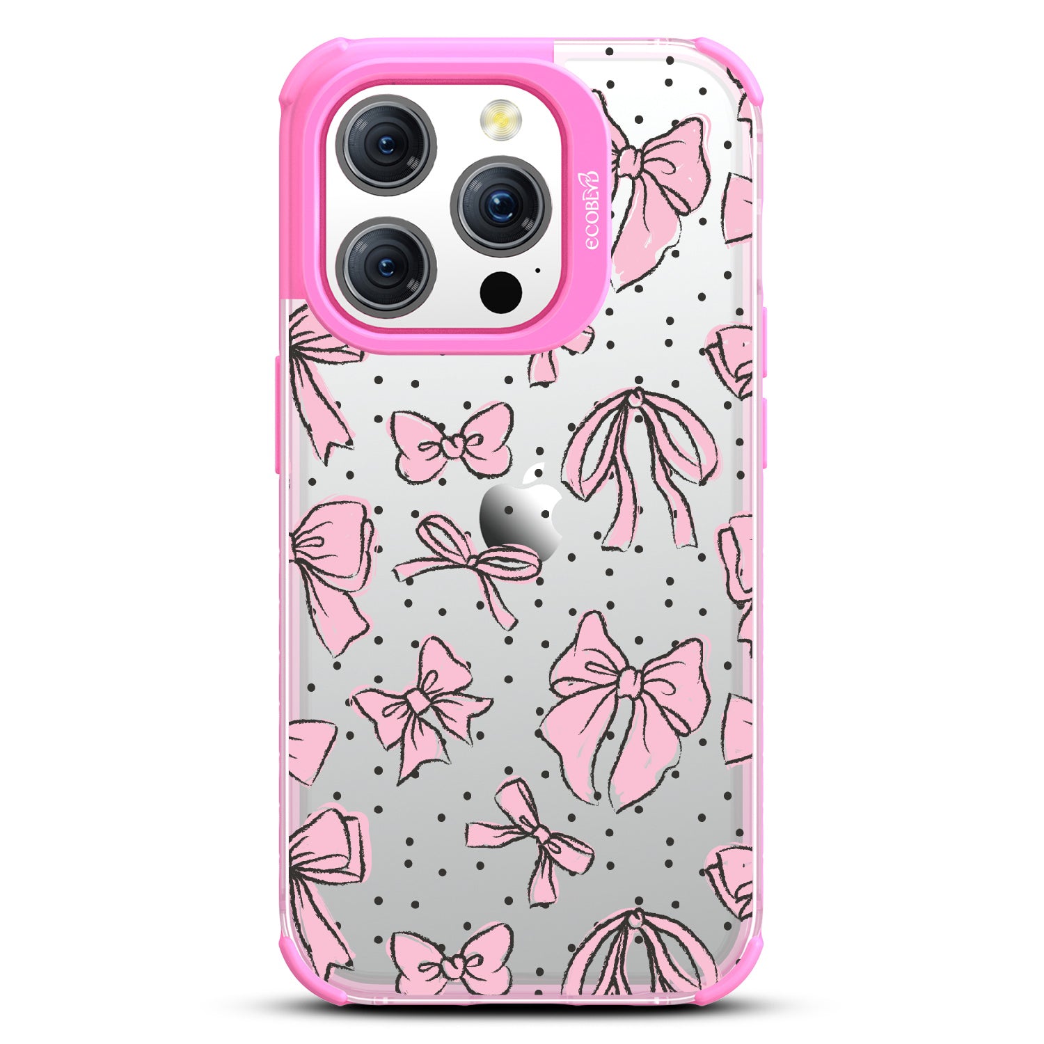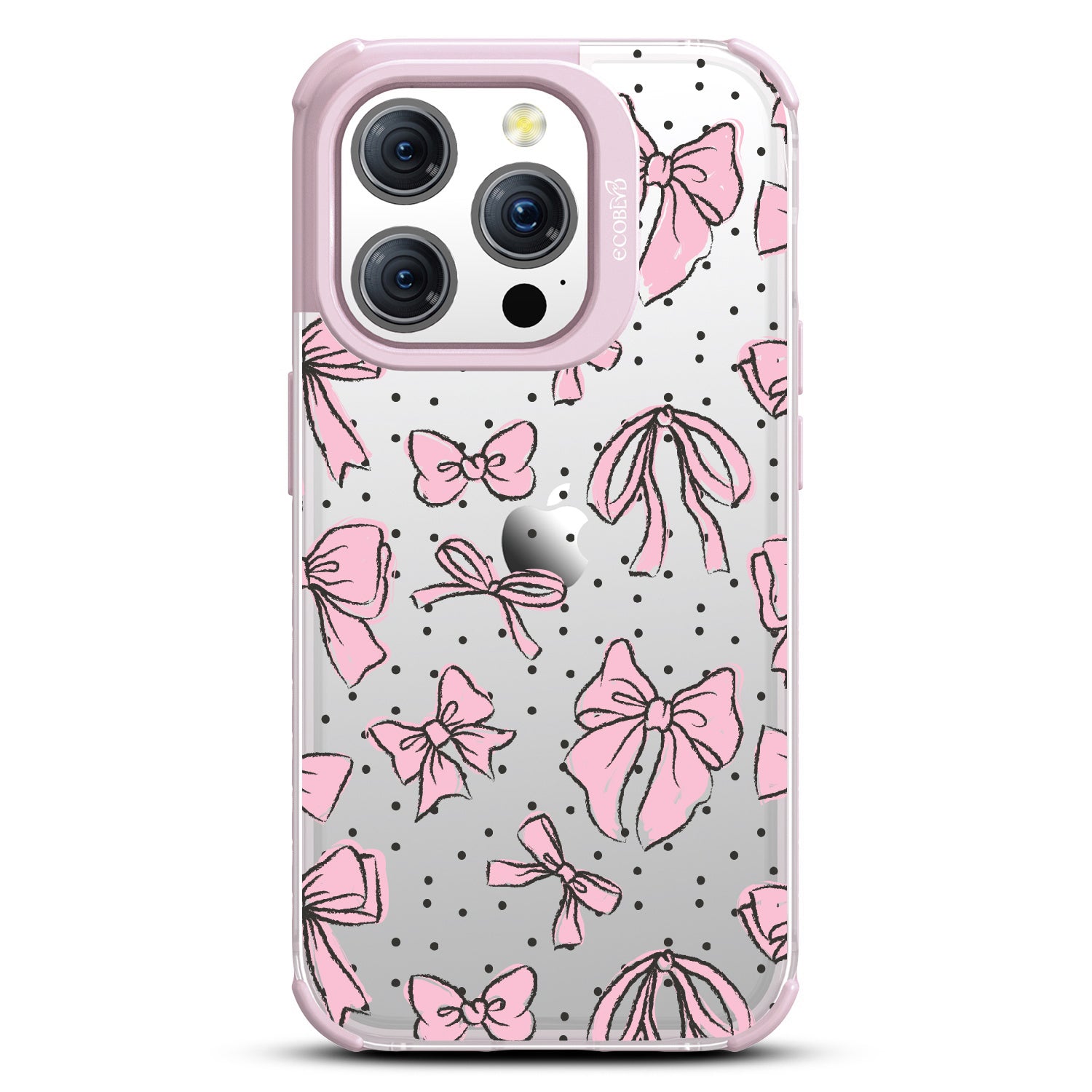 Enter your Soft Girl Era with this bow-tiful design on our Laguna clear iPhone 15 Pro case, where coquette pink bows and black polka dots team up to give your device a dose of girly glam. Surround yourself with girl power, radiating kindness, love, and gentle energy. Let your phone be a reminder of the unbreakable ties that bind us together.