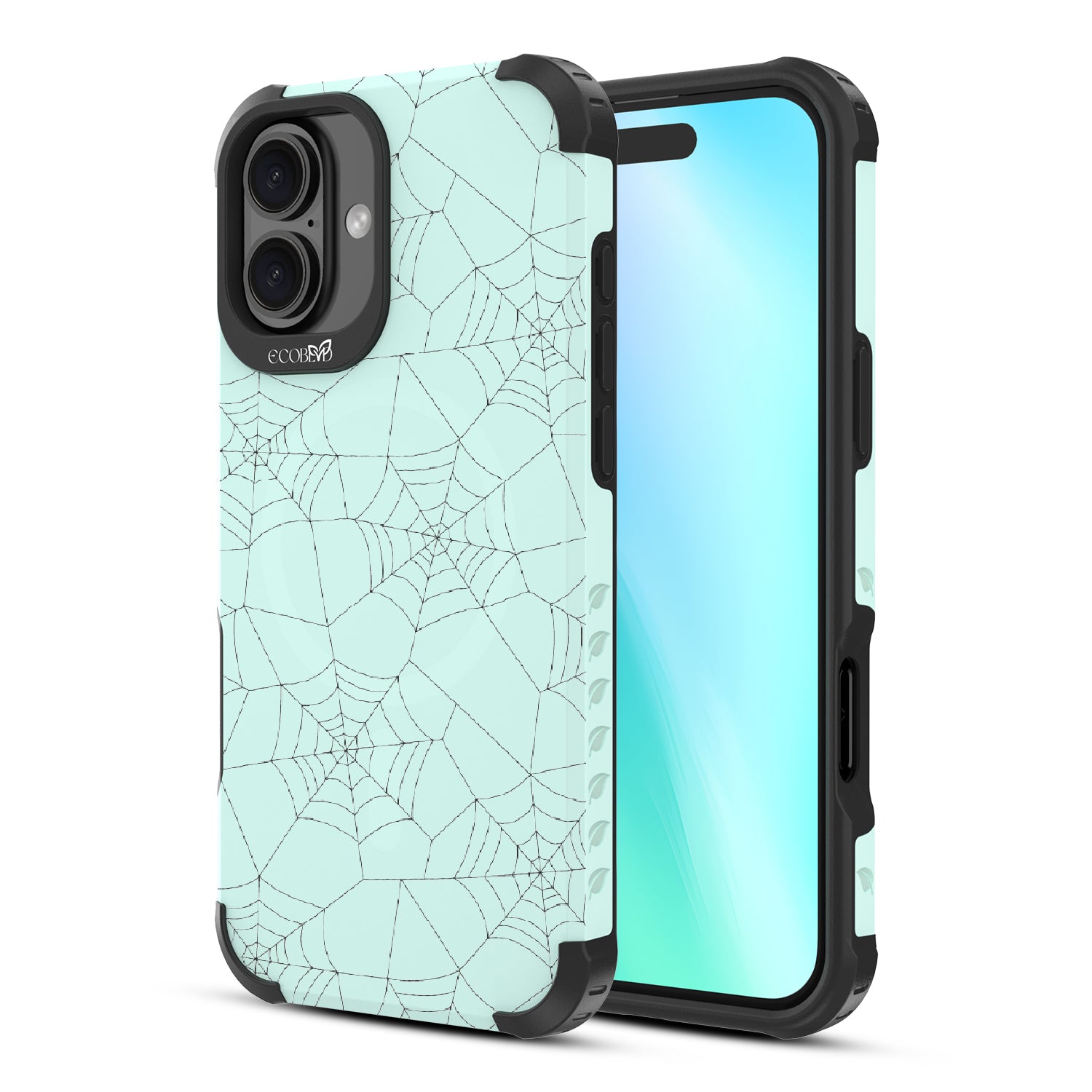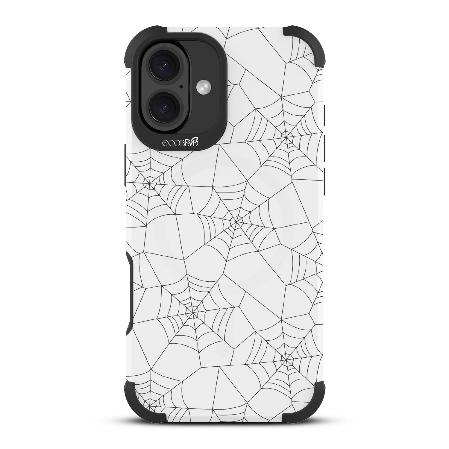 Teeming with creepy crawlies, your phone transforms into a haven for the creatures of the night with the Spider Web design on our Reforge rugged iPhone 16 Plus phone case. Delicate silver threads intricately mimic the silk spun by nocturnal arachnids, beckoning you into their web of mystery.
