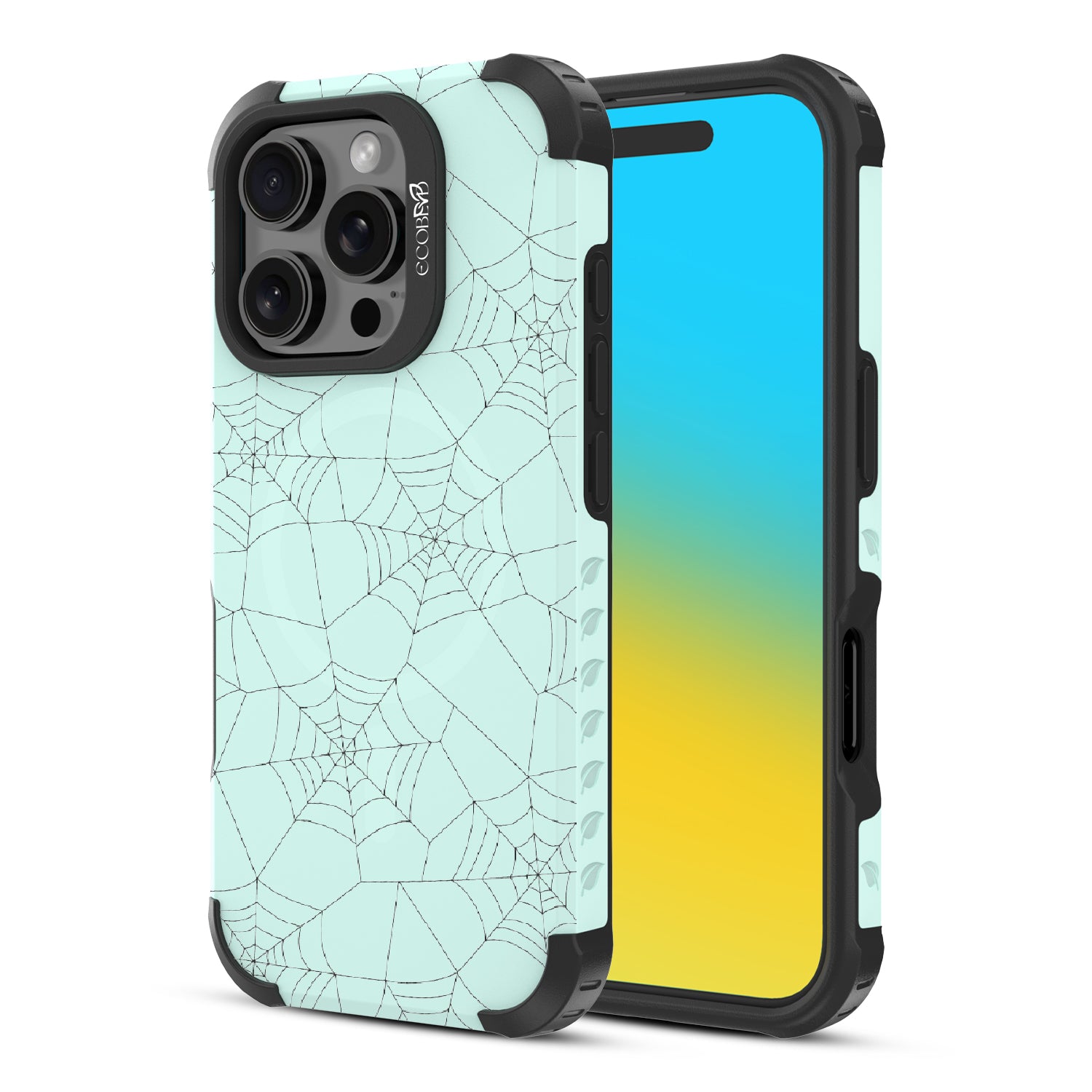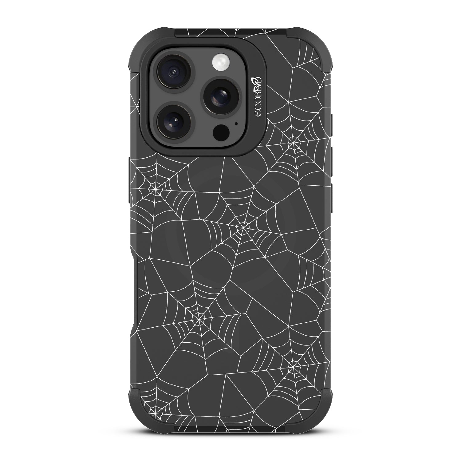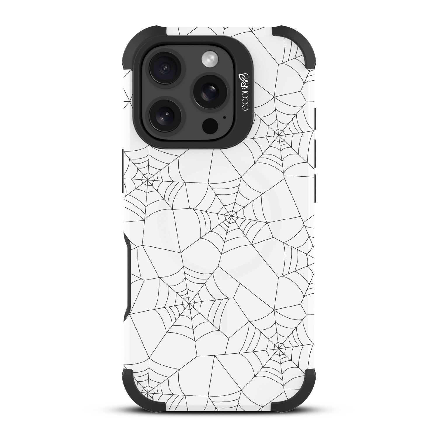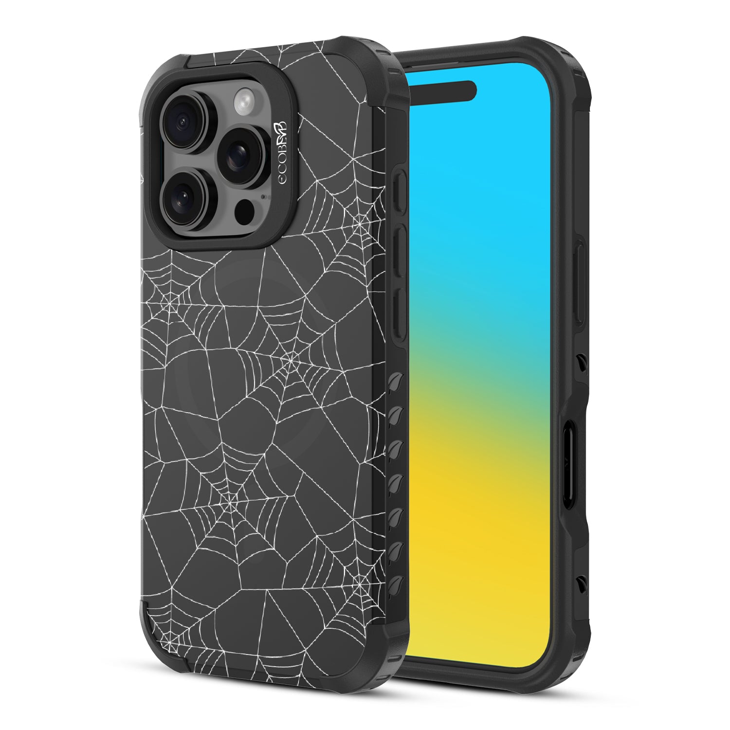 Teeming with creepy crawlies, your phone transforms into a haven for the creatures of the night with the Spider Web design on our Reforge rugged iPhone 16 Pro phone case. Delicate silver threads intricately mimic the silk spun by nocturnal arachnids, beckoning you into their web of mystery.