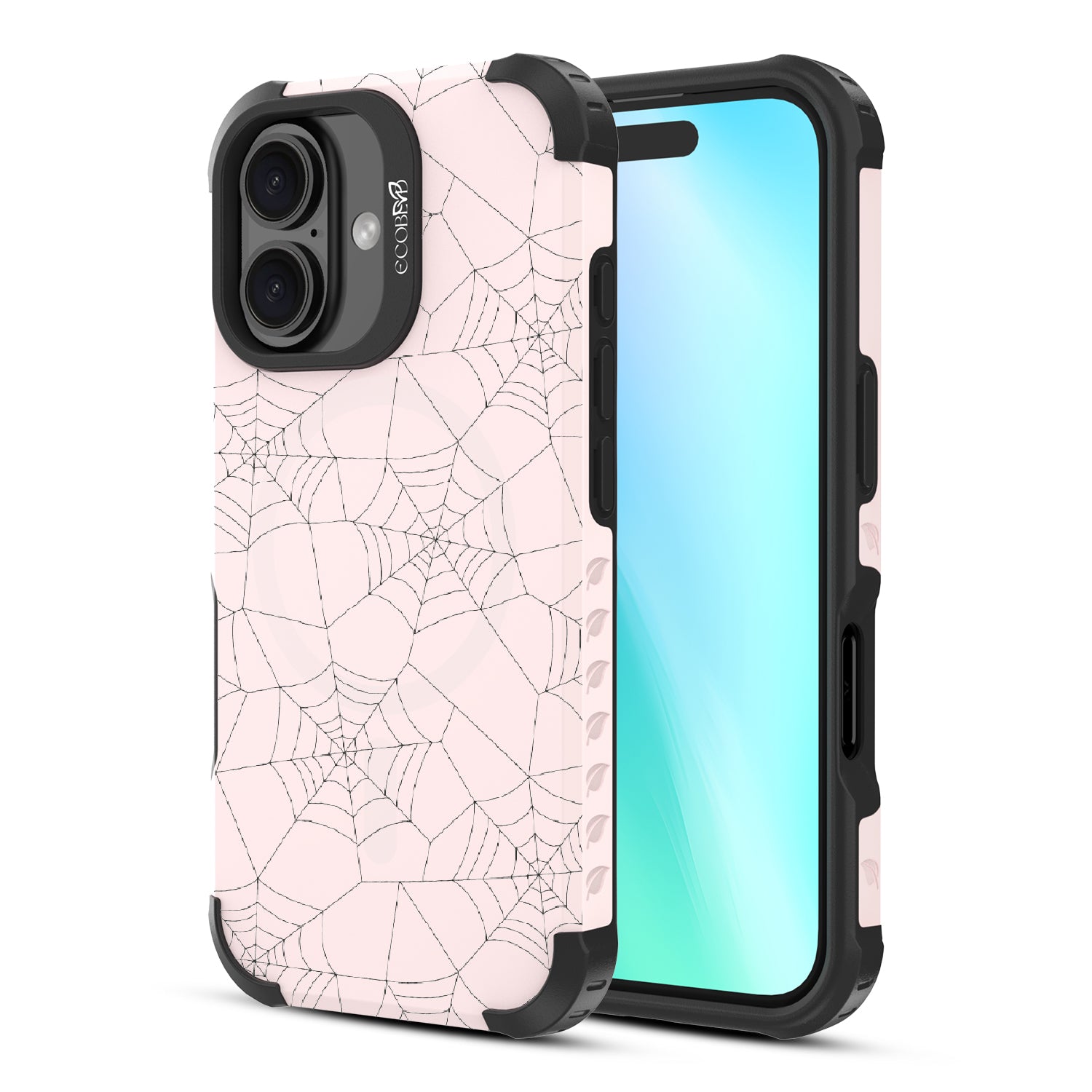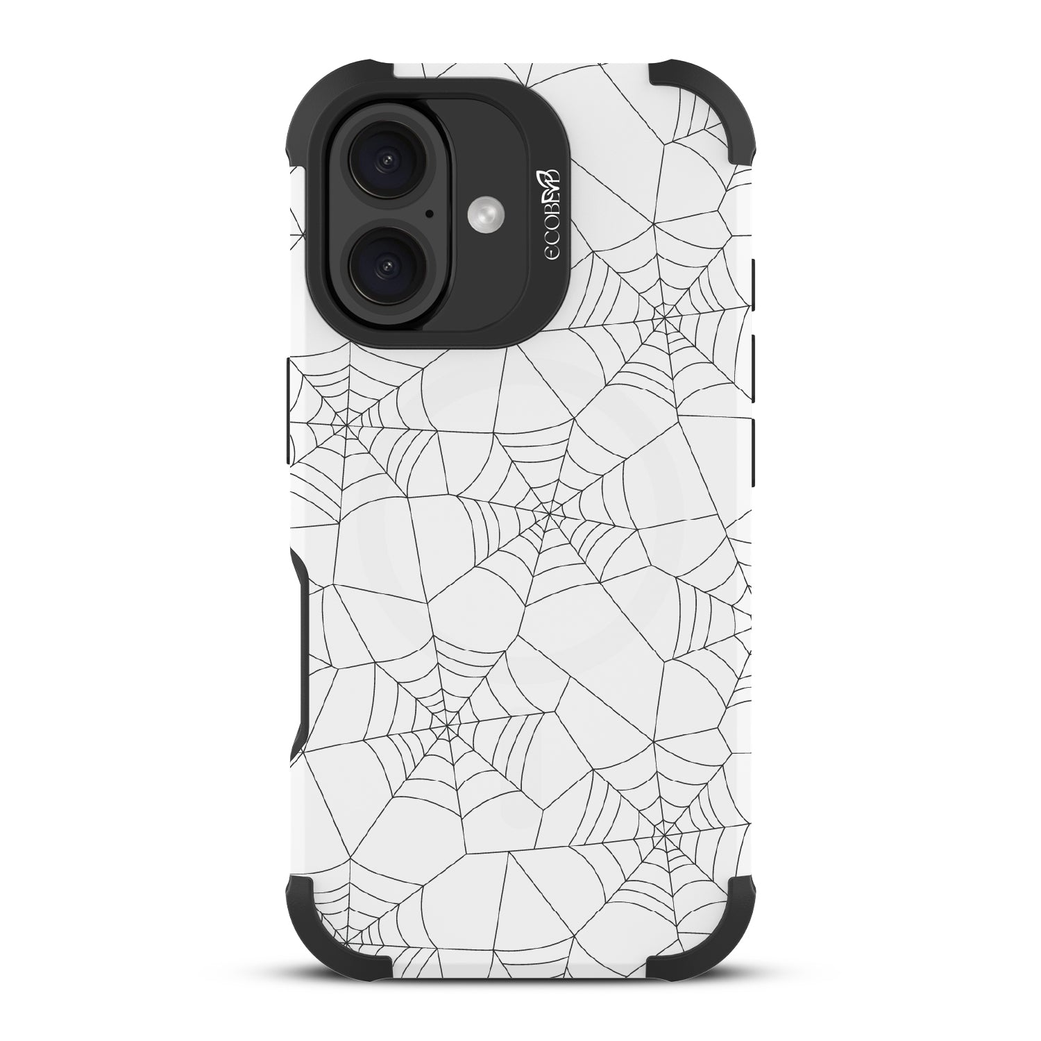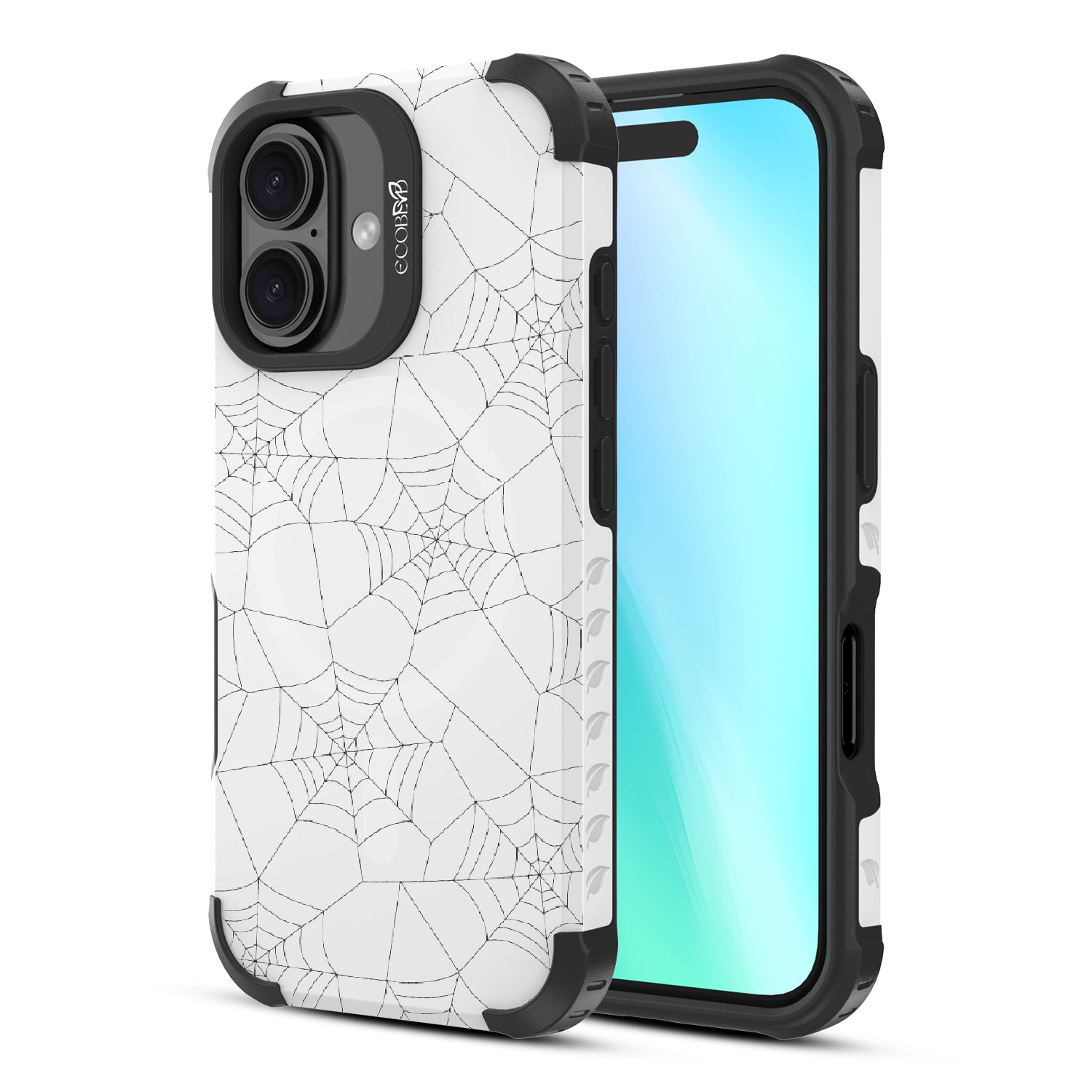 Teeming with creepy crawlies, your phone transforms into a haven for the creatures of the night with the Spider Web design on our Reforge rugged iPhone 16 phone case. Delicate silver threads intricately mimic the silk spun by nocturnal arachnids, beckoning you into their web of mystery.