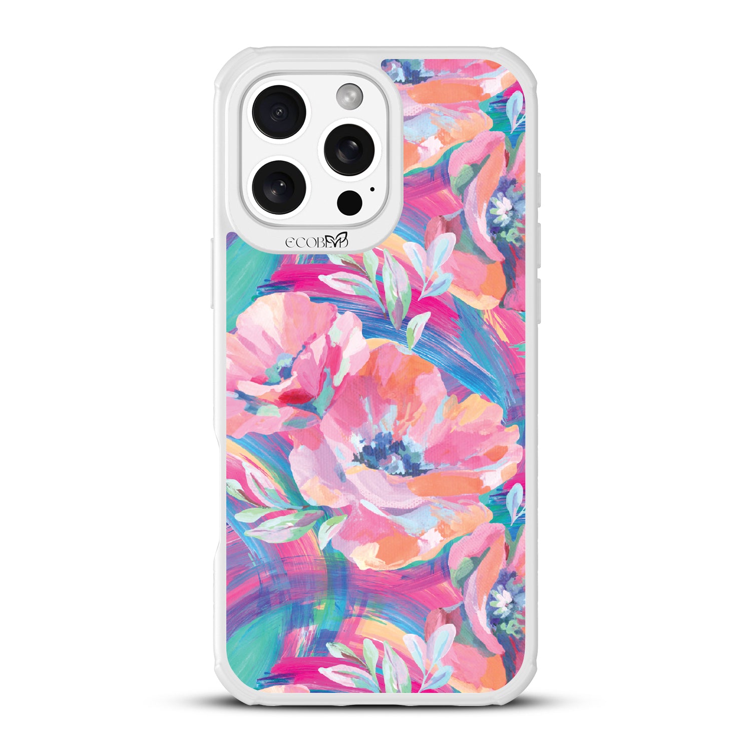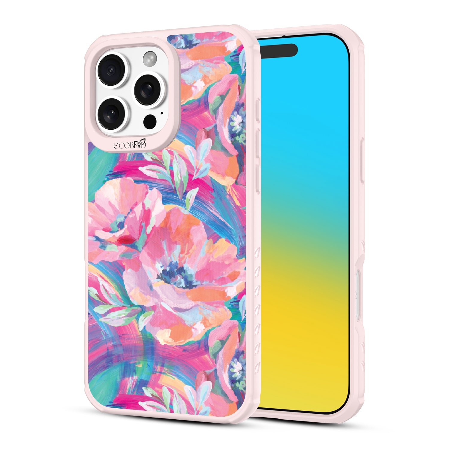 The Pastel Poppy design on our Revive clear iPhone 16 phone case radiates with beautiful and cheerful energy, captivating the eye with its abstract brush stroke poppies and bright pastel colors, a perfect way to celebrate the start of a new bloom