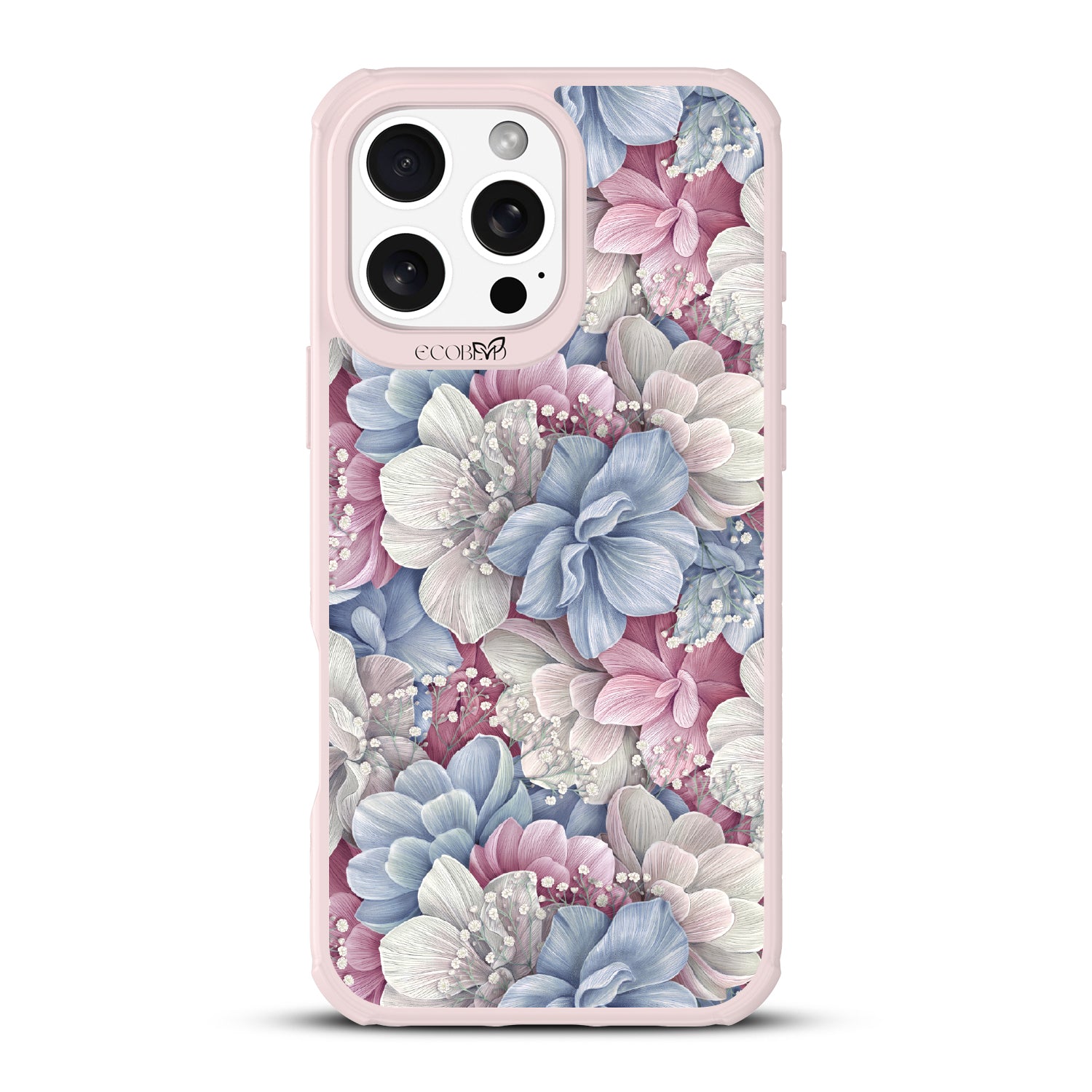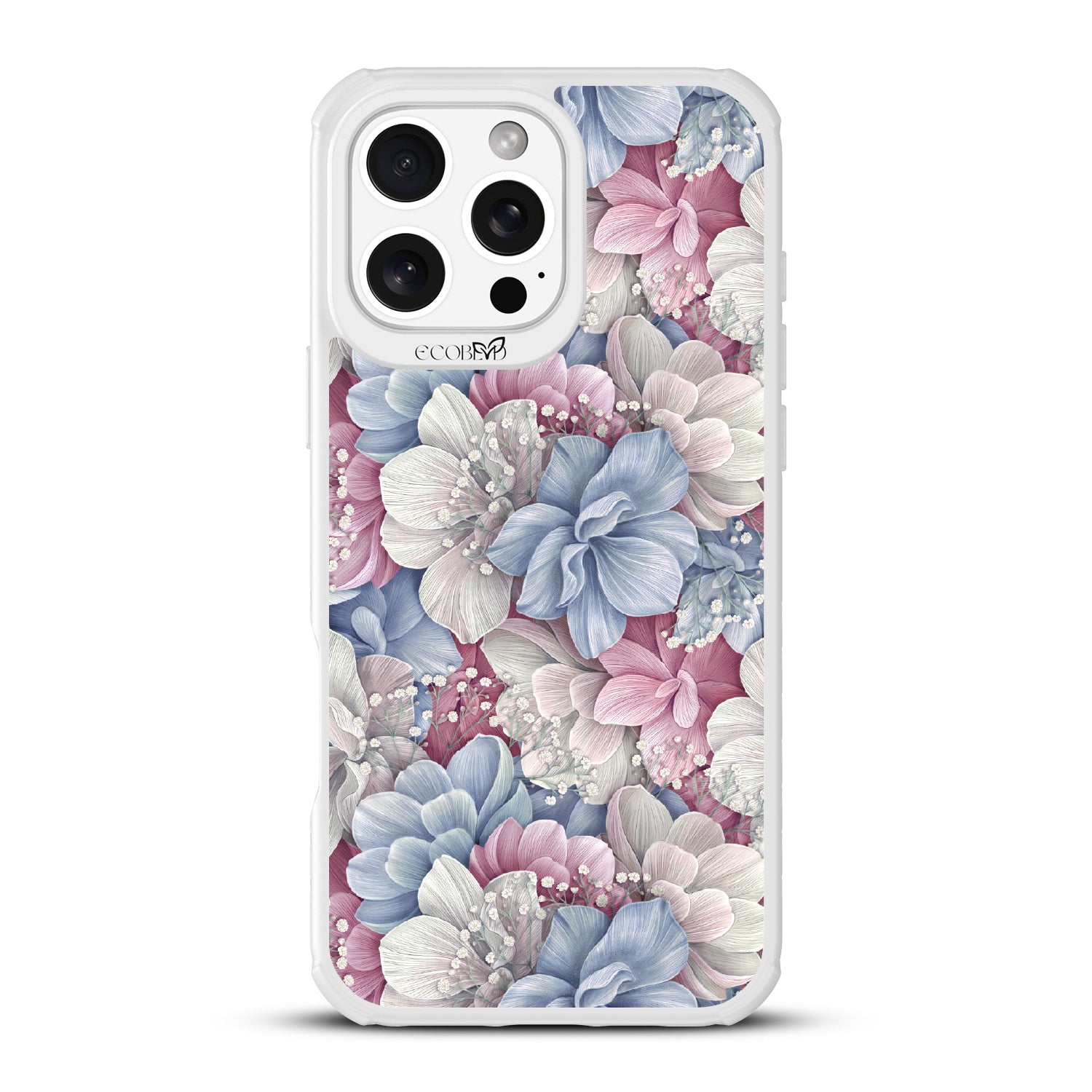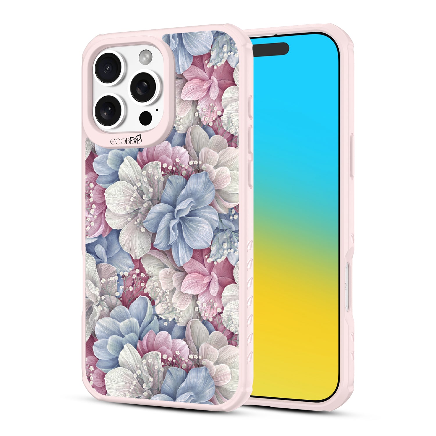 The Petals & Pearls design on our Revive clear iPhone 16 Pro Max phone case is like a melody of spring, its pastel colors swaying like a sweet tune and the water droplets on the petals ringing like pearls, harmoniously reflecting the blooming beauty of the season.