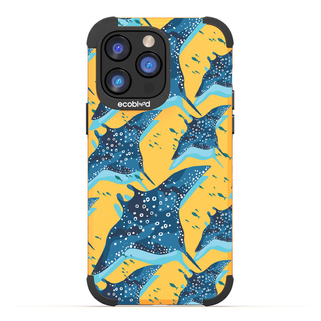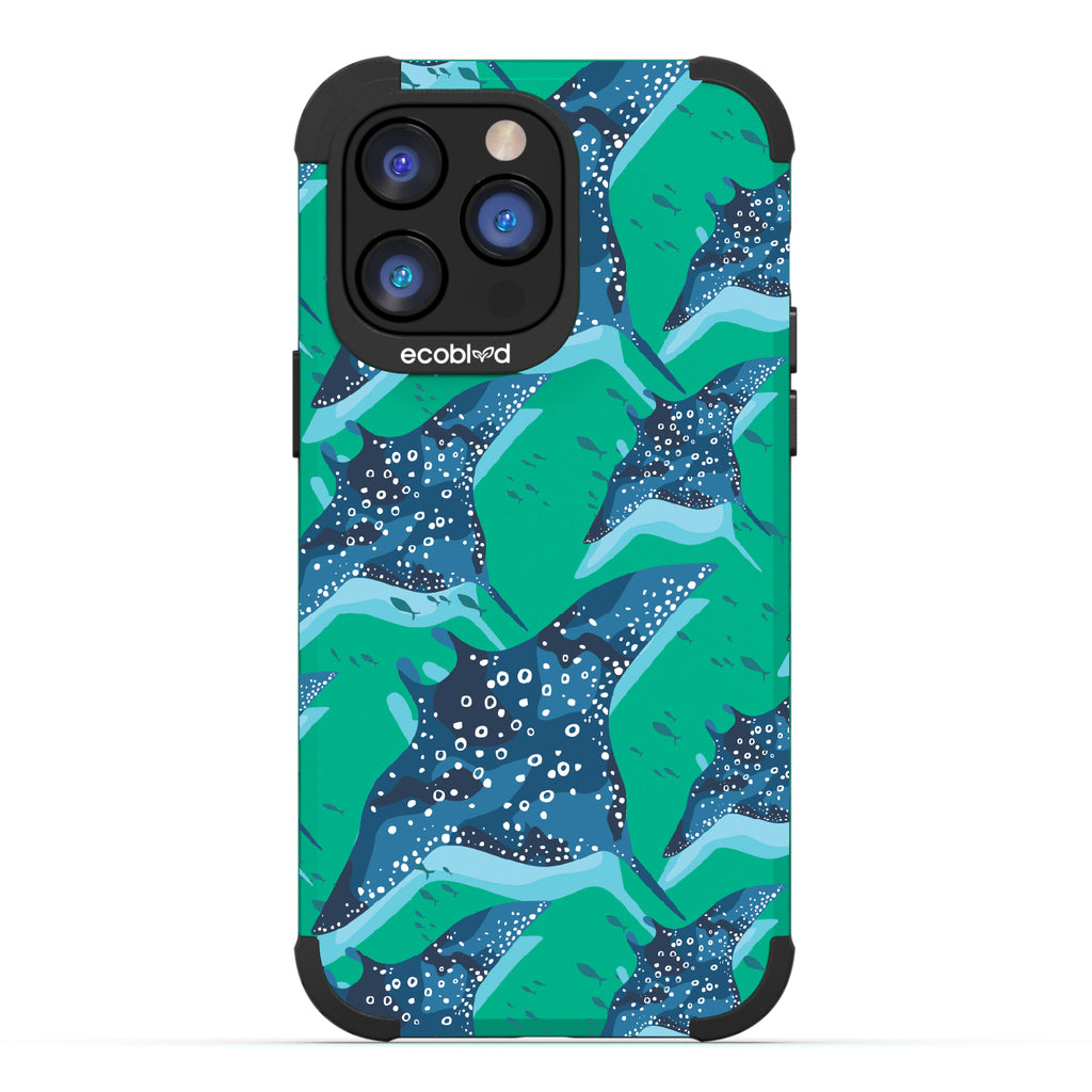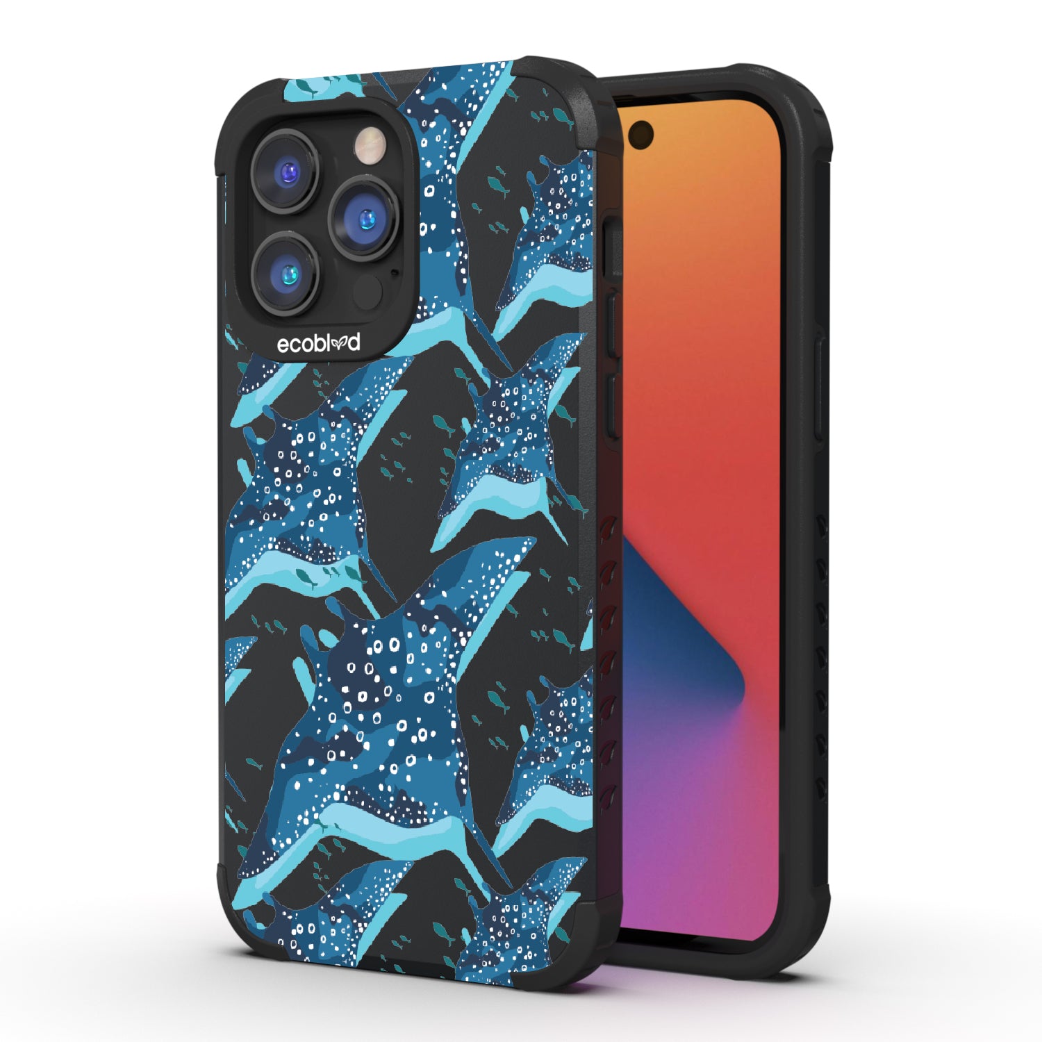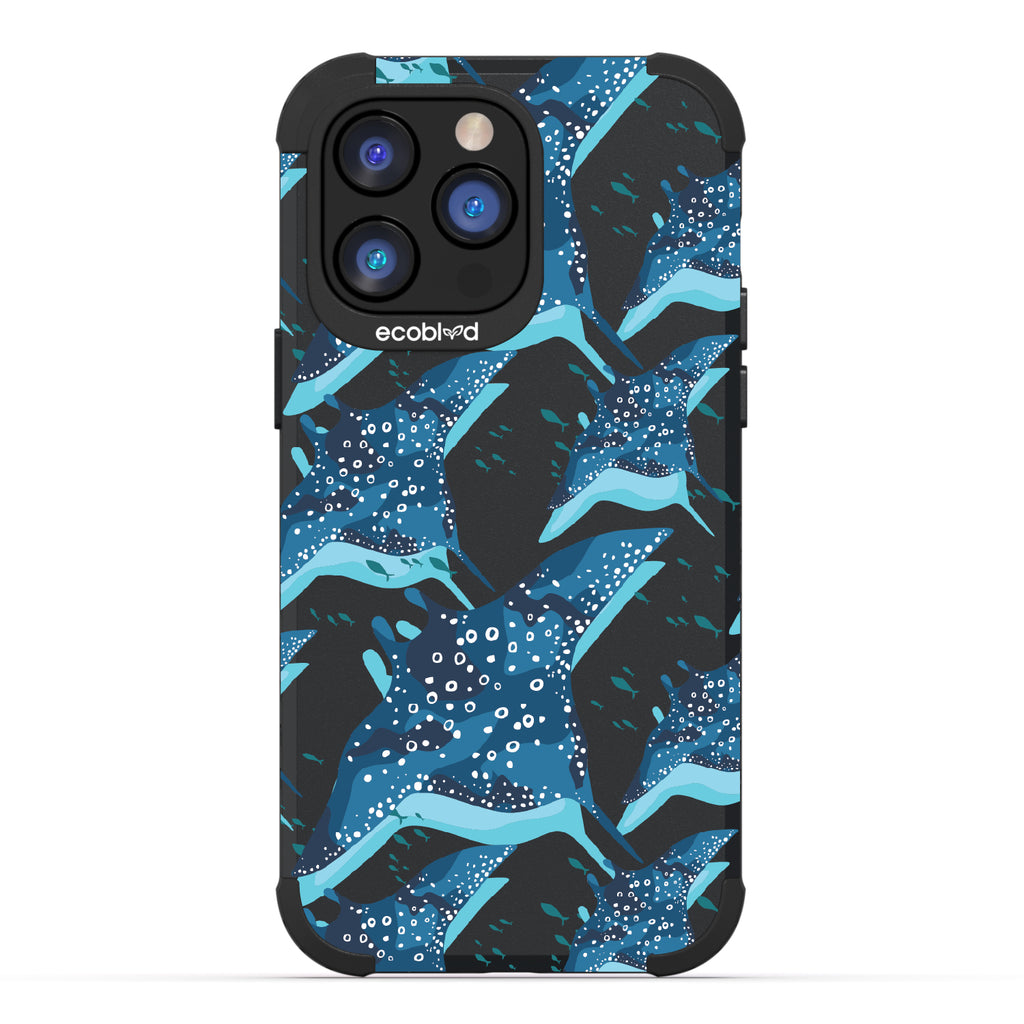 Sleek and stealthy, the Sting Ray design on our Mojave rugged and compostable iPhone 14 Pro Max phone case showcases these marine marvels as they glide effortlessly through the ocean depths. The stingrays streamlined bodies and distinctive spotted patterns capture the fluid grace of the sea’s most agile navigators.
