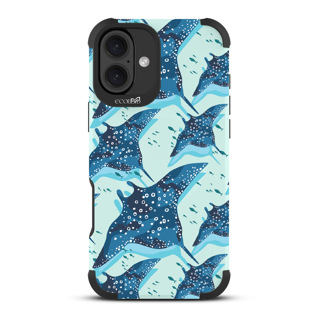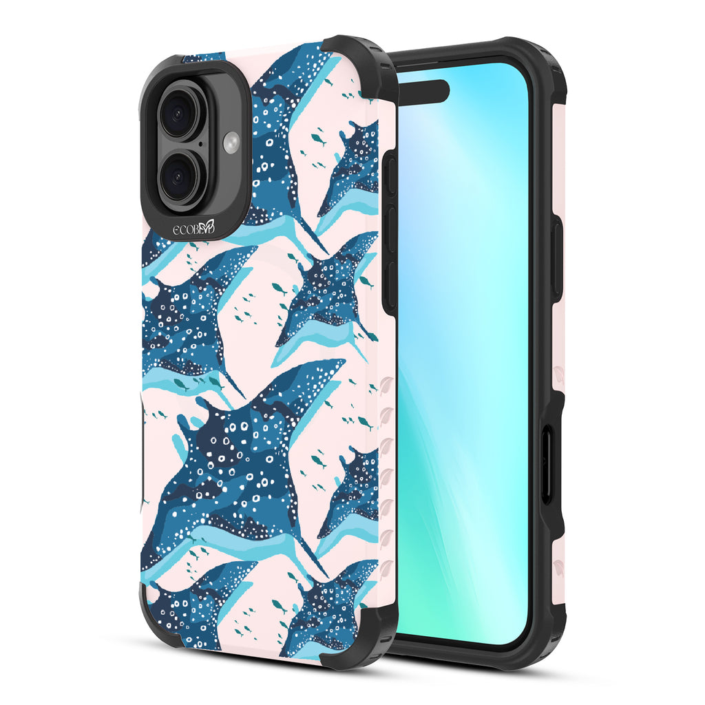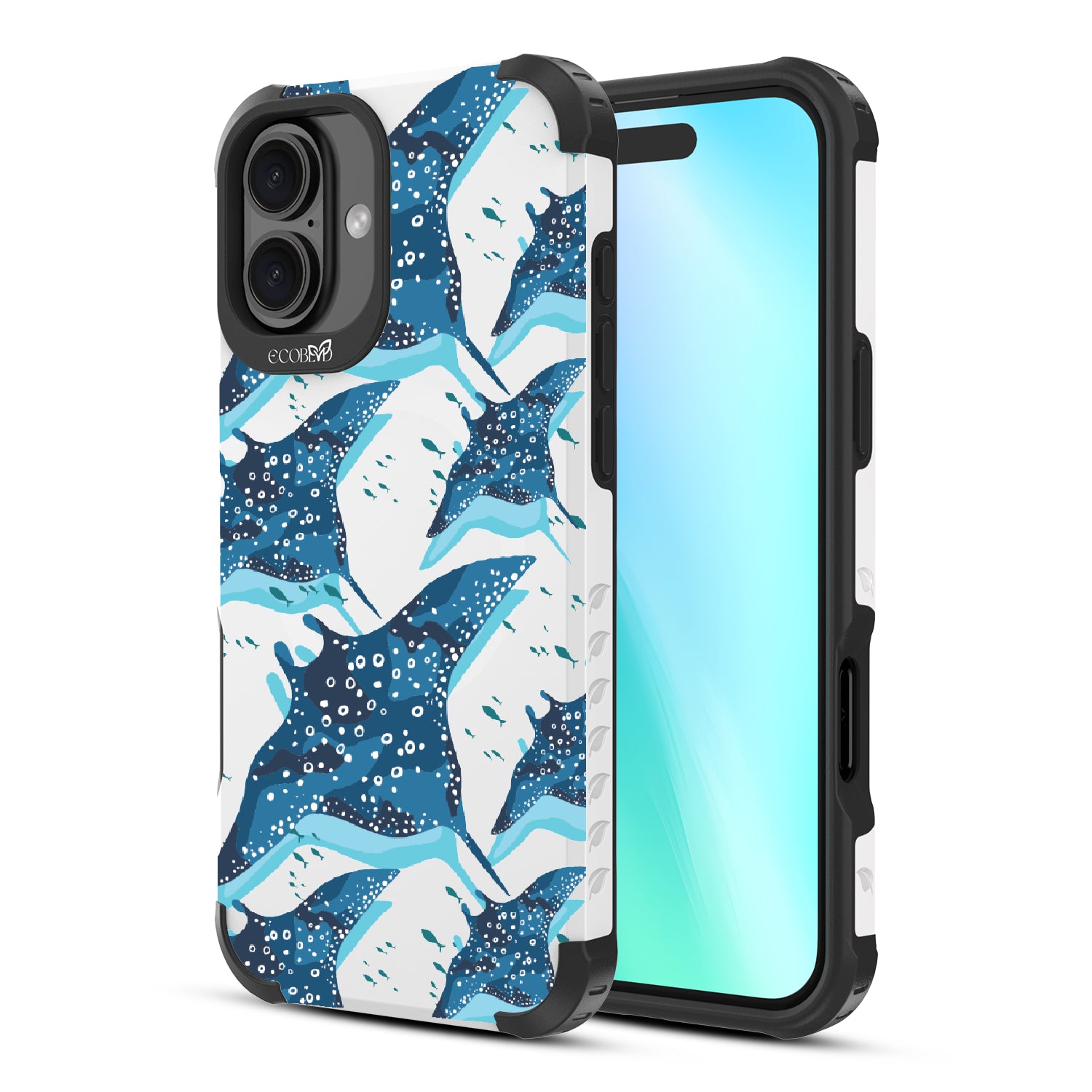 Sleek and stealthy, the Sting Ray design on our Reforge rugged iPhone 16 Plus phone case showcases these marine marvels as they glide effortlessly through the ocean depths. The stingrays streamlined bodies and distinctive spotted patterns capture the fluid grace of the sea’s most agile navigators.