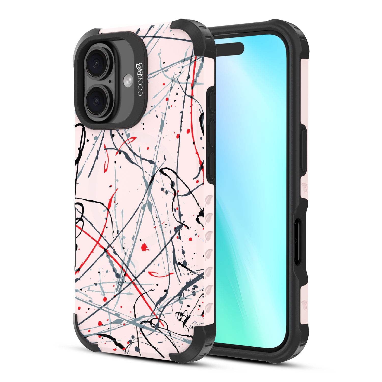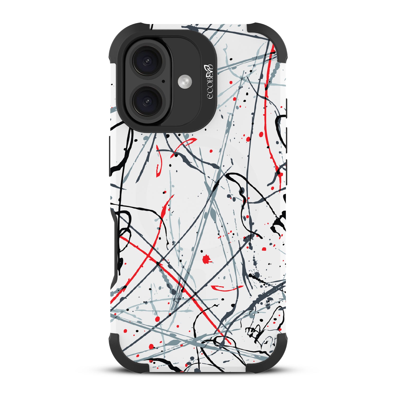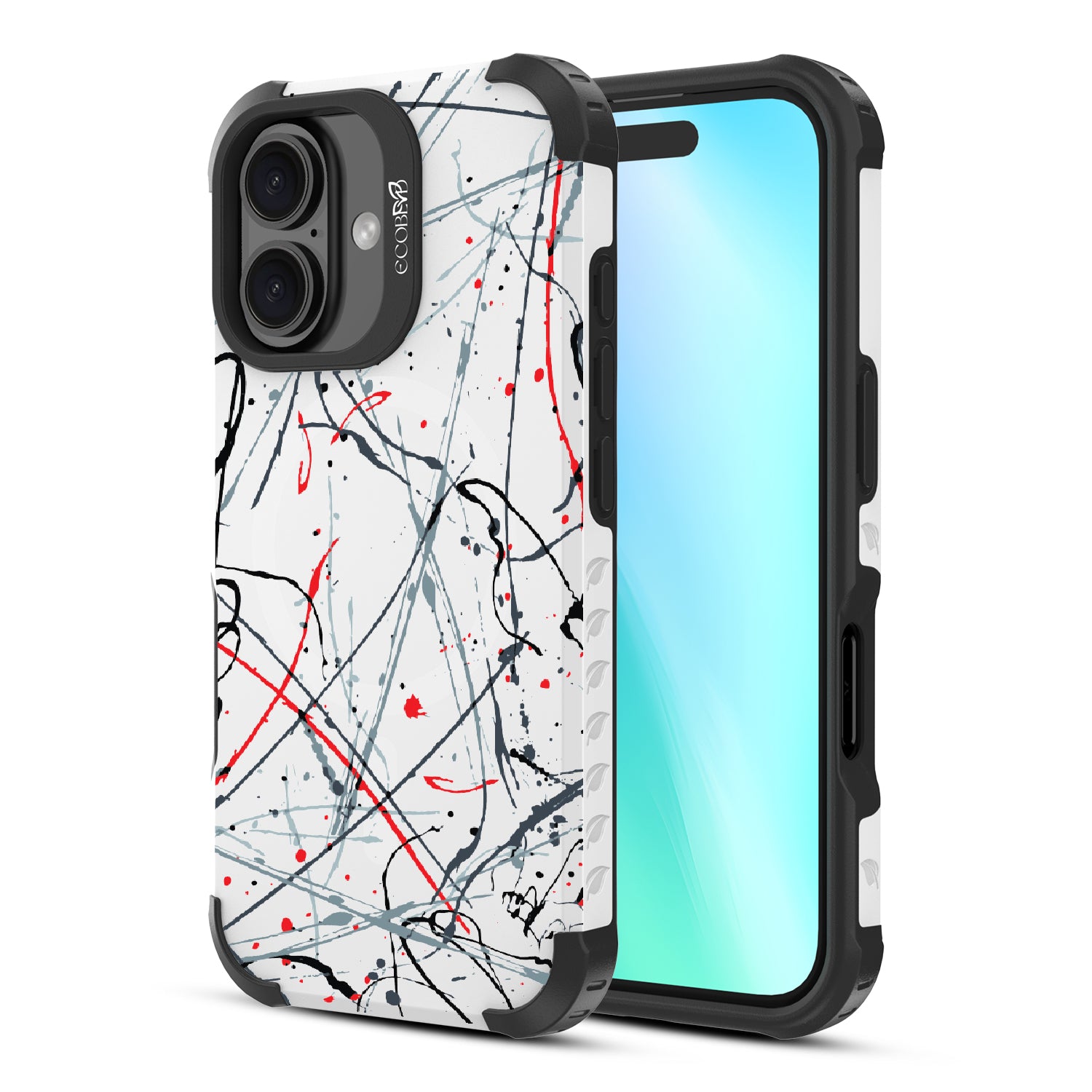 Unconventional and avant-garde, the Stroke Of Genius design on our Revive clear iPhone 16 phone case is a bold statement of progress that captures the essence of a creative journey - its abstract paint splatter lines with black and red lines resembling brush strokes signify the power, potential, and elegance of a stroke or flick that can ignite the genius within you, or at least on your phone.