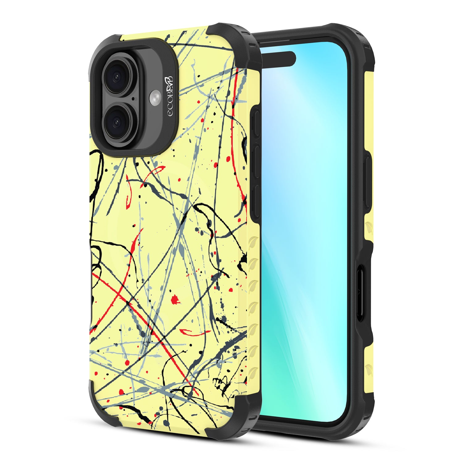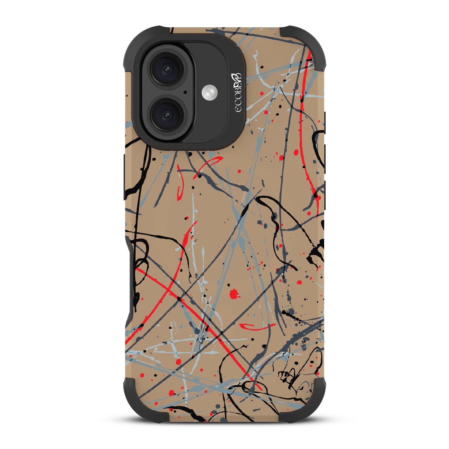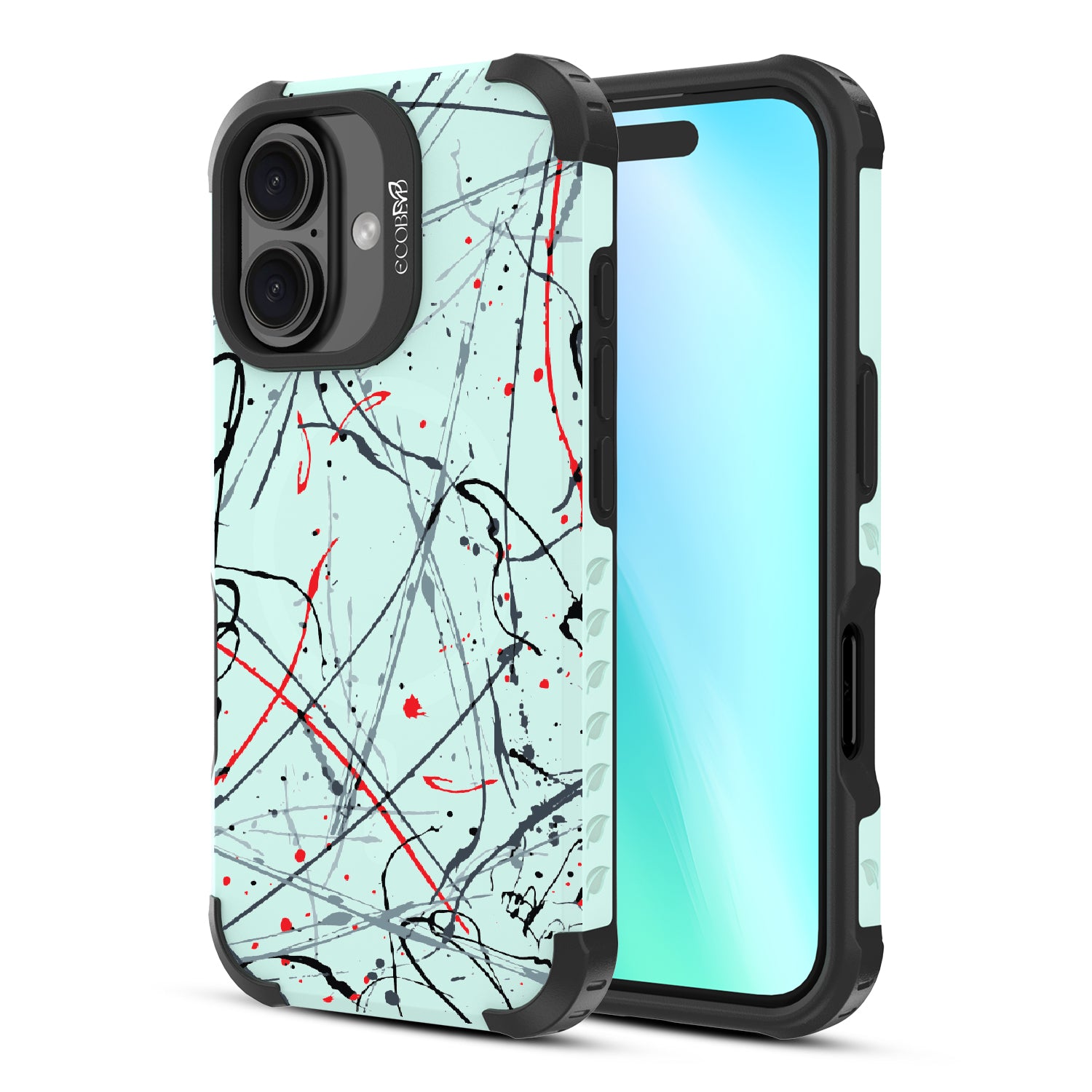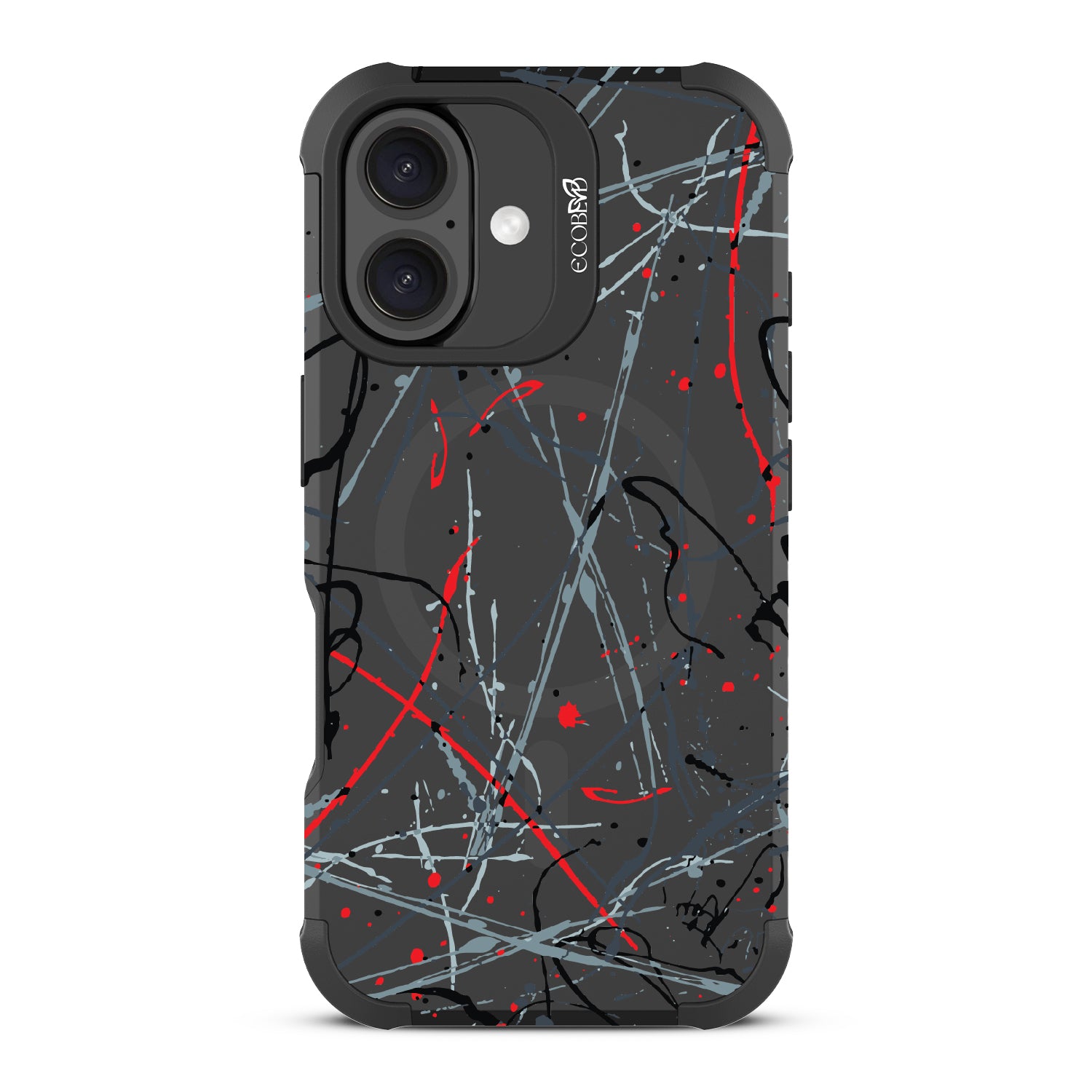 Unconventional and avant-garde, the Stroke Of Genius design on our Revive clear iPhone 16 phone case is a bold statement of progress that captures the essence of a creative journey - its abstract paint splatter lines with black and red lines resembling brush strokes signify the power, potential, and elegance of a stroke or flick that can ignite the genius within you, or at least on your phone.