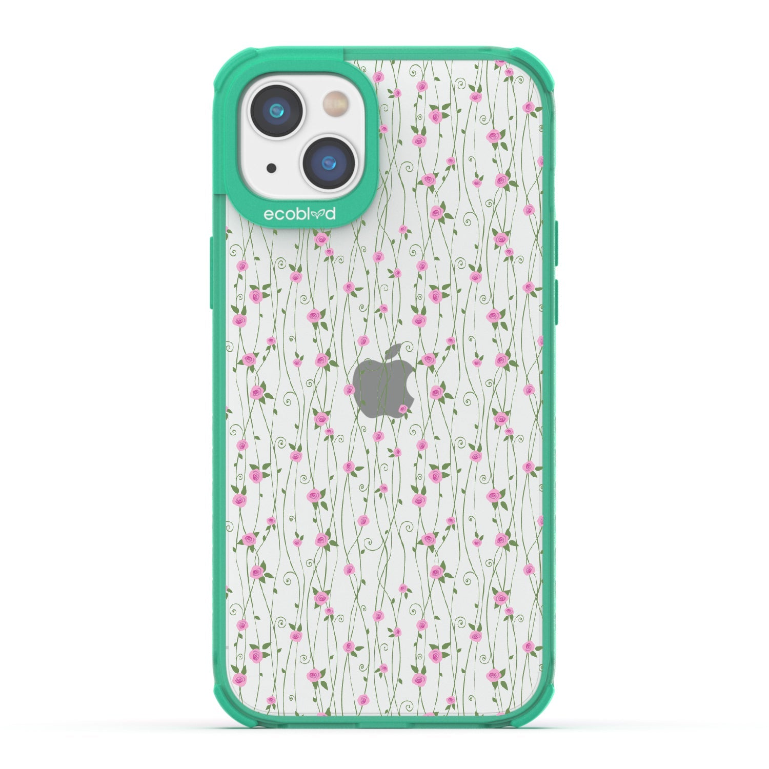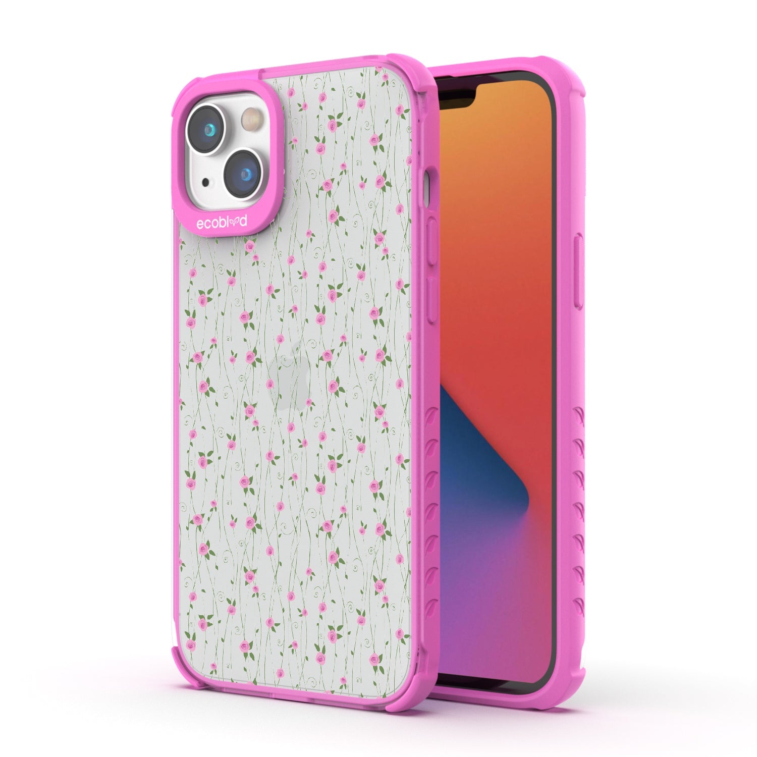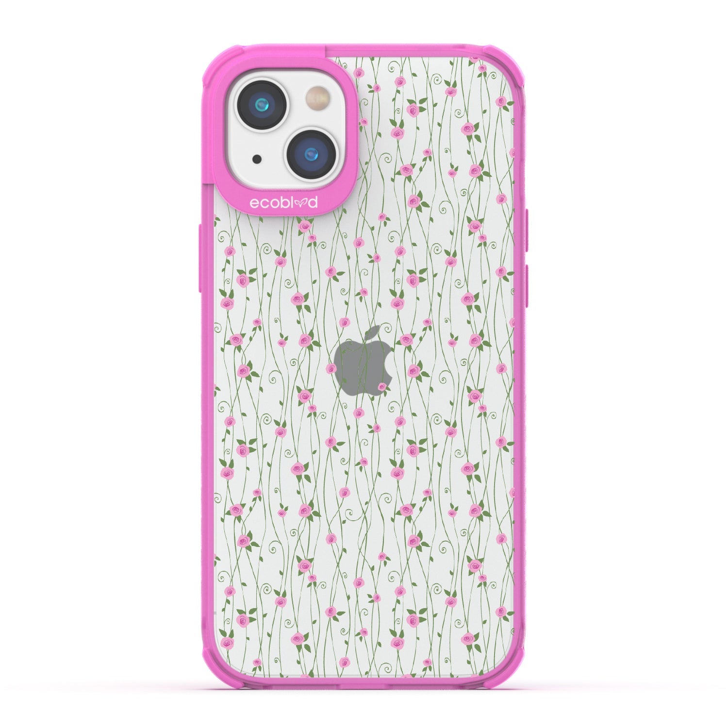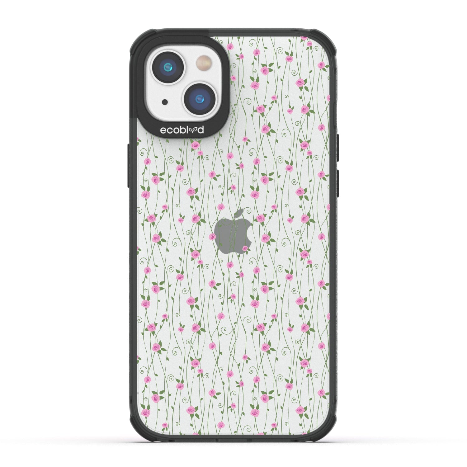 Let the Tangled design on our Laguna clear iPhone 16e, iPhone 14, and iPhone 13 case inspire your journey of growth and connection, where pink flowers and vines illustrate the beauty of life's intertwining paths. This design, infused with the vibrant energy of spring, showcases intricate vines and delicate pink flowers as symbols of growth and resilience, painting a picture of natural harmony and flourishing.