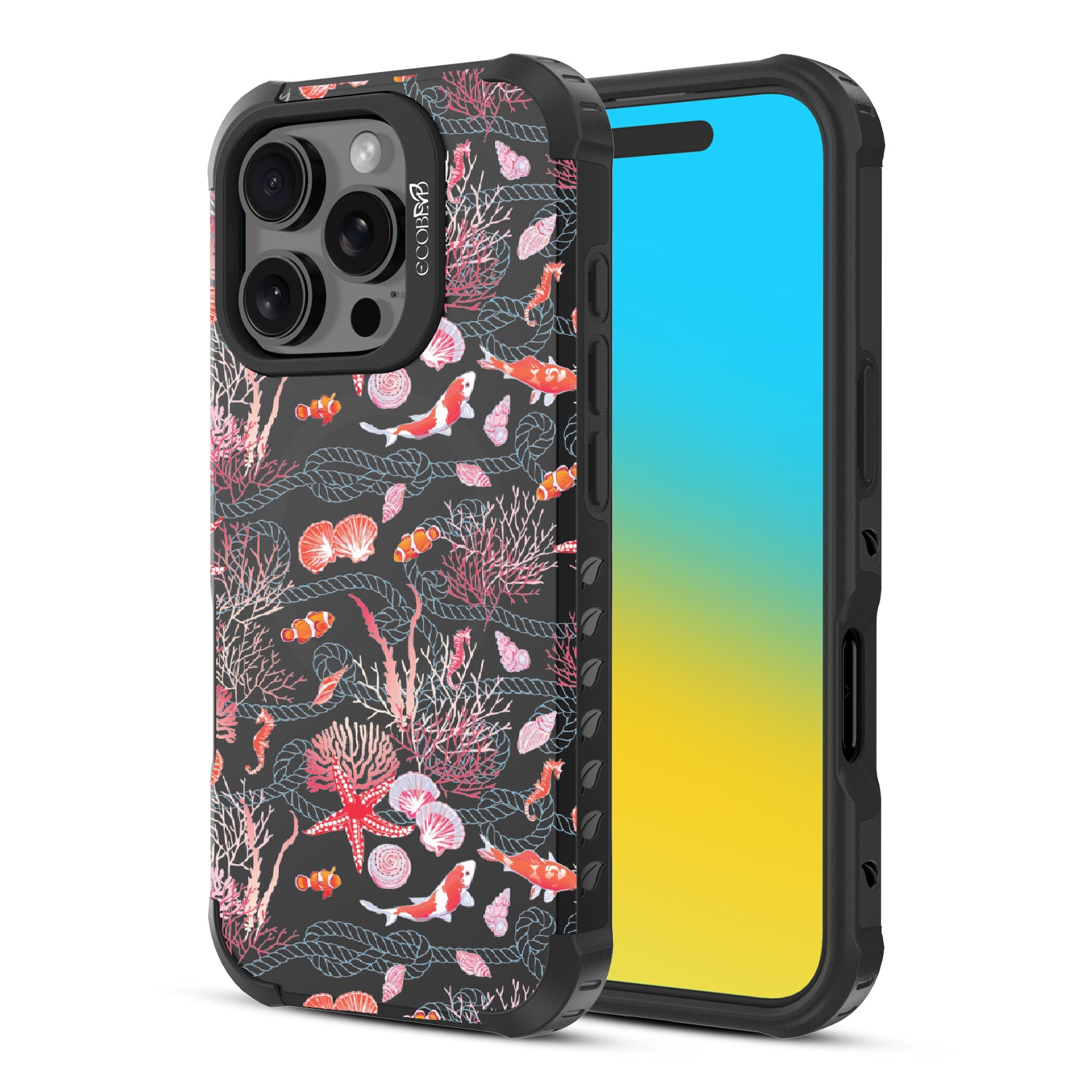 The coral is always brighter, Under the Sea! With this design our Reforge rugged iPhone 16 Pro phone case, you'll see, your phone’s full of glee, under the sea! Coral and critters, they all come together, swirling in hues, pinks, and blues, where life’s better wetter, take it from me! Your phone will be dancing, twirling, and prancing, carrying the magic of the ocean so fancy! So let your phone be, full of joy and glee, under the sea.