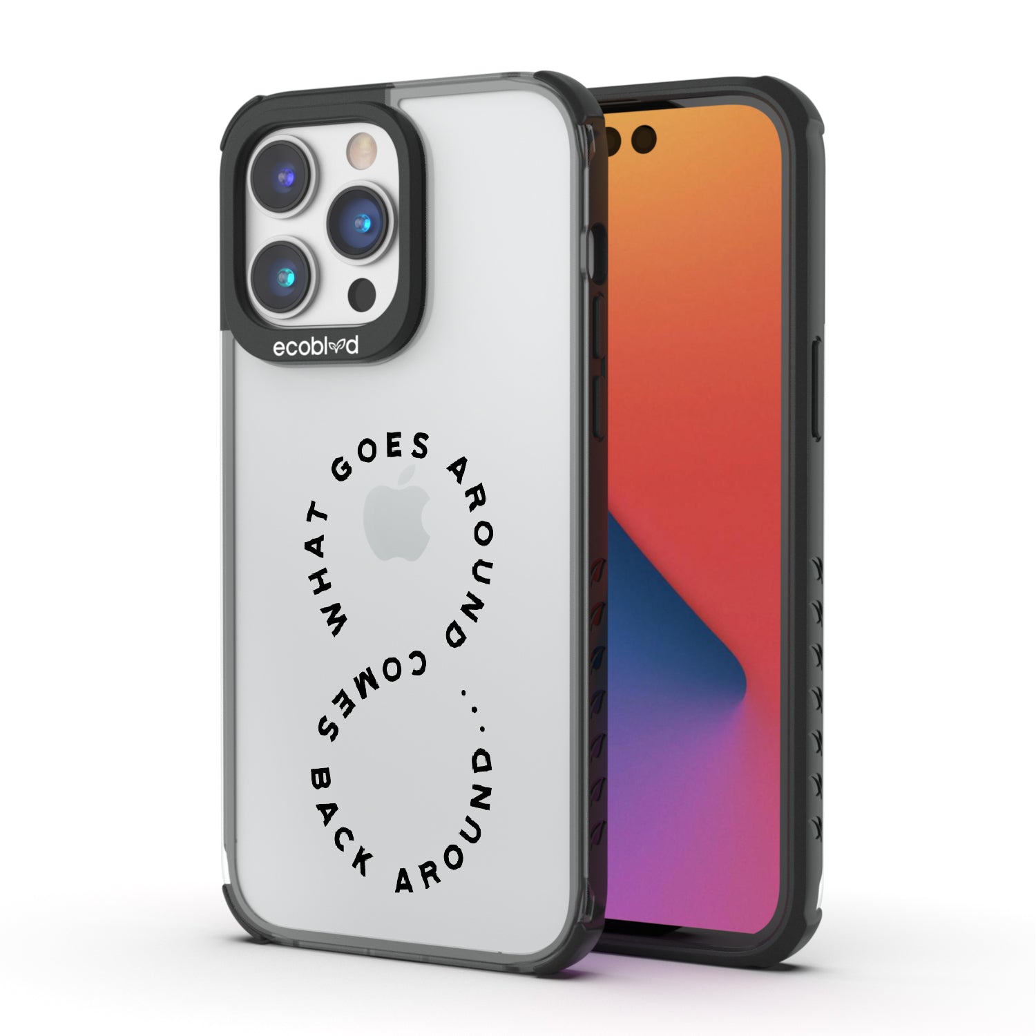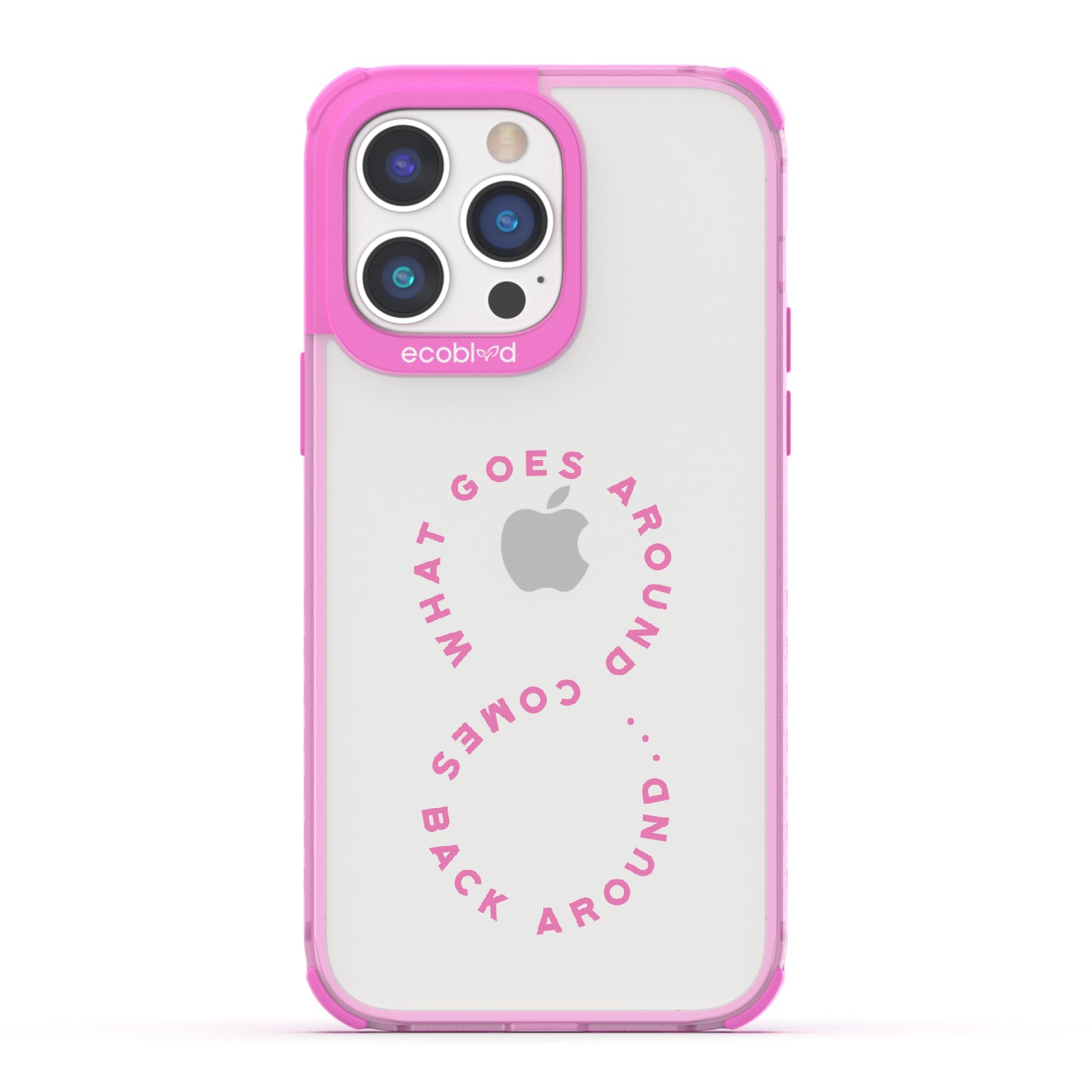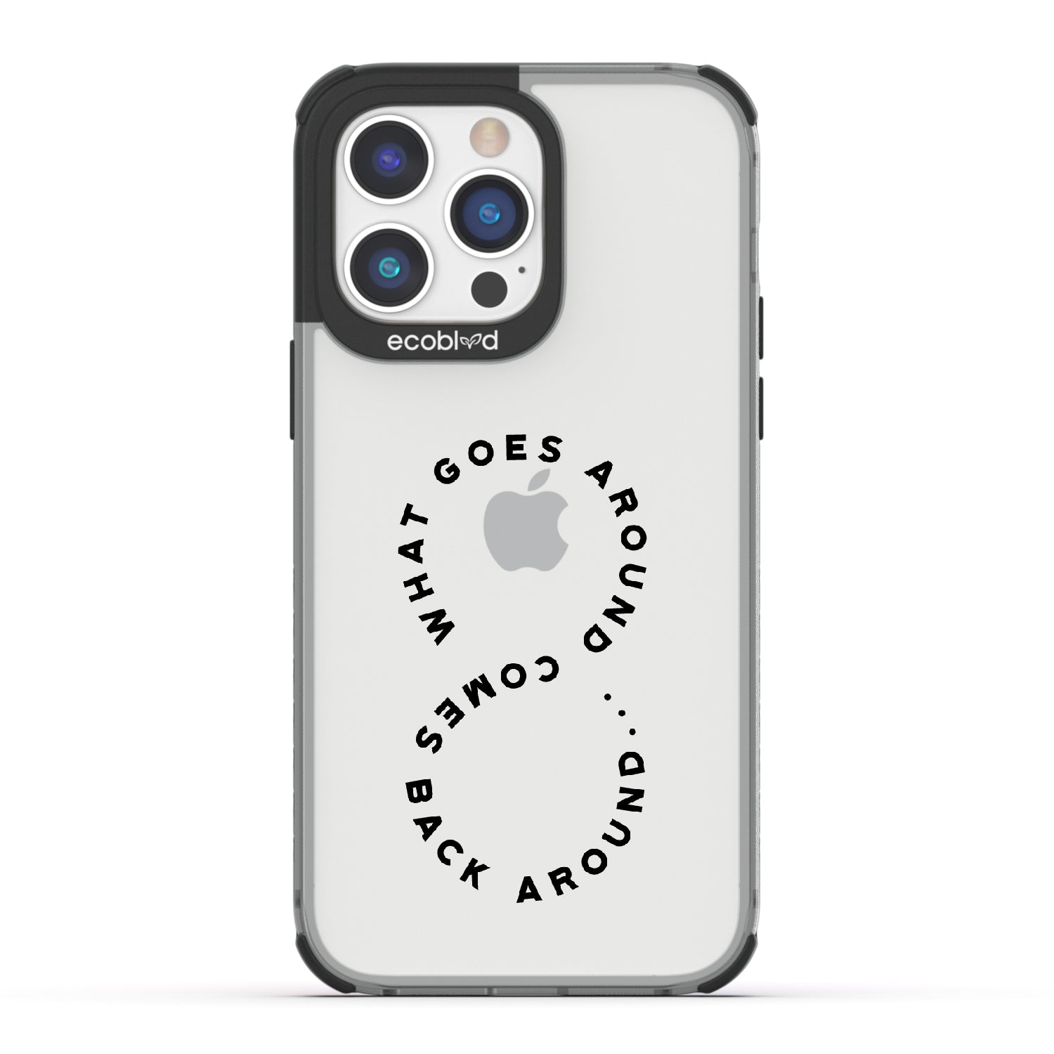 Everything inevitably comes full circle with the What Goes Around Comes Around design on our Laguna clear iPhone 14 Pro case as its infinity symbol loops back to our karma. A reminder that every action has its place and that all we do creates ripples that echo our energy out into the world and back to us.