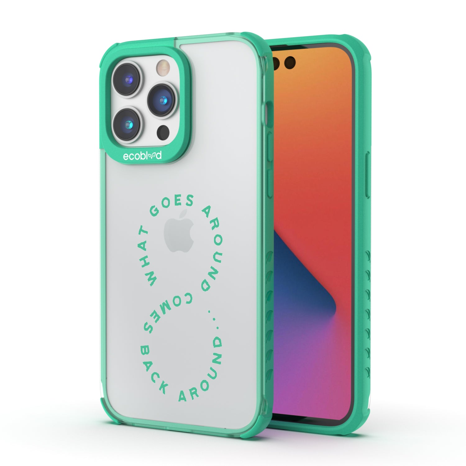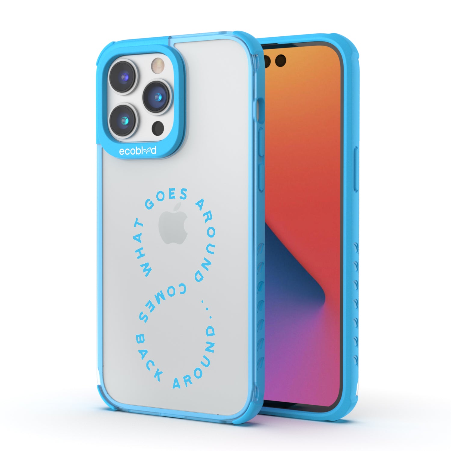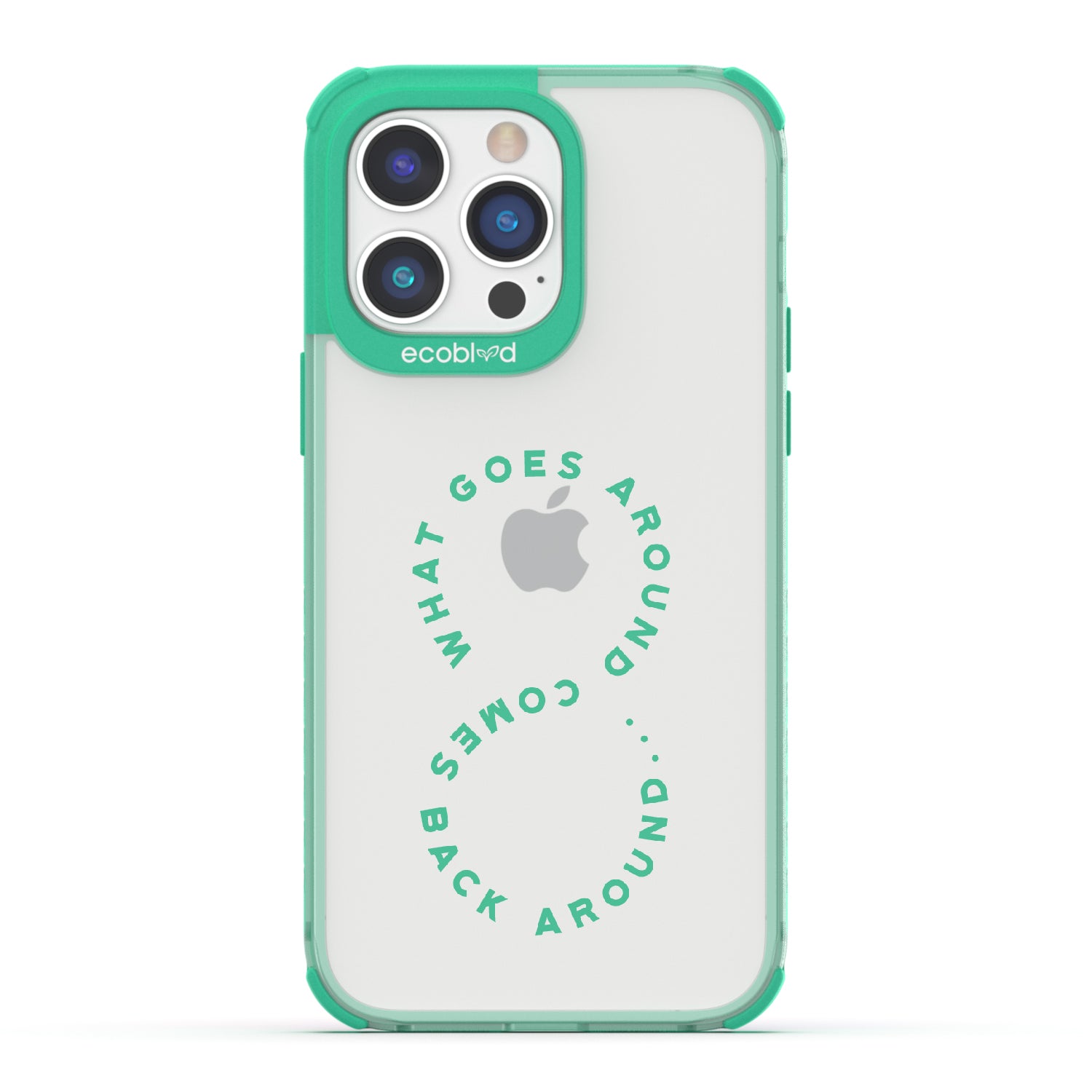 Everything inevitably comes full circle with the What Goes Around Comes Around design on our Laguna clear iPhone 14 Pro case as its infinity symbol loops back to our karma. A reminder that every action has its place and that all we do creates ripples that echo our energy out into the world and back to us.
