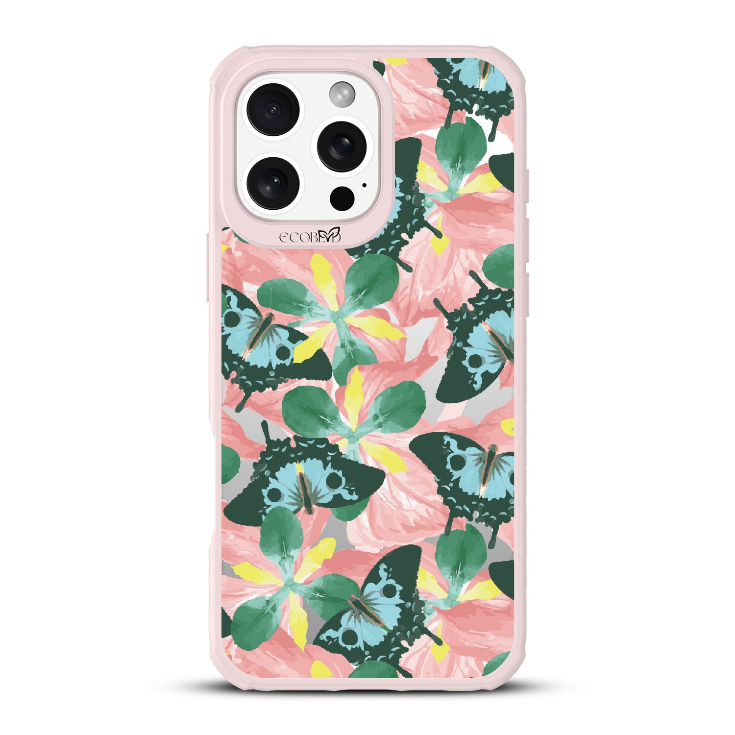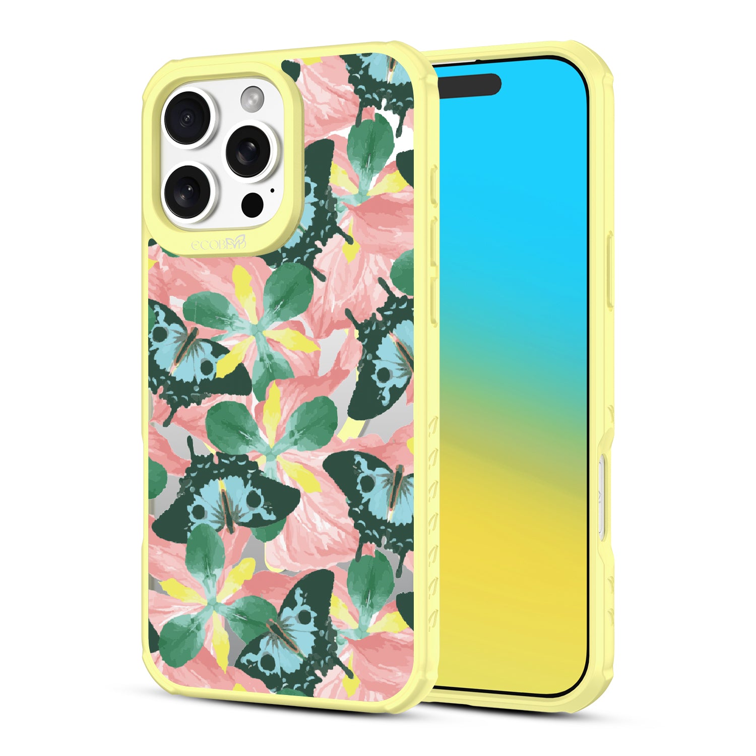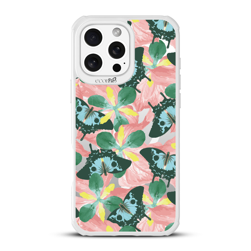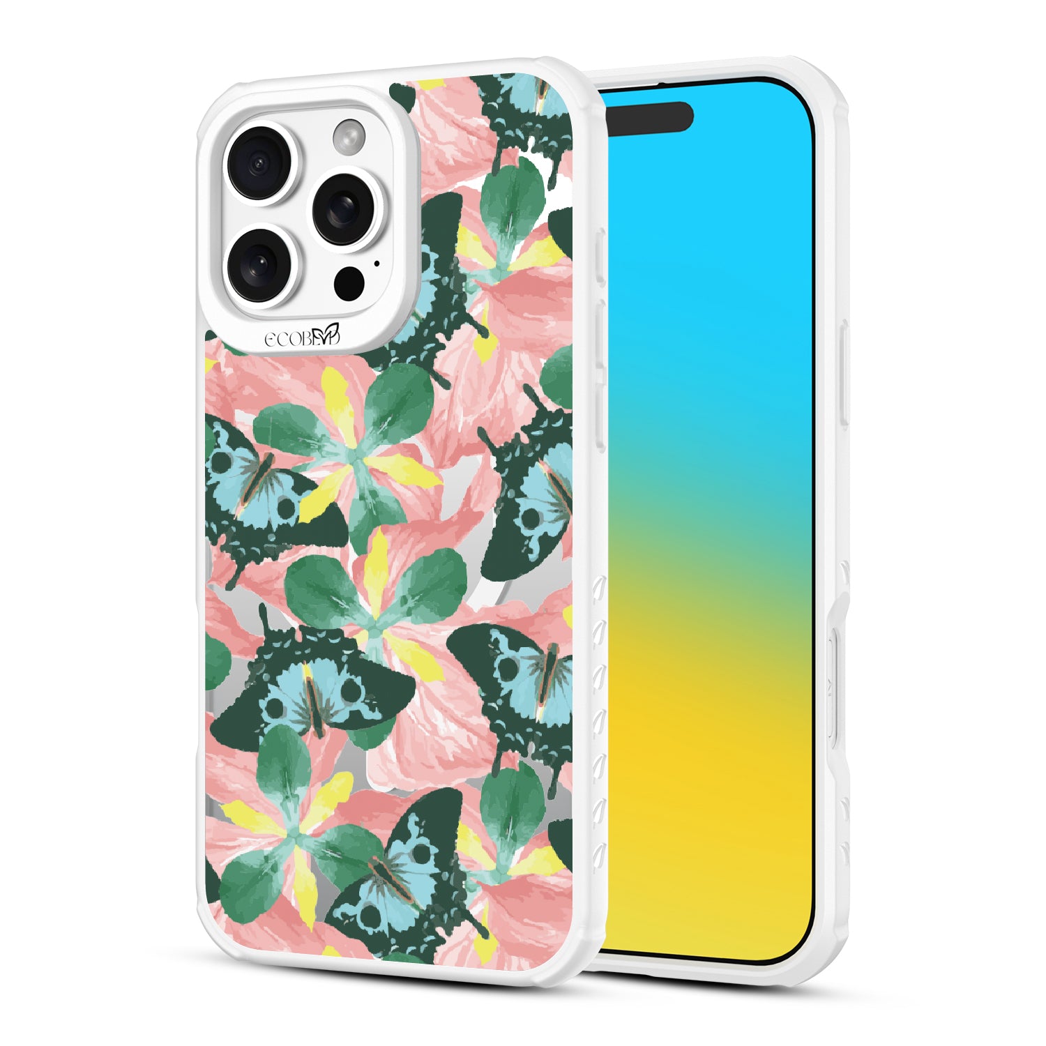 Time to look even more fly with the Fluttering Bouquet design on our Revive clear iPhone 16 Pro Max phone case - featuring a stunning floral and butterfly phone case design that offers soaring style and protection while supporting ocean conservation efforts. This design is a secret garden of butterflies and flowers, with each petal blooming like a delicate wing that spreads and takes flight in the breeze.