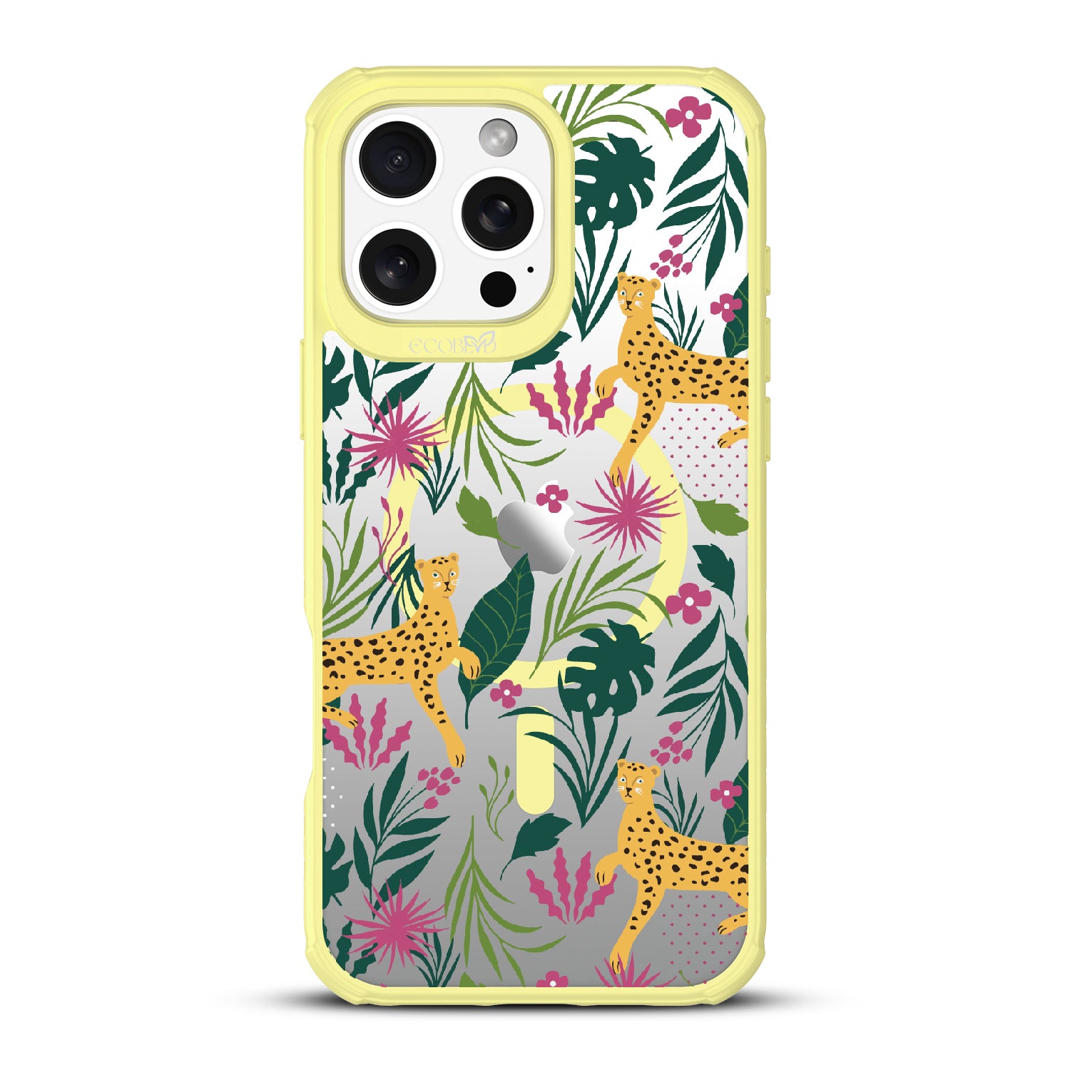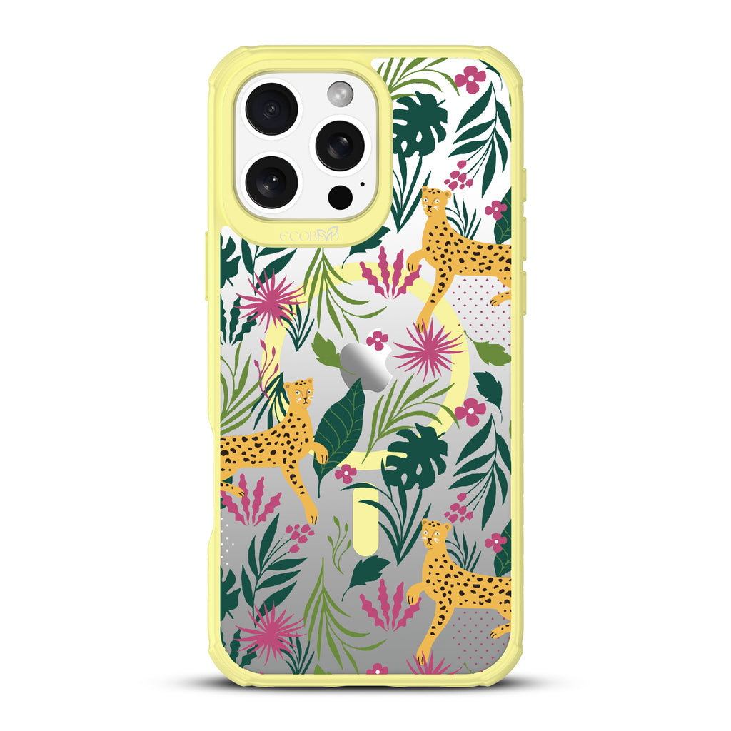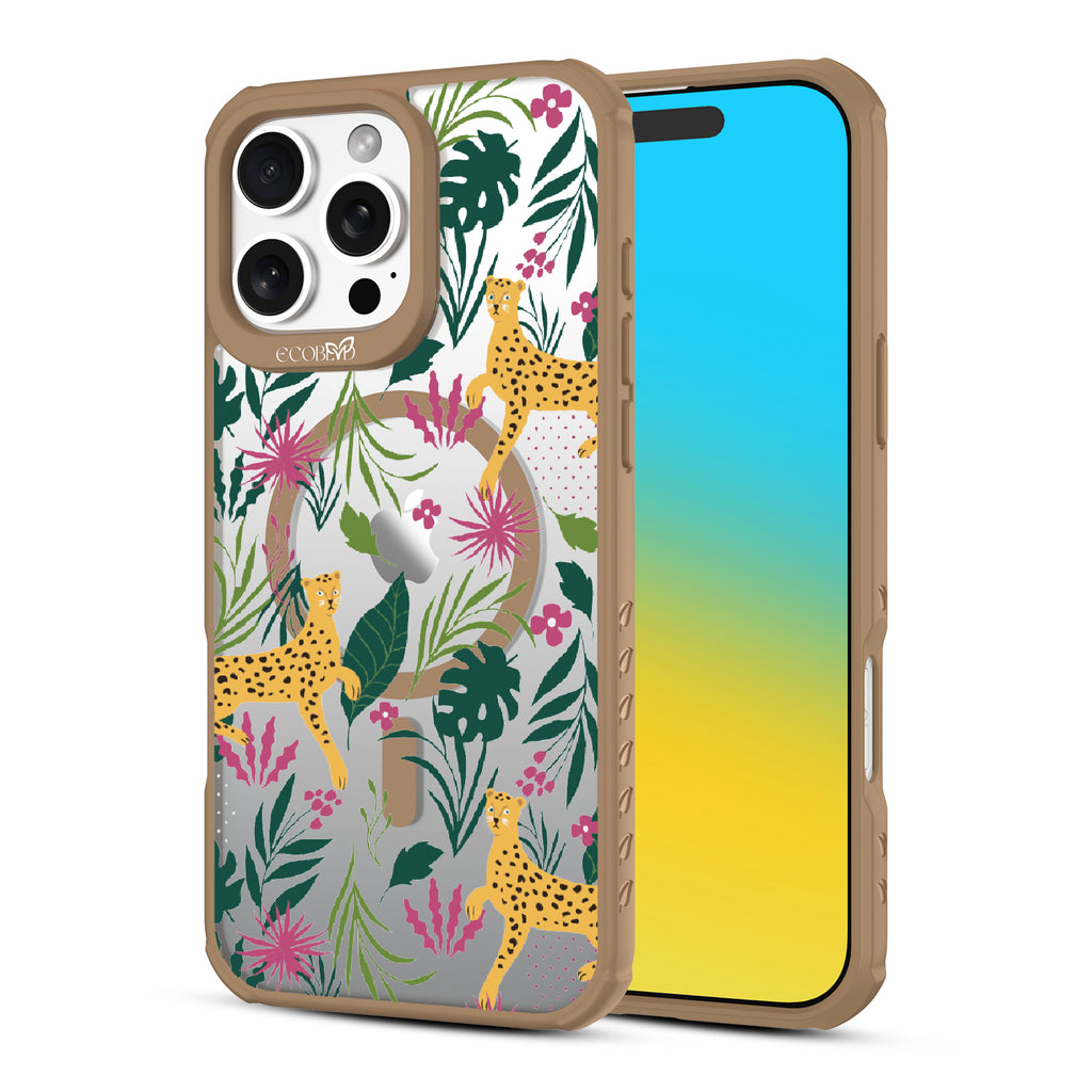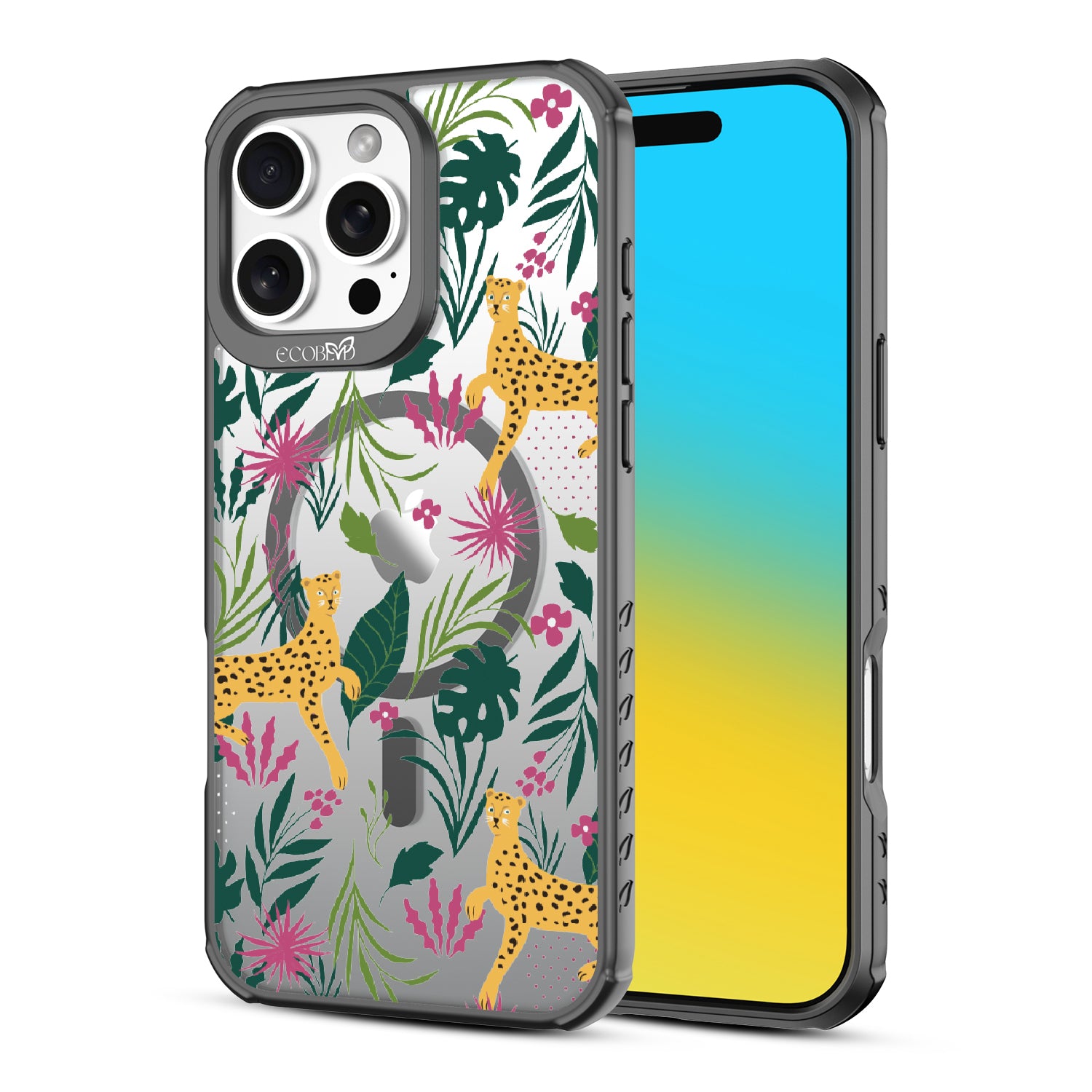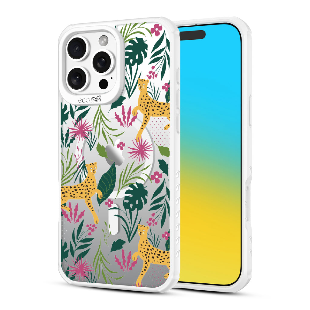 Ride the rhythm of the Jungle Boogie design, exclusively crafted for the Revive clear iPhone 16 Pro Max phone case. Jungle Boogie is a phone case design that transports you to a lively, vibrant jungle scene where the natural vibe of the music is always playing. It's a representation of the lively, energetic, and playful spirit of the jungle, where everything is in motion, and the world is alive. The design features lush foliage, bright flowers, and a powerful cheetah that's always on the move, embodying the wild, untamed spirit of the jungle.