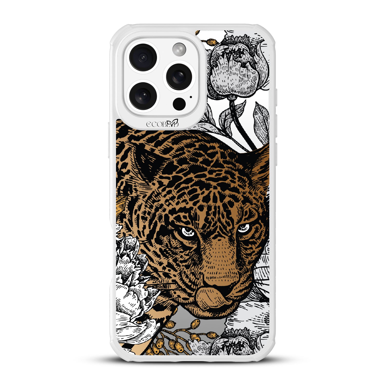 Captivating with its striking rendition of a fierce leopard in action, Purrfectly Striking, an exclusive design crafted for the Revive clear iPhone 16 Pro Max phone case embraces the untamed beauty of this majestic wildcat. Experience the perfect blend of impeccable style and protection while championing ocean conservation efforts. Step out of the ordinary and into the wild with this Purrfectly Striking design! Featuring a fierce leopard on the prowl amidst a sea of grayscale flowers, this phone case roars with confidence thanks to its bold print. Purrfectly Striking is the perfect choice for those who want to unleash their inner wild side and look ferociously cool.