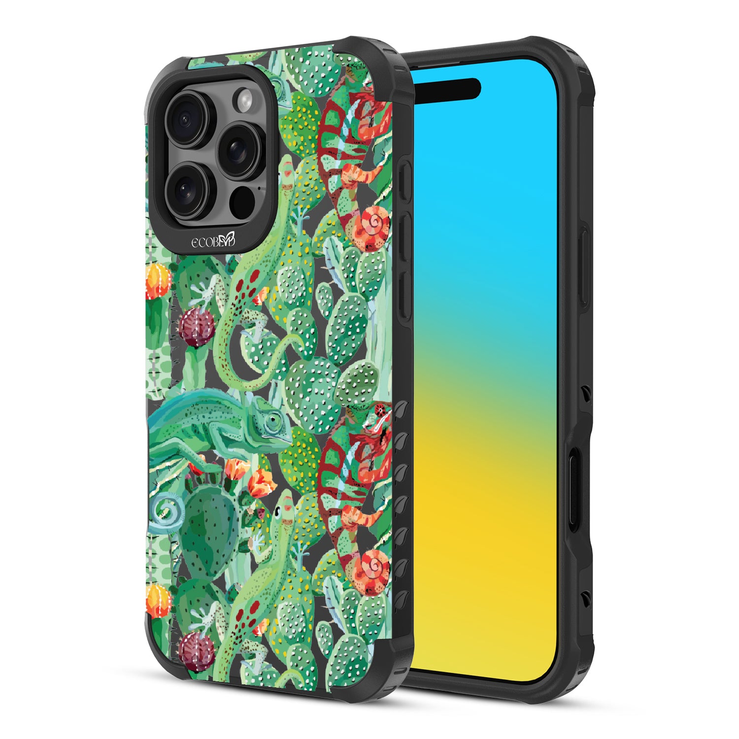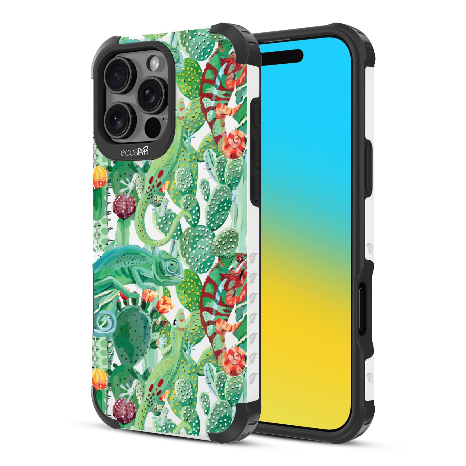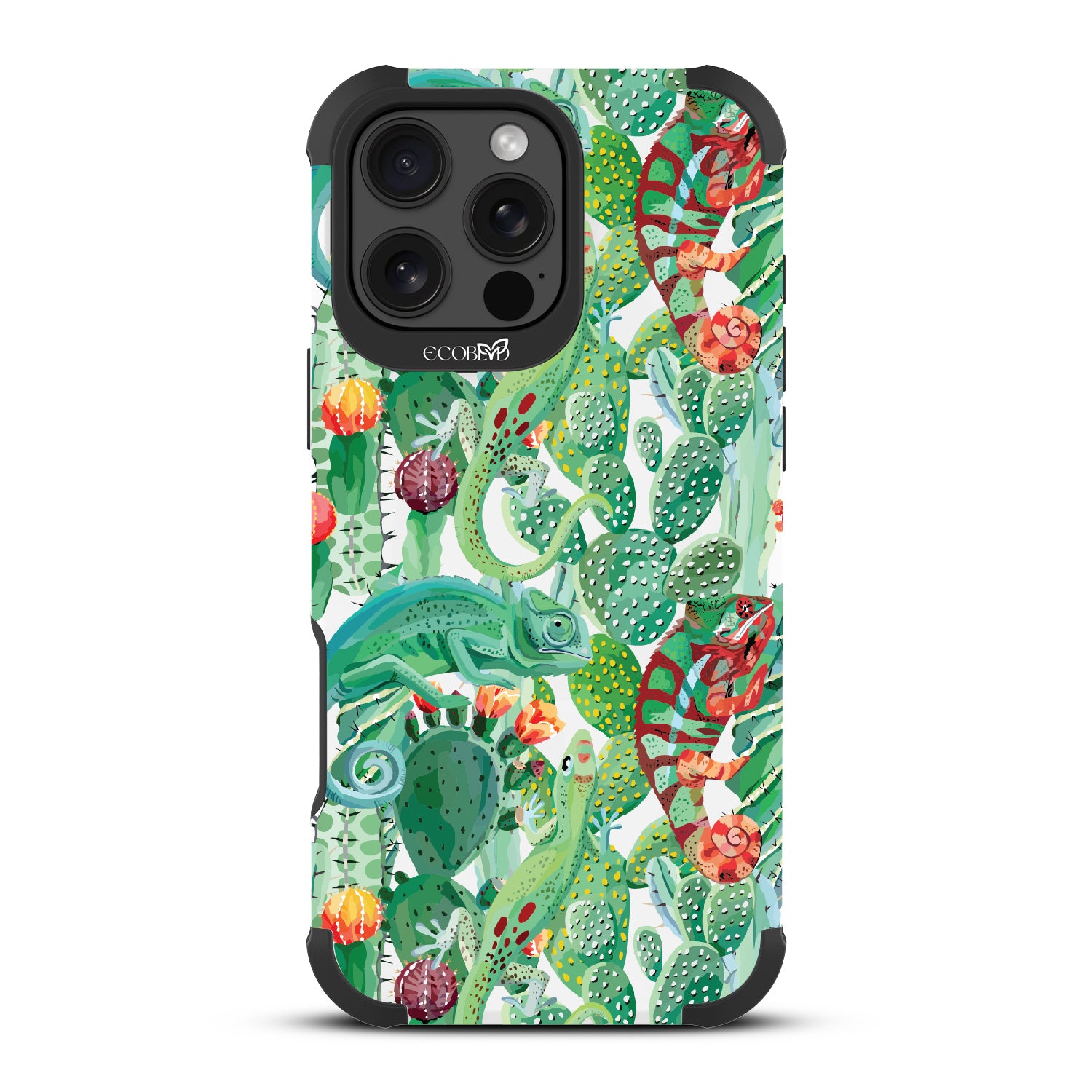 Embrace the captivating artistry of nature's hidden wonders with In Plain Sight, an exclusive design crafted for the Reforge rugged iPhone 16 Pro Max phone case. Immerse yourself in impeccable style and protection while supporting ocean conservation efforts, as you embark on a wild journey with this captivating phone case. This design shows that sometimes, the most beautiful things are hiding In Plain Sight with a playful nod to the chameleons' camouflage abilities and their effortless blend into the colorful cactus landscape.
