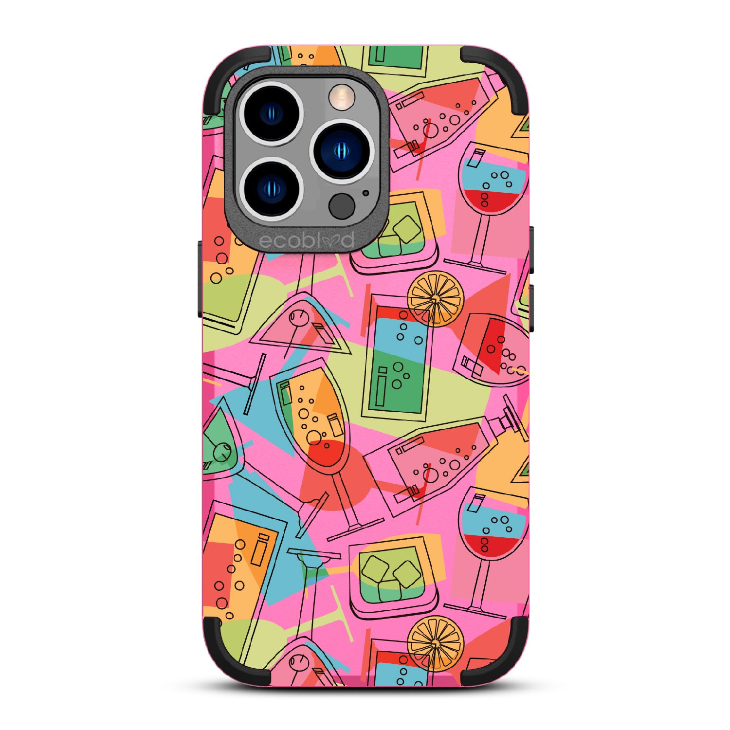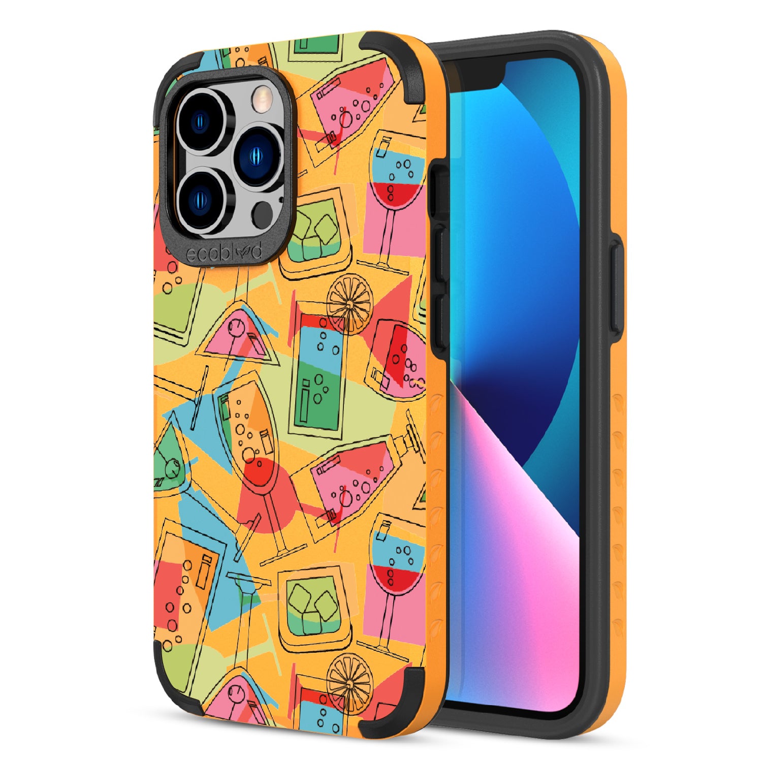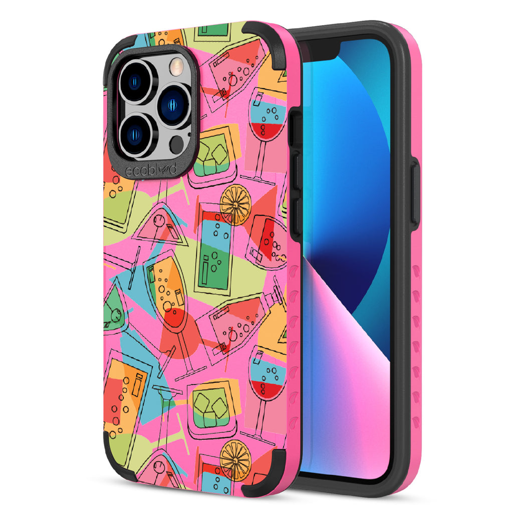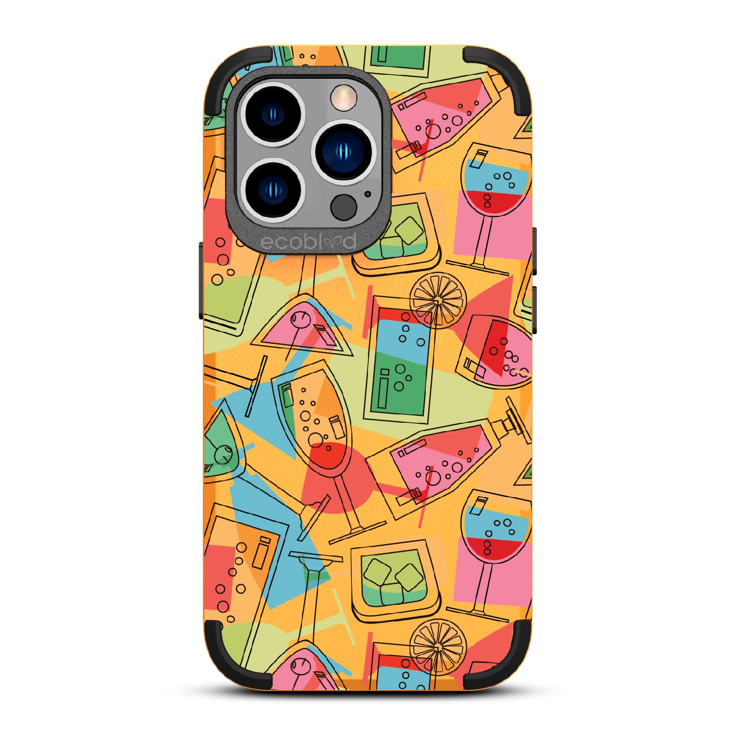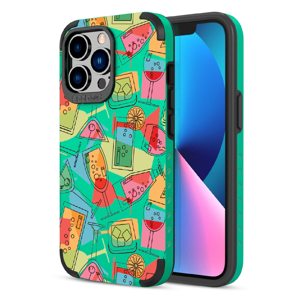 It's always party time with the 5 O'clock Somewhere design on our Mojave rugged and compostable iPhone 12 Pro Max case & iPhone 13 Pro Max case. This lively design serves up a vibrant concoction of martini, cocktail, and other lively drinks, capturing the summertime spirit. Whenever and wherever you are, let loose, relax, and kick back. It's time to raise a glass, toast to good times, and make your phone the life of the party!