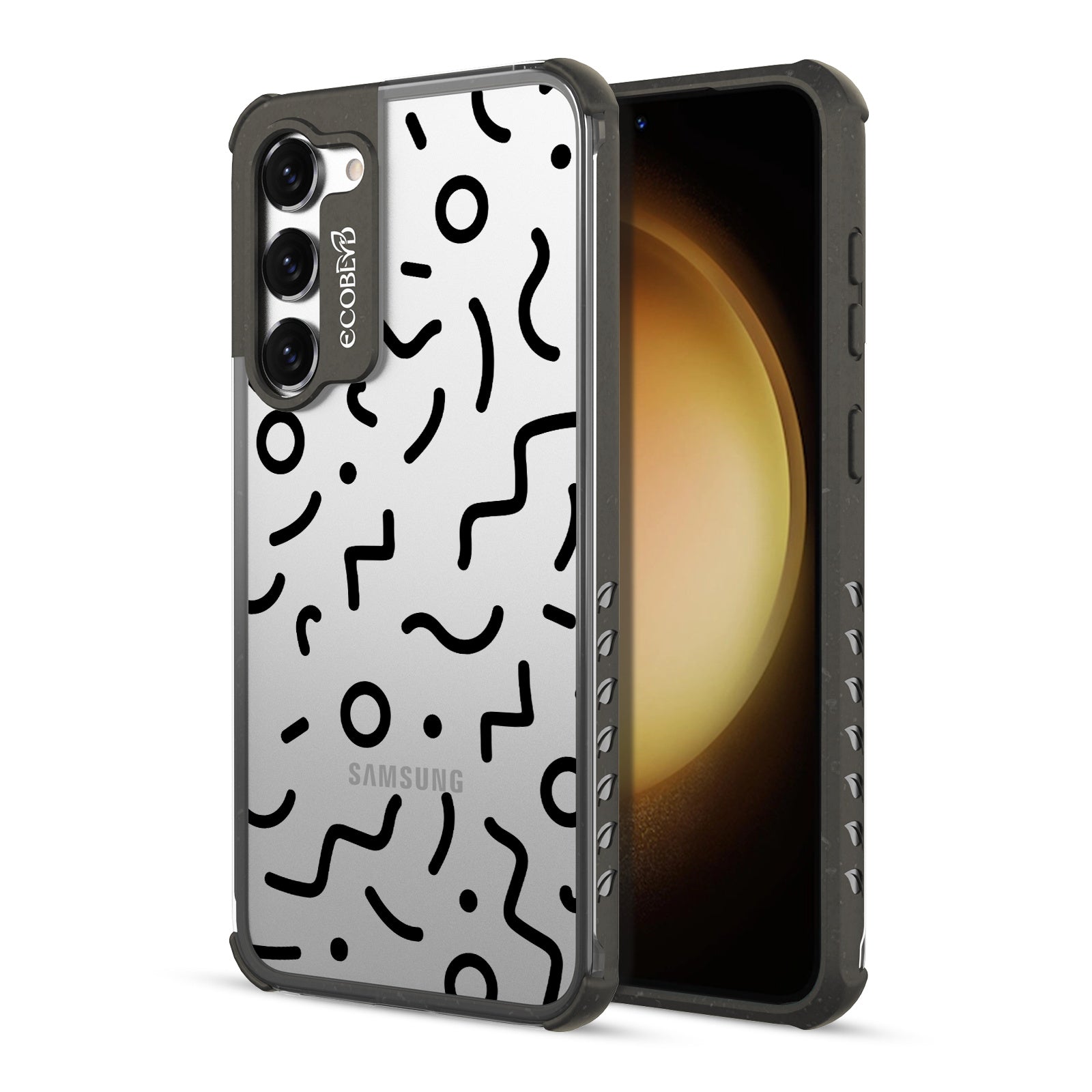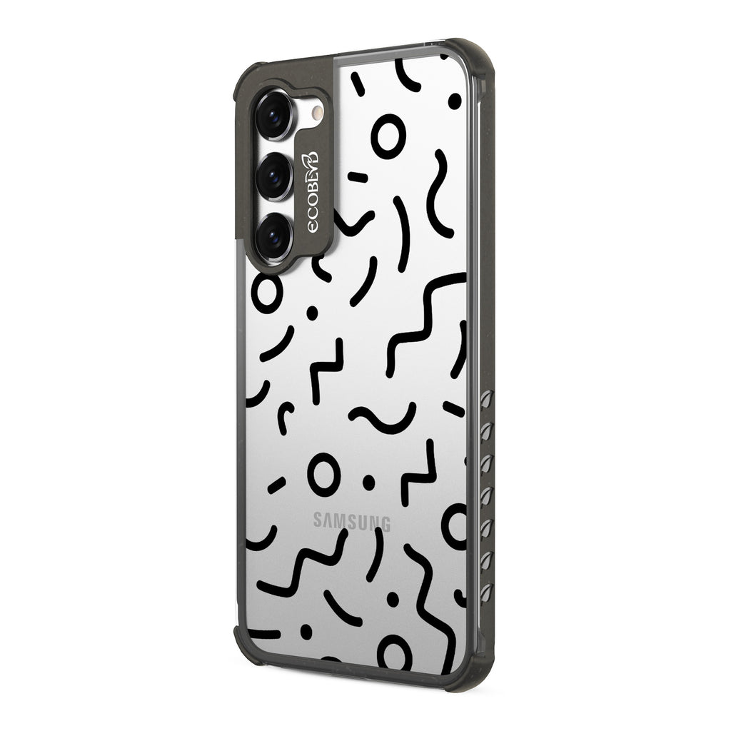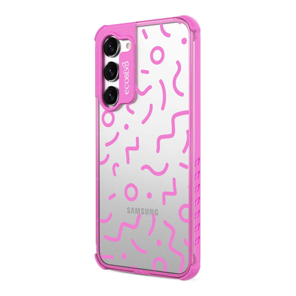 Experience a nostalgic blast from the past with the Laguna clear Galaxy S23 case - with a 90's-themed phone case design that offers style and protection while supporting ocean conservation efforts. The 90's Kids design features bold, wavy, and squiggly lines and circles in five vibrant colors: Midnight Black, Cascade Blue, Foliage Green, Illuminating Yellow, and Wildflower Pink.