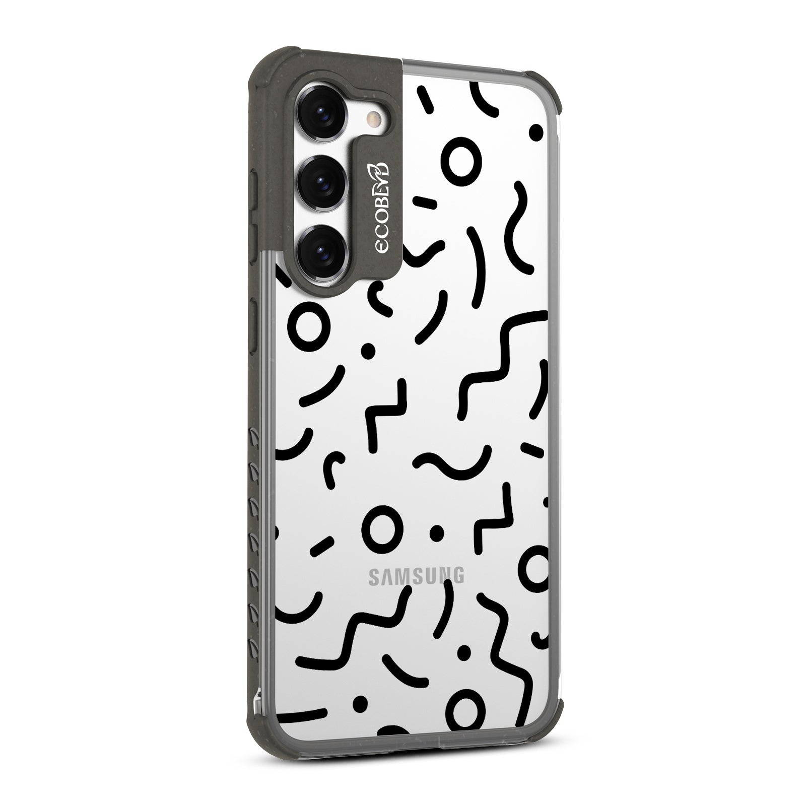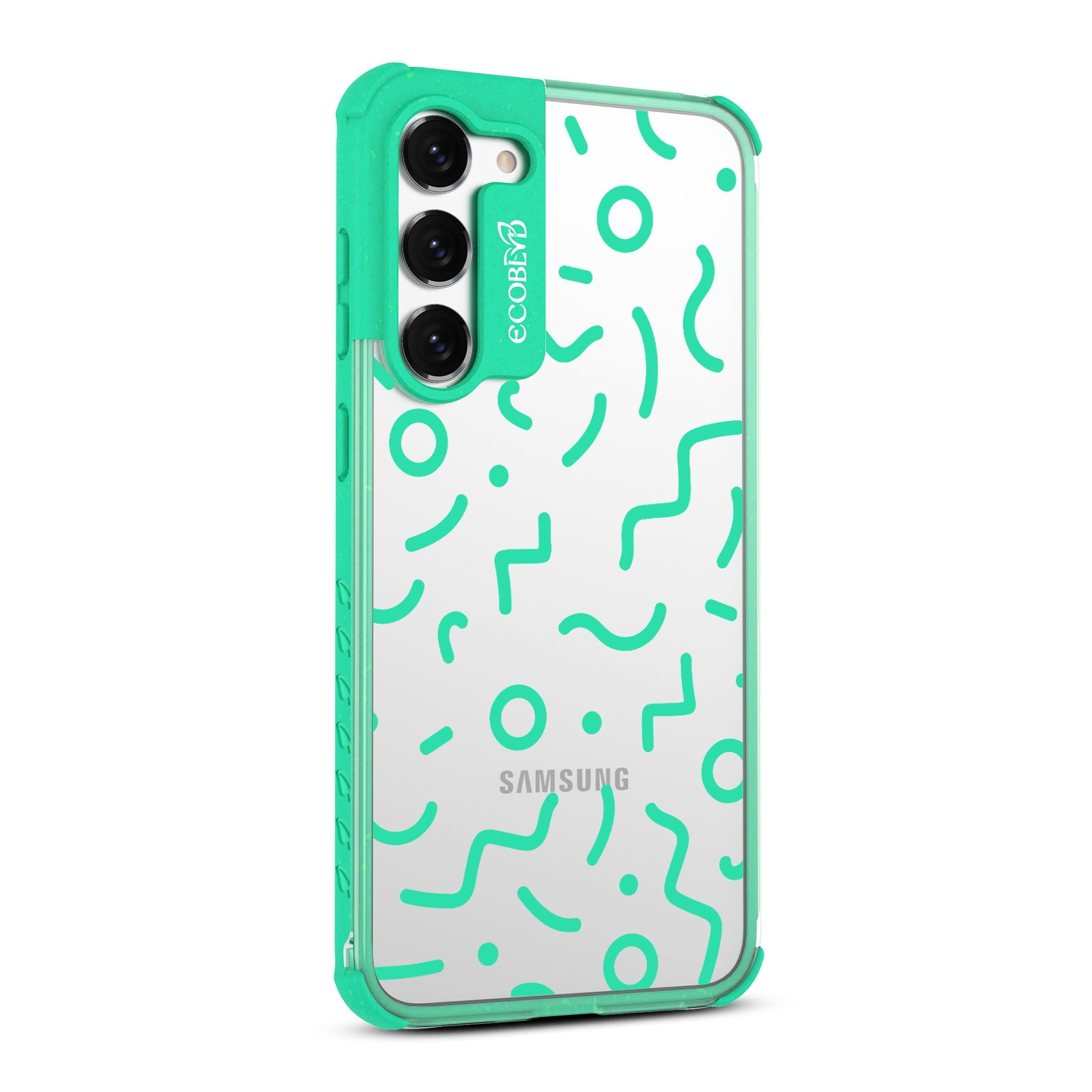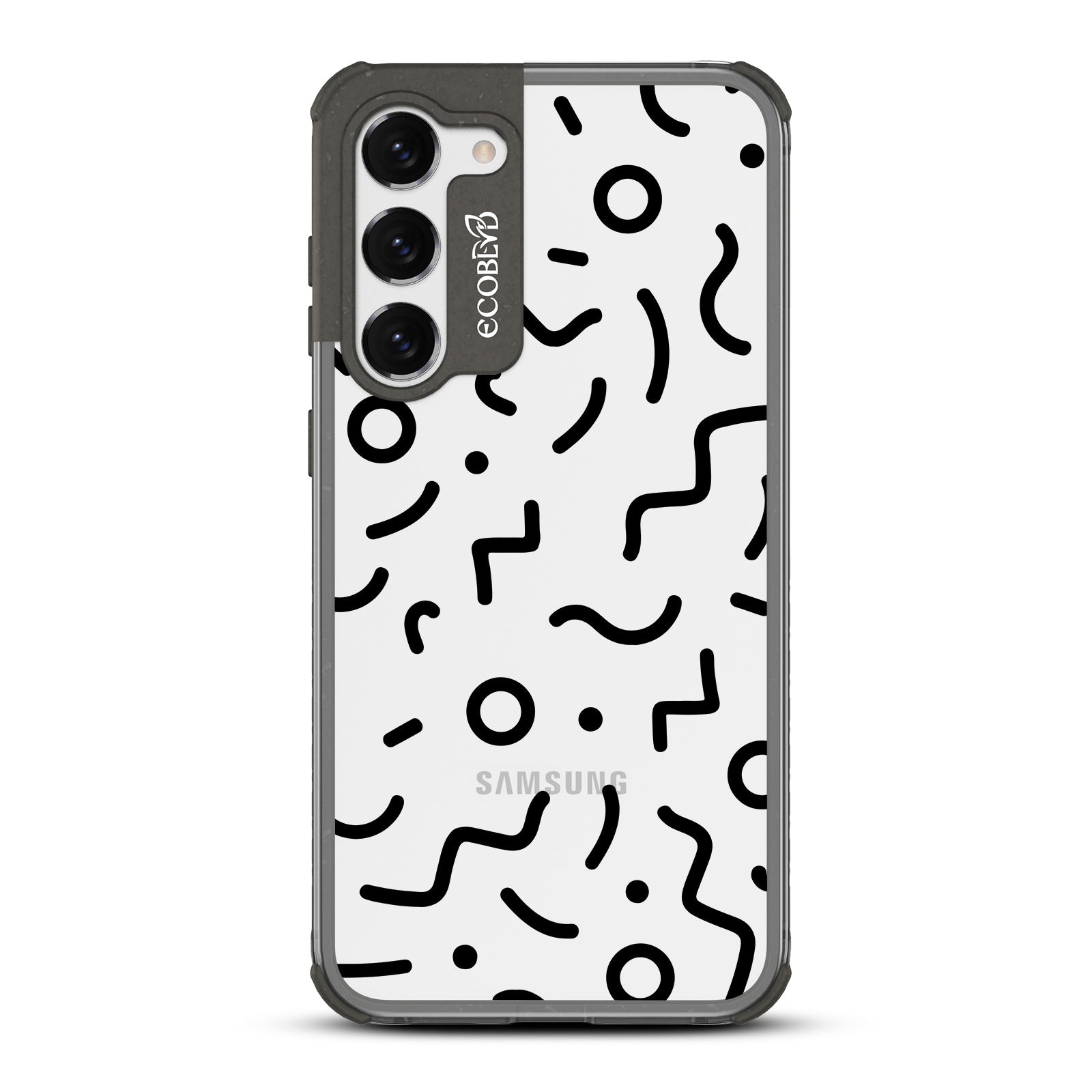 Experience a nostalgic blast from the past with the Laguna clear Galaxy S23 case - with a 90's-themed phone case design that offers style and protection while supporting ocean conservation efforts. The 90's Kids design features bold, wavy, and squiggly lines and circles in five vibrant colors: Midnight Black, Cascade Blue, Foliage Green, Illuminating Yellow, and Wildflower Pink.