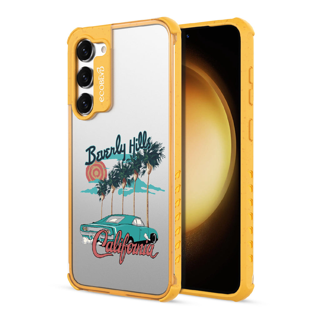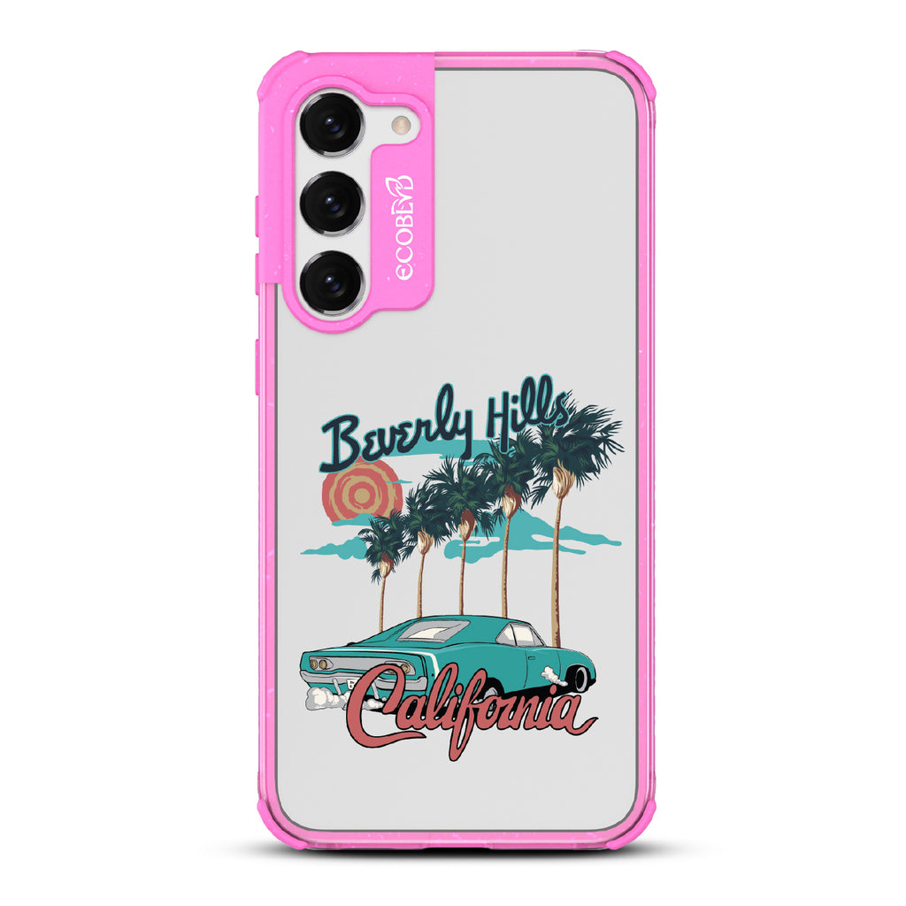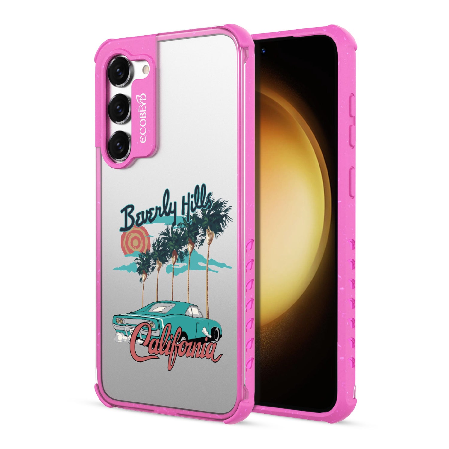 Get ready to roll down the streets of Beverly Hills in style with our 90210 design on our Laguna clear Galaxy S23 case, where palm trees high-five and classic cars strut their stuff like they own the road. Your phone becomes the ultimate VIP pass to the land of glitz and glamor, where even the pigeons wear sunglasses. So, buckle up, and let's make your phone as star-studded as a Hollywood premiere.