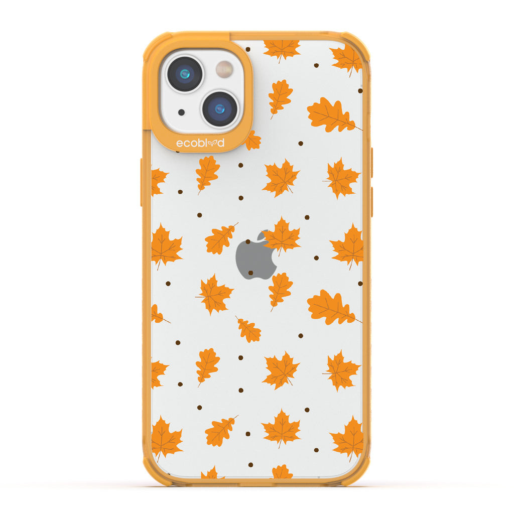 A New Leaf design on our Laguna clear iPhone 14 Plus case synchronizes your phone with the shifting seasons, capturing the essence of transformation from vibrant green to crisp autumn colors. Just as the leaves evolve, your phone mirrors the beauty of change.