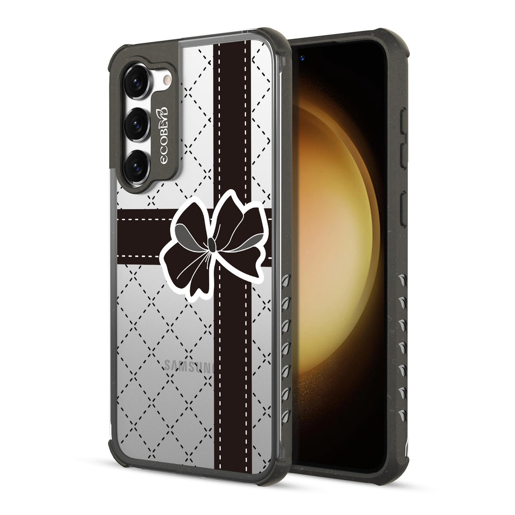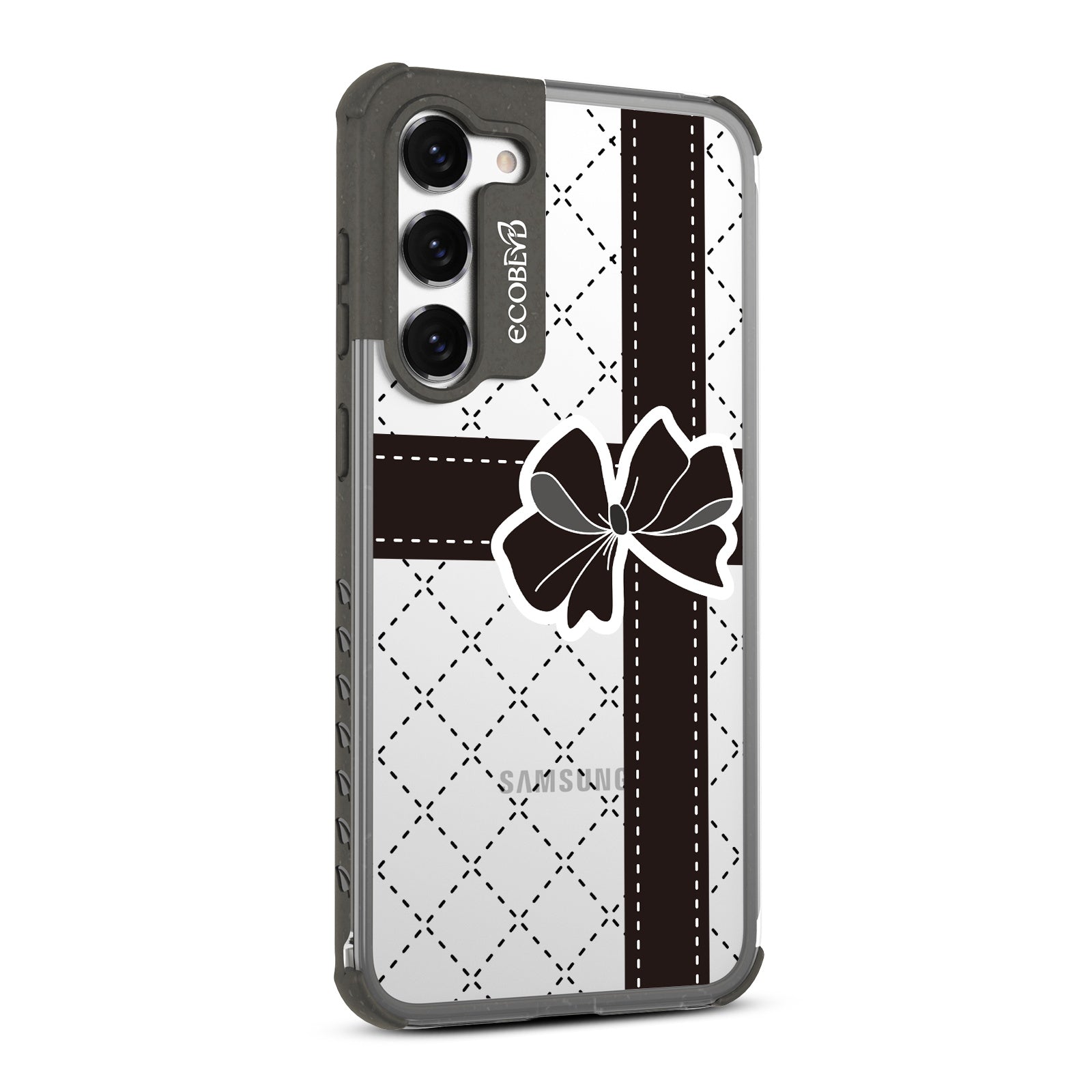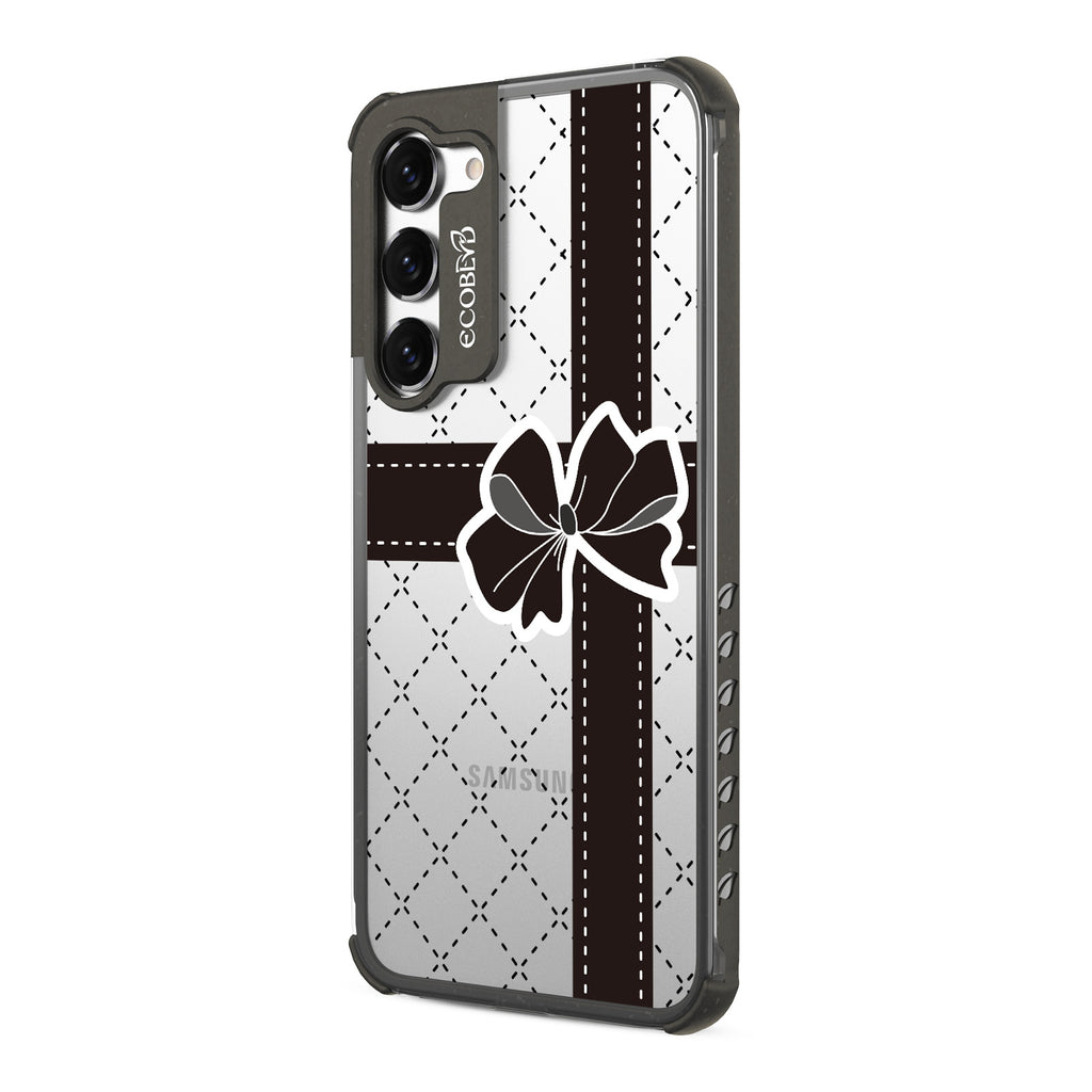 The All Wrapped Up phone design on our Laguna clear Galaxy S23 case is a gift for your phone that keeps on giving; with its sophisticated argyle print and classic black ribbon and bow, it's a present that will never go out of style on a Midnight Black colorway.