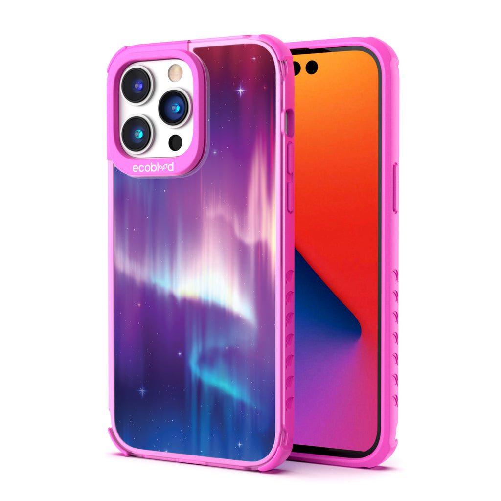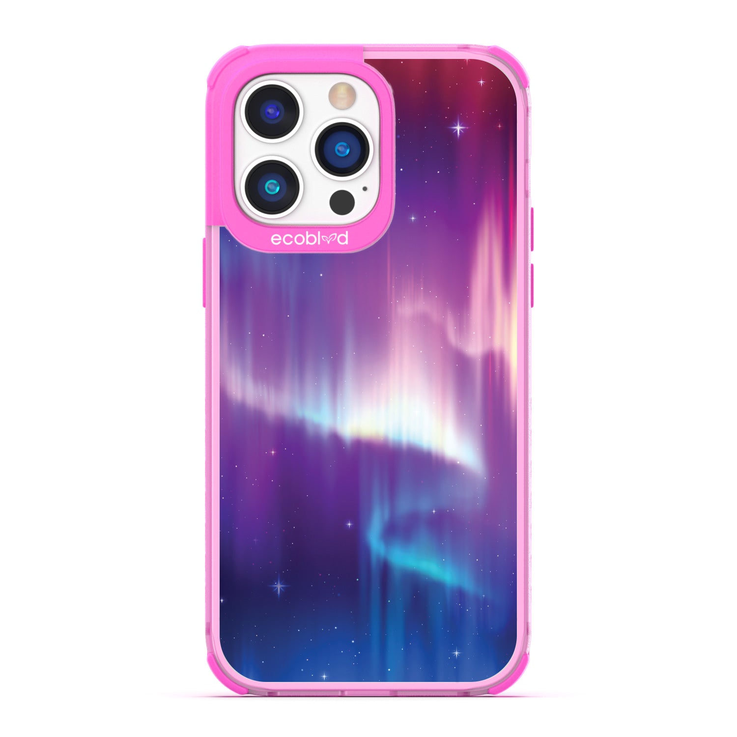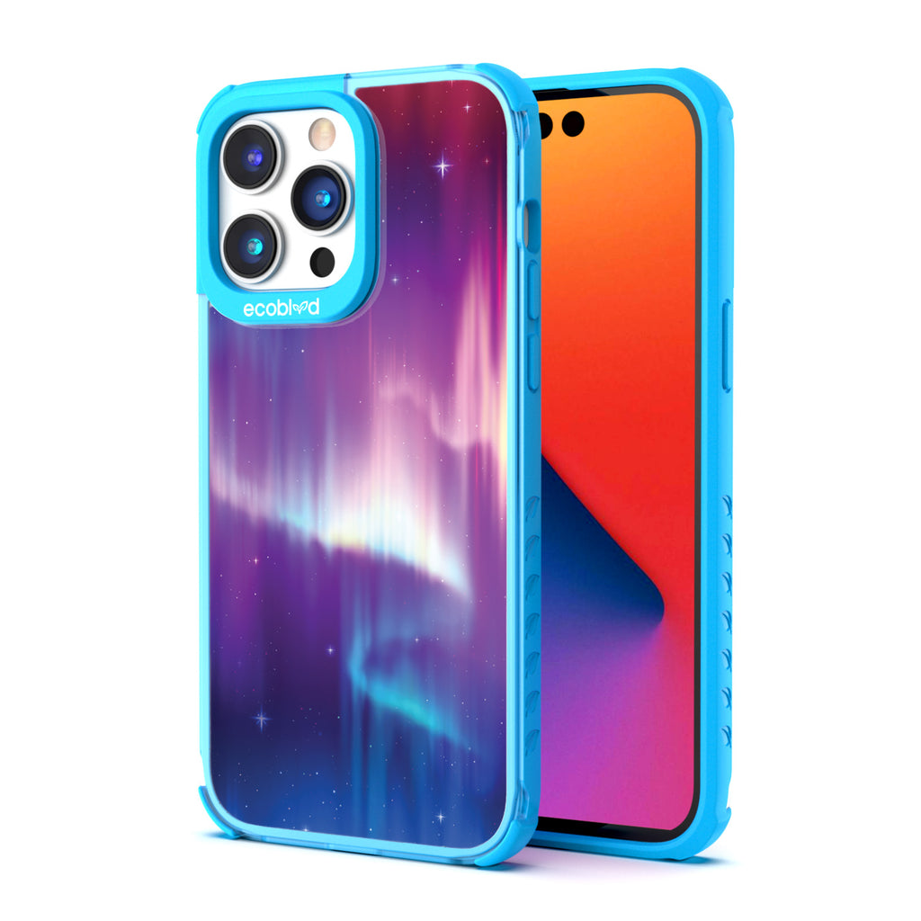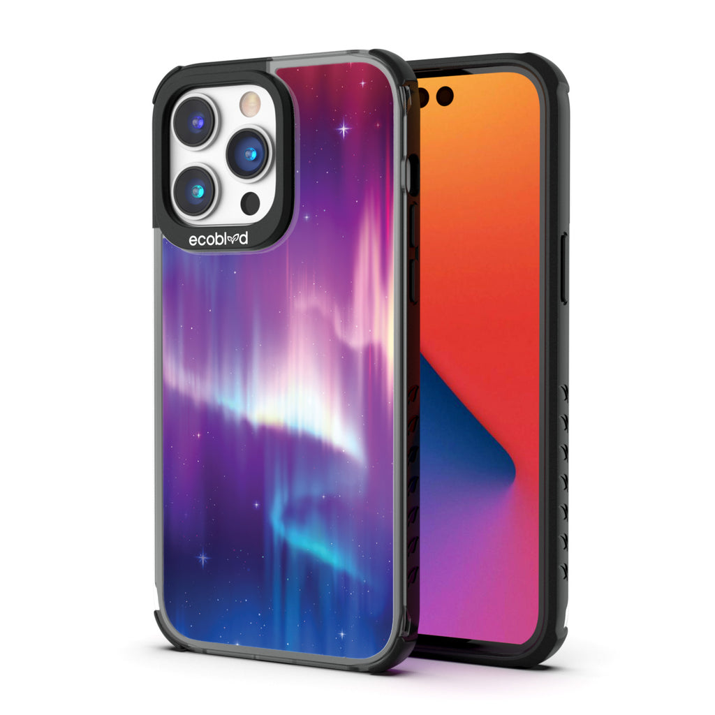You don't need to travel far to see the Northern Lights; in fact, you can have the Aurora Borealis design on our Laguna clear compostable iPhone 14 Pro Max case , so you can see them whenever you want and on three breathtaking colorways: Midnight Black, Cascade Blue, and Wildflower Pink.