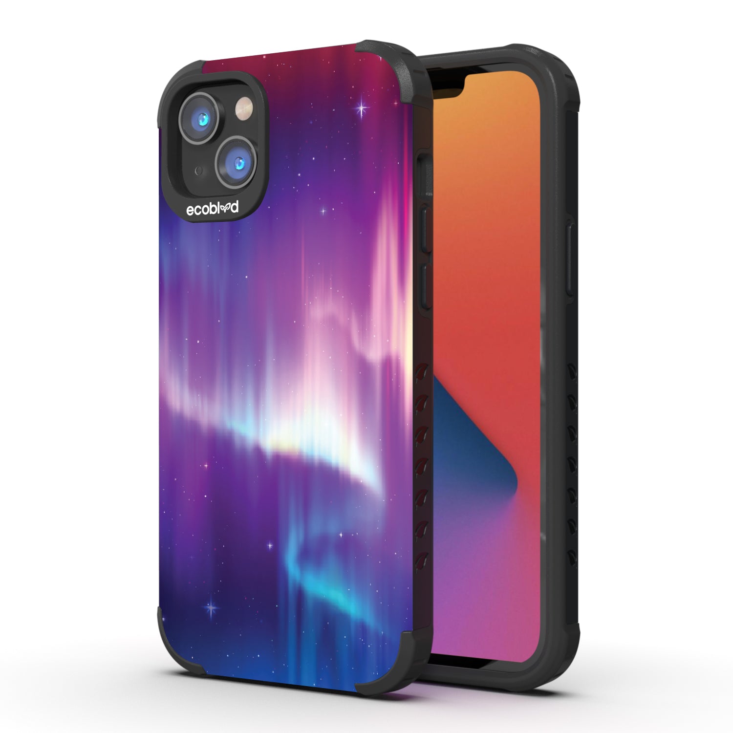 You don't need to travel far to see the Northern Lights; in fact, you can have the Aurora Borealis design on our Mojave rugged and compostable iPhone 14 Plus case, so you can see them whenever you want. Available on our bold Midnight Black colorway.