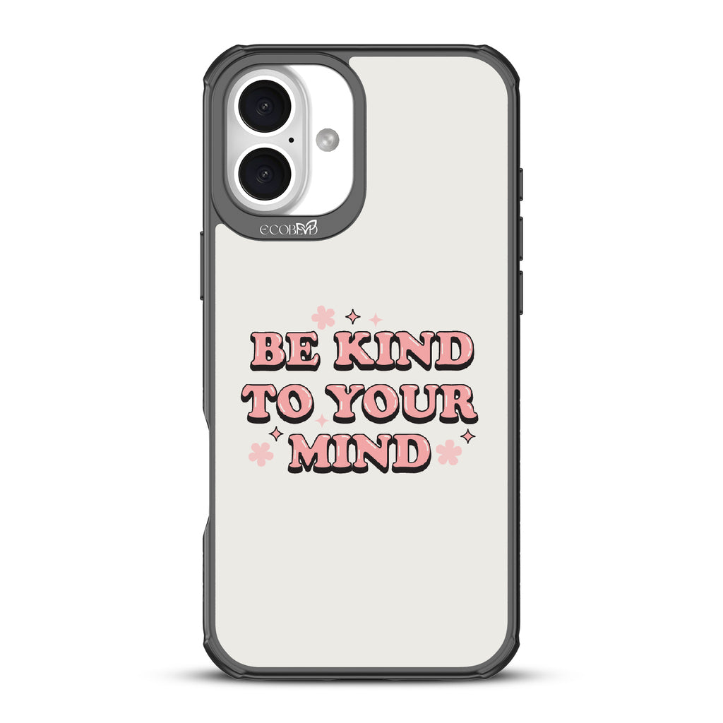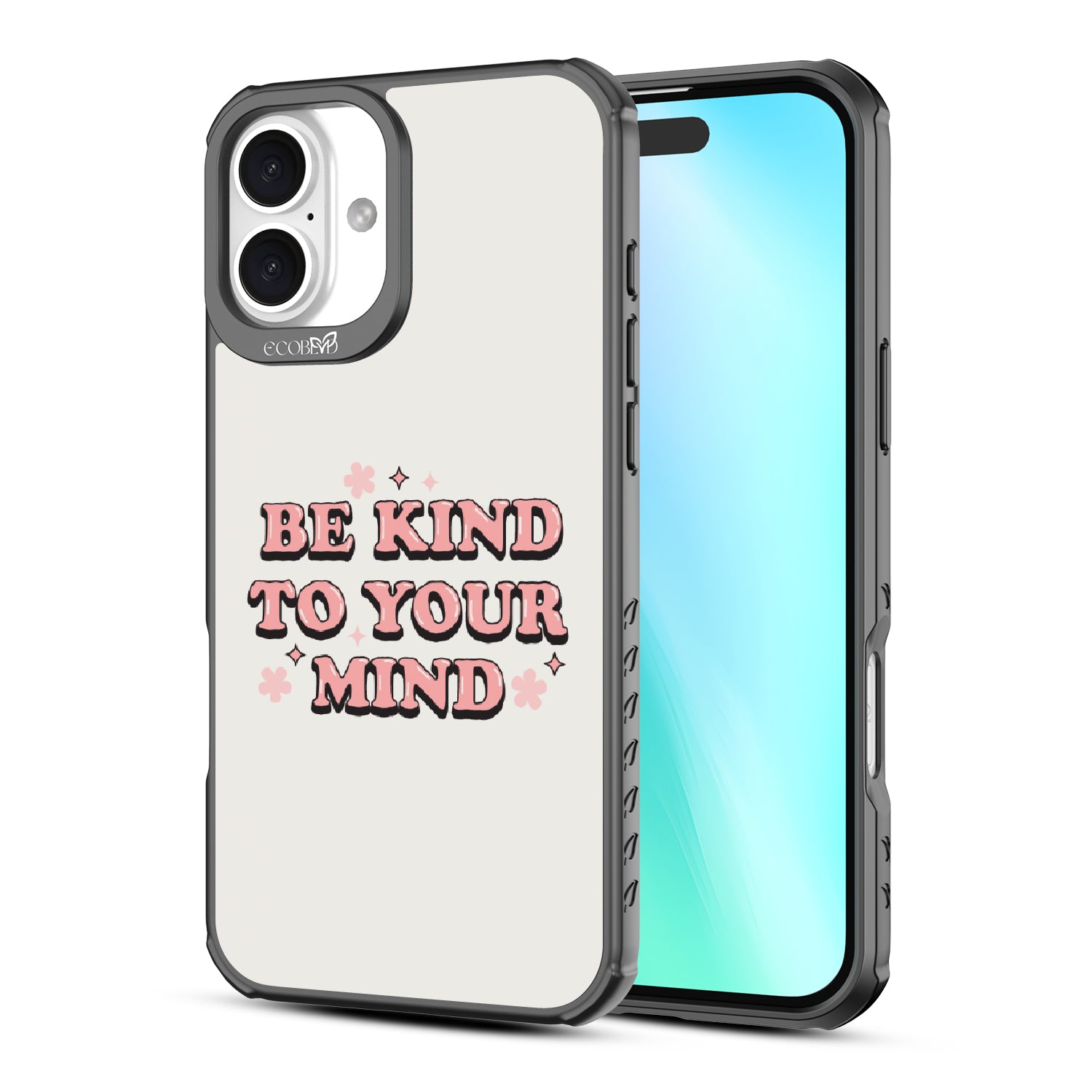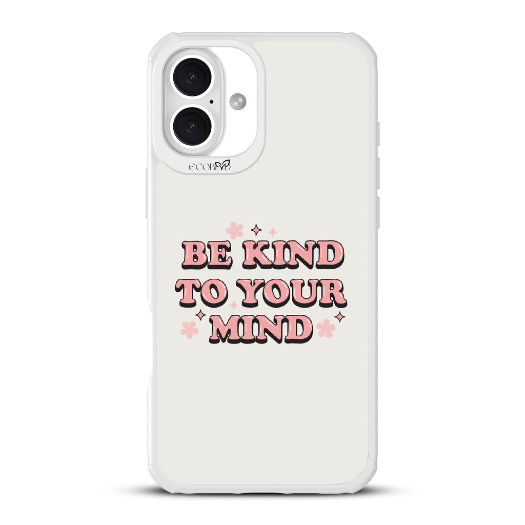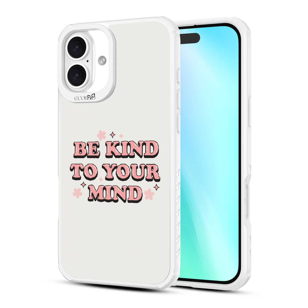 Unwind and nurture your mind with the motivational Be Kind To Your Mind design on our Revive clear iPhone 16 Plus phone case. This design is an active participant in your journey toward self-kindness, helping you foster a positive and nurturing connection with your mind. You can use each interaction as an opportunity to be kind to yourself.
