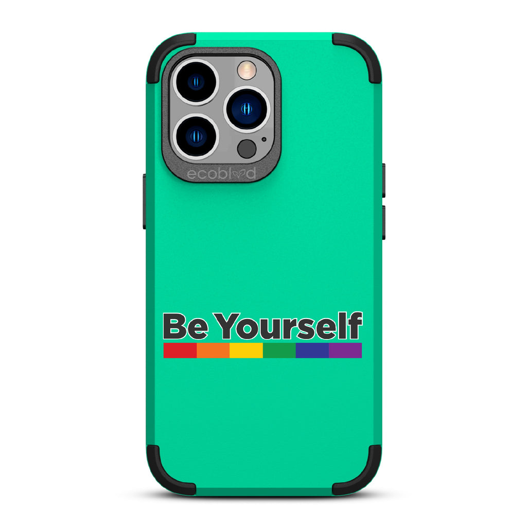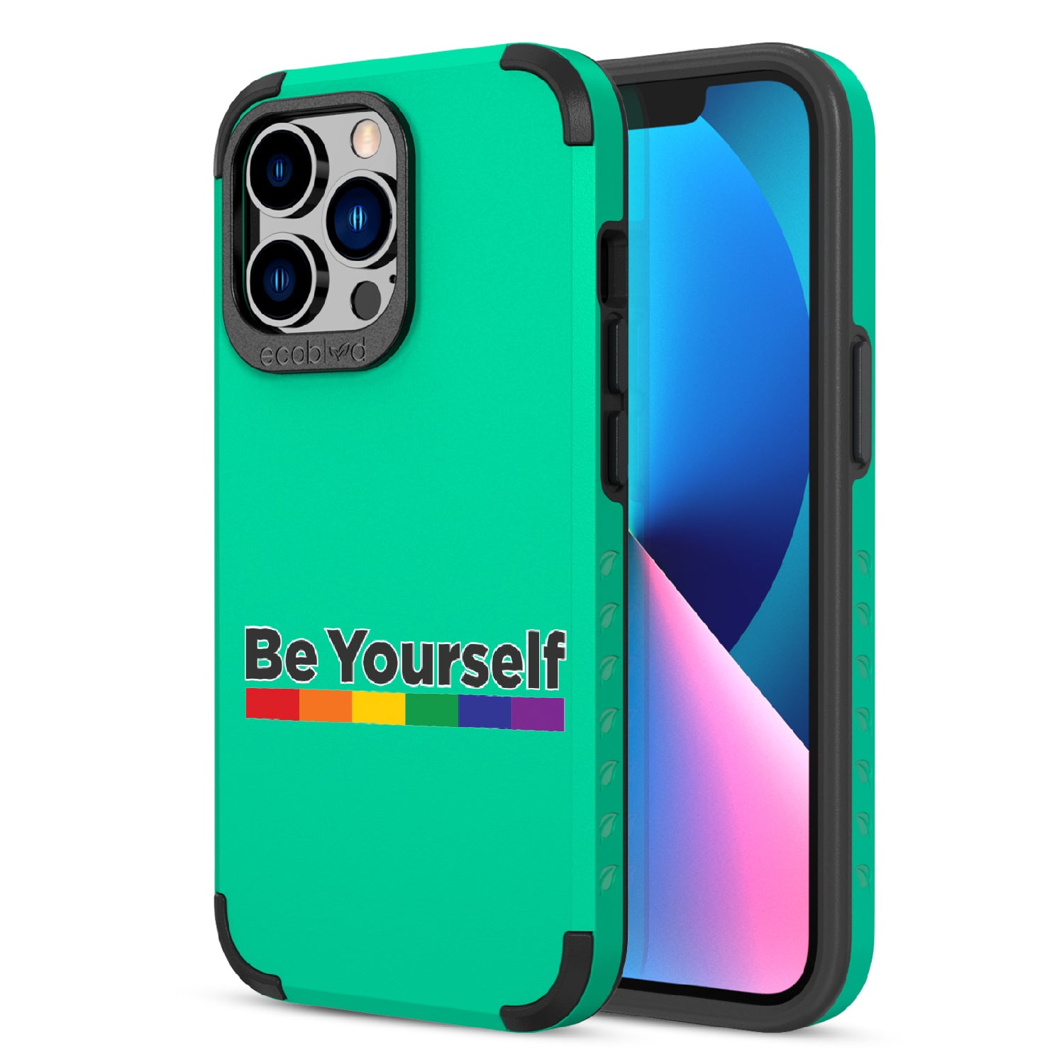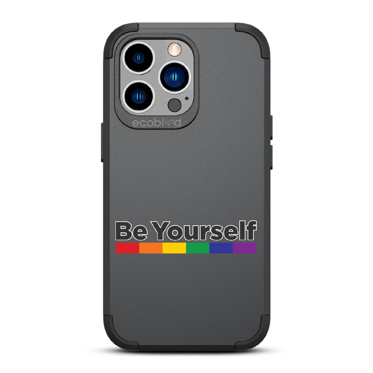 Embrace the power of self-expression with the captivating Be Yourself design on our Mojave rugged and compostable iPhone 13 Pro case, as the empowering message harmonizes with a vibrant rainbow spectrum bar. This design serves as a reminder that you have the freedom to be unapologetically yourself, breaking societal norms and embracing your true colors. Wear it proudly, igniting conversations and fostering a more inclusive world that celebrates individuality.