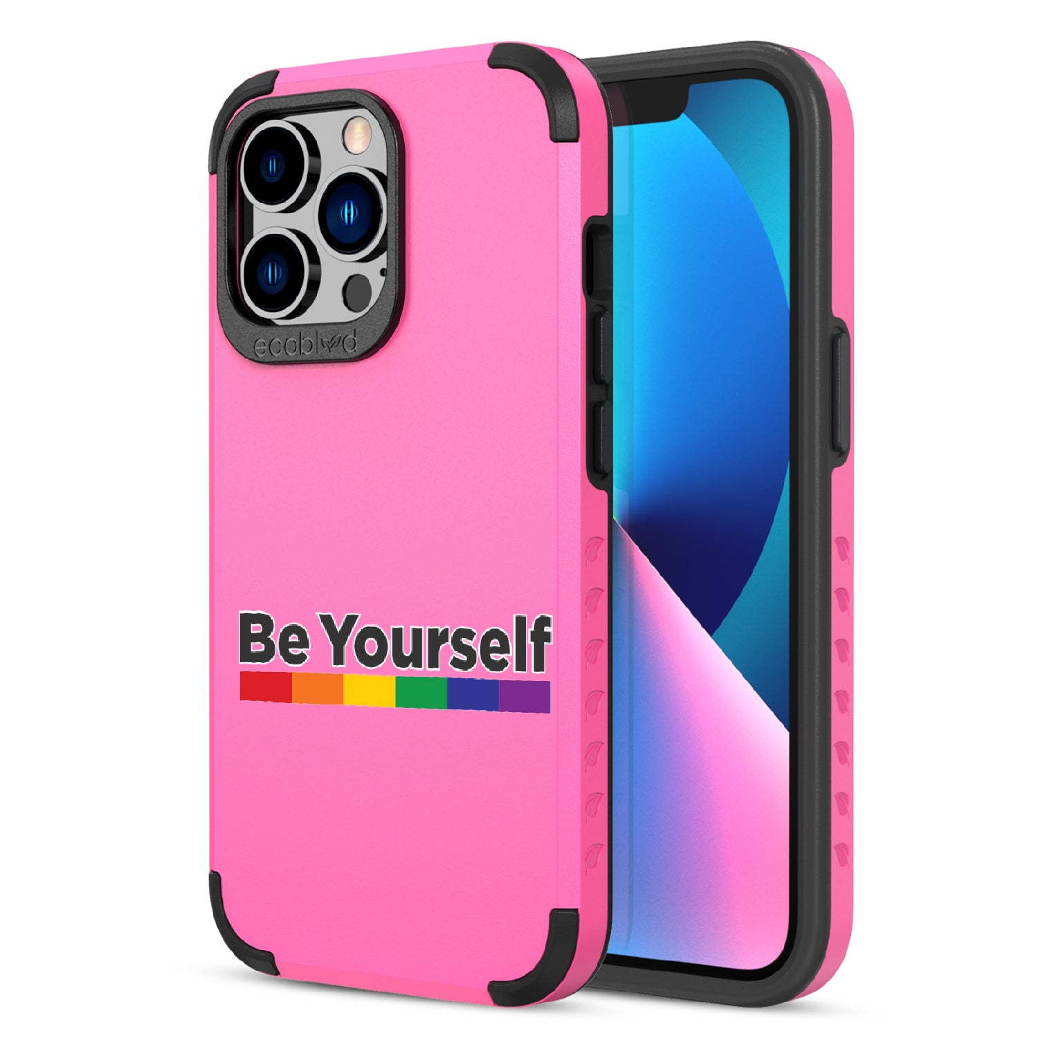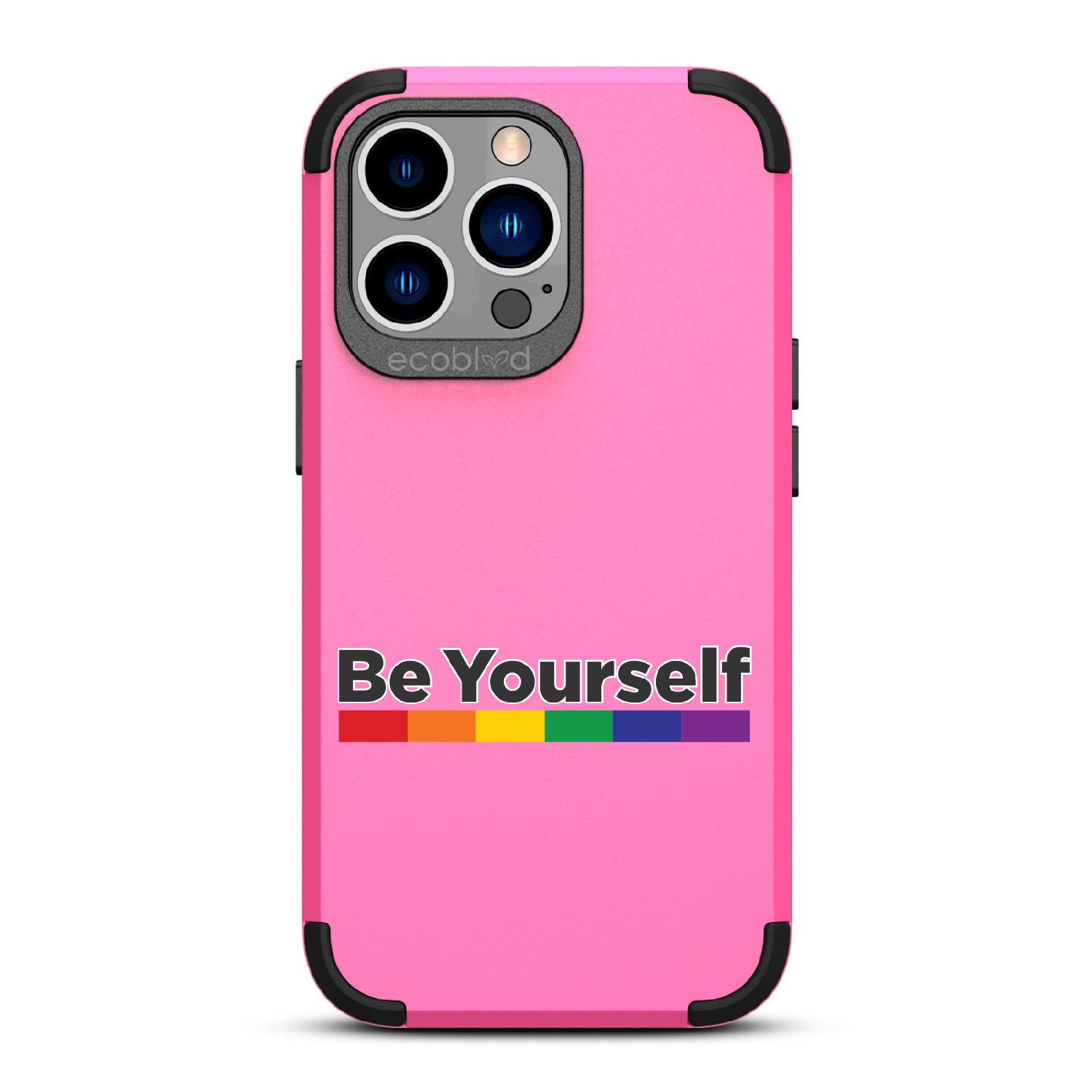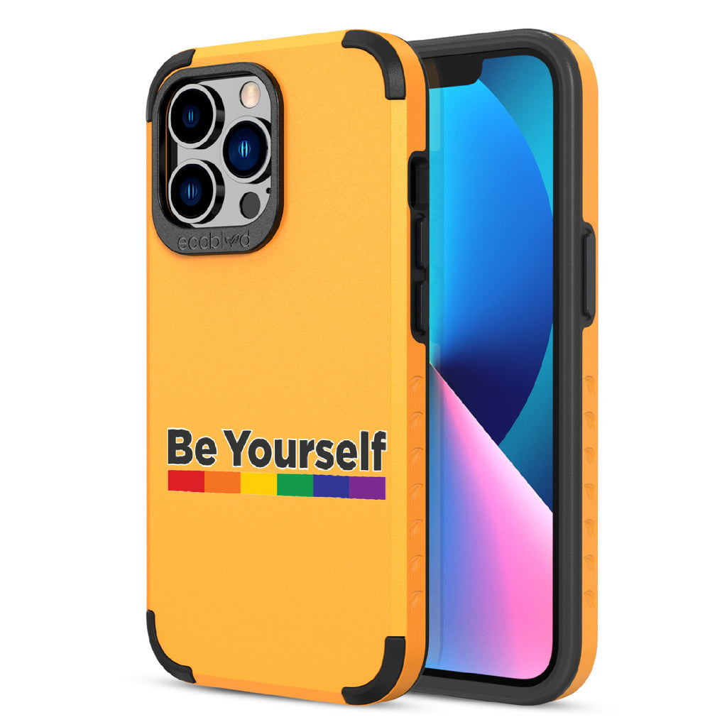 Embrace the power of self-expression with the captivating Be Yourself design on our Mojave rugged and compostable iPhone 13 Pro case, as the empowering message harmonizes with a vibrant rainbow spectrum bar. This design serves as a reminder that you have the freedom to be unapologetically yourself, breaking societal norms and embracing your true colors. Wear it proudly, igniting conversations and fostering a more inclusive world that celebrates individuality.