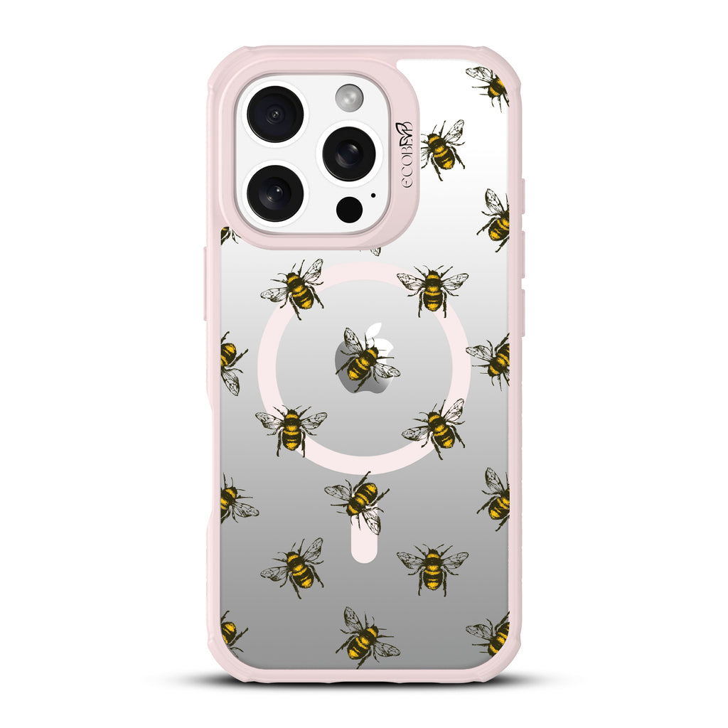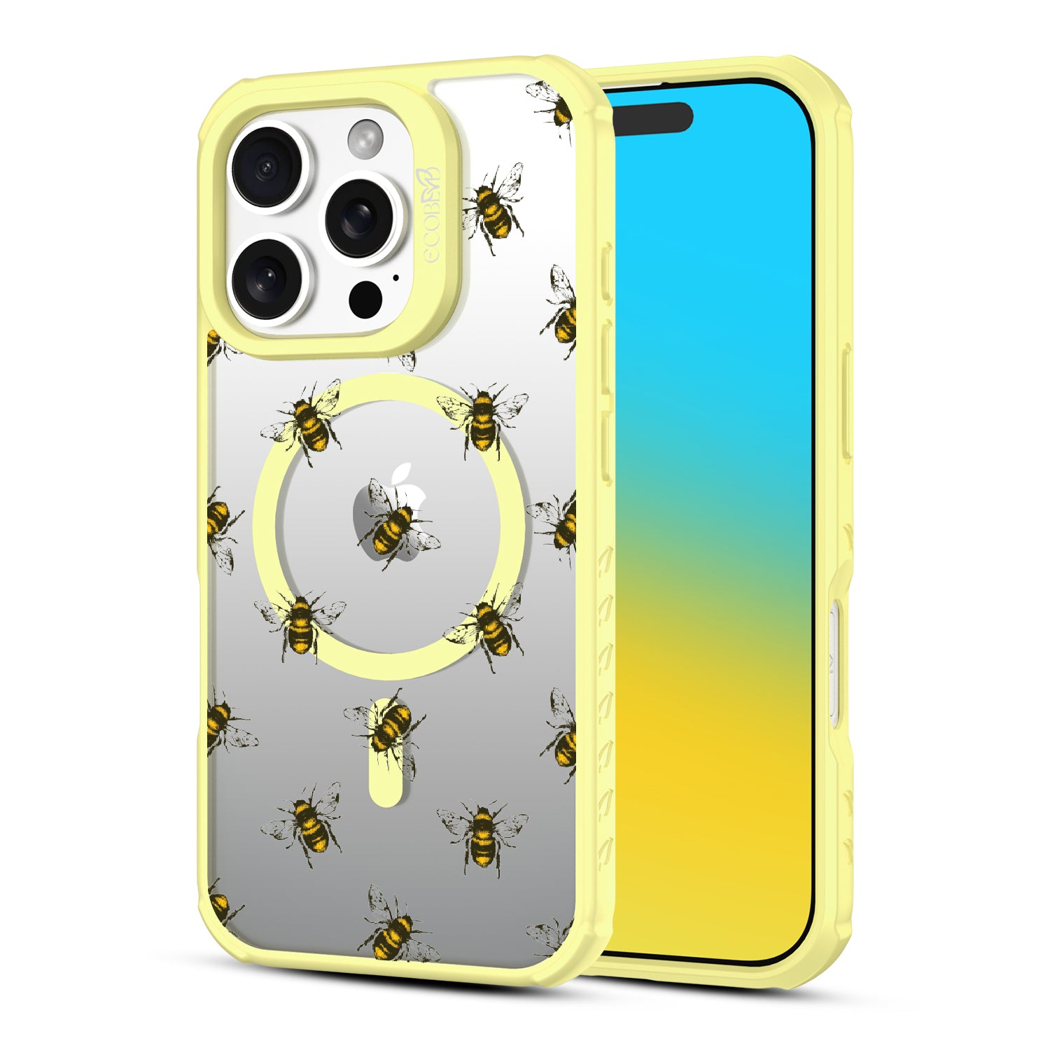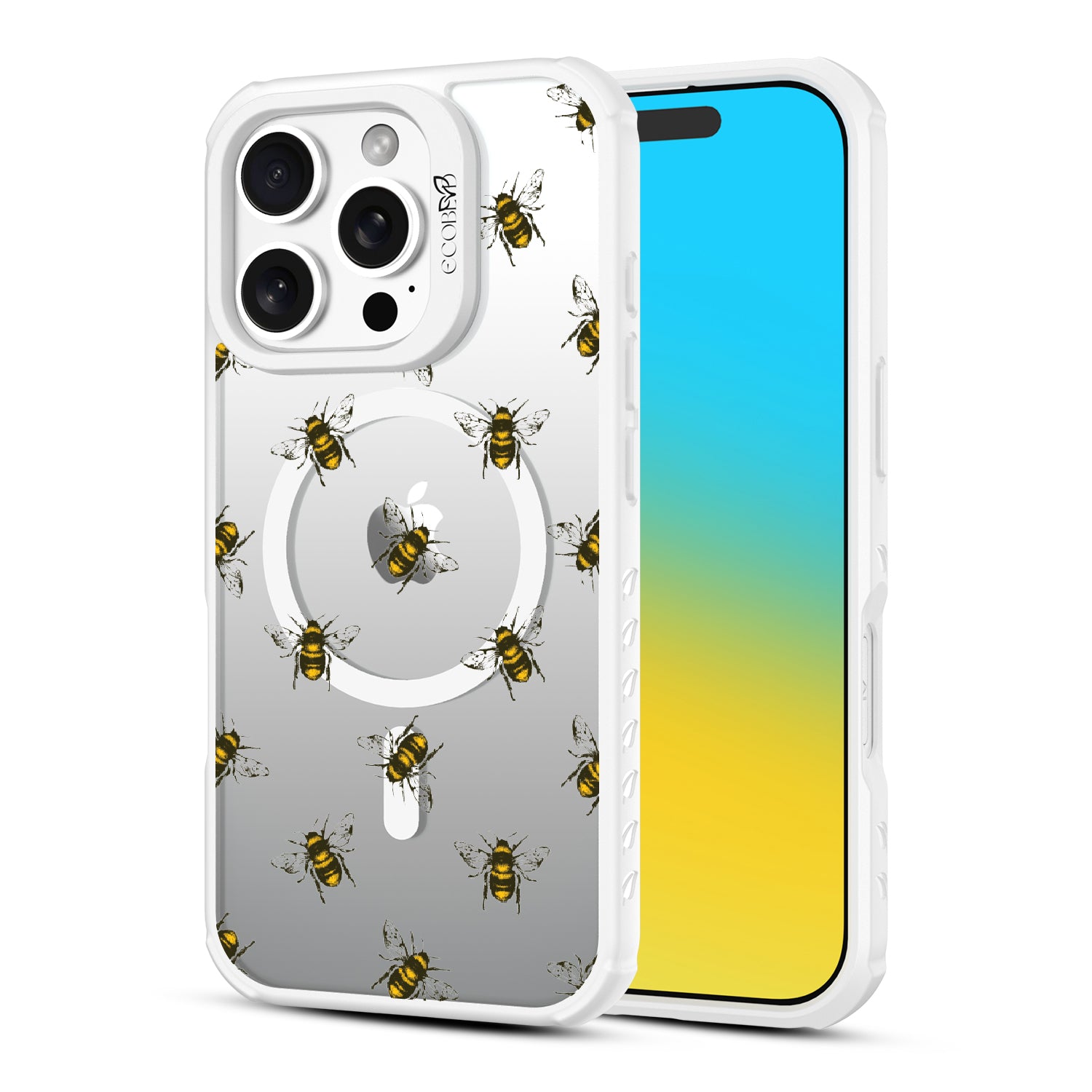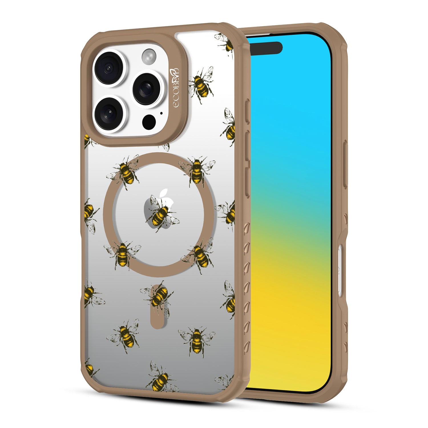 Give your phone and style a new reason to buzz, as the Bees design on our Revive clear iPhone 16 Pro phone case features a group of busy honey bees flying around it.