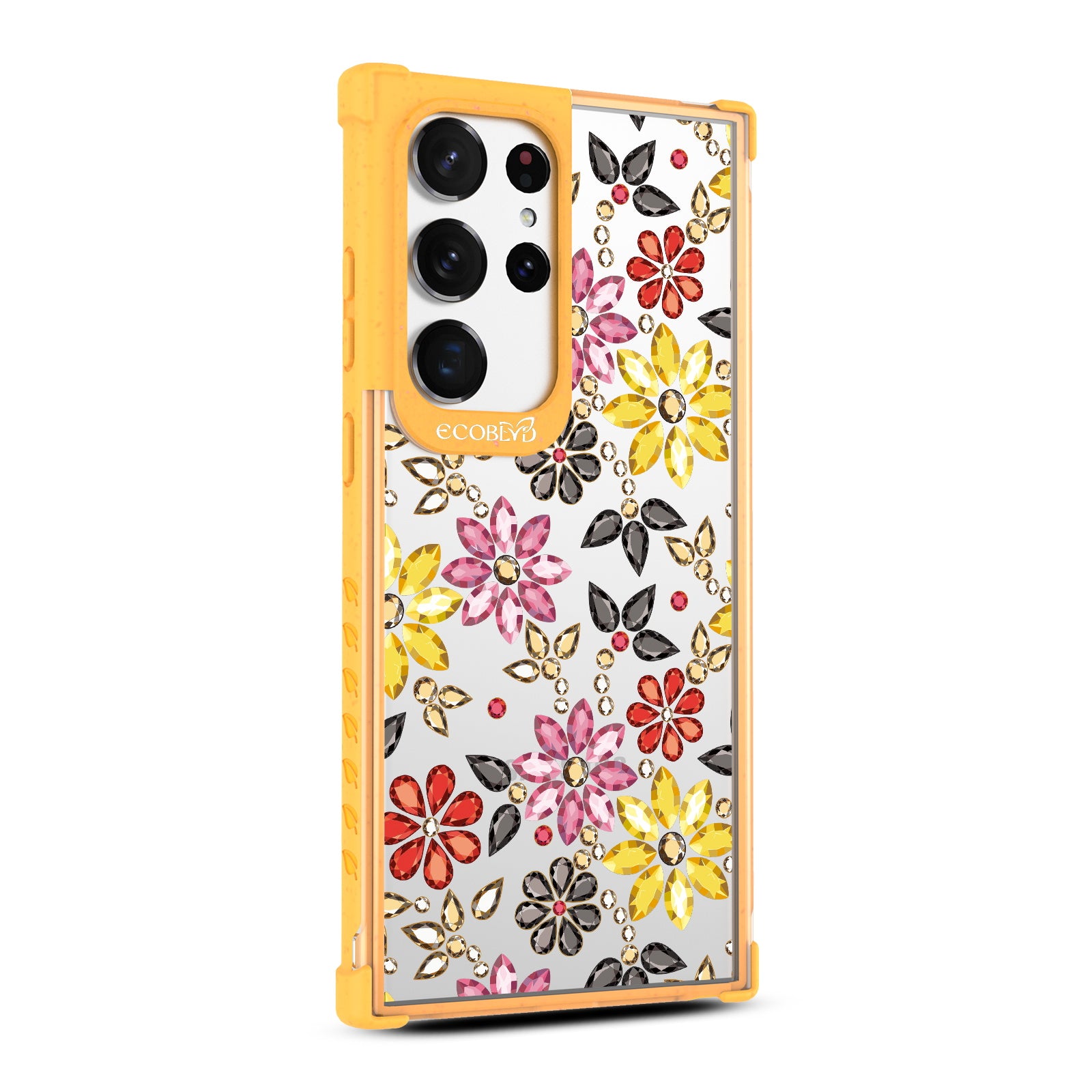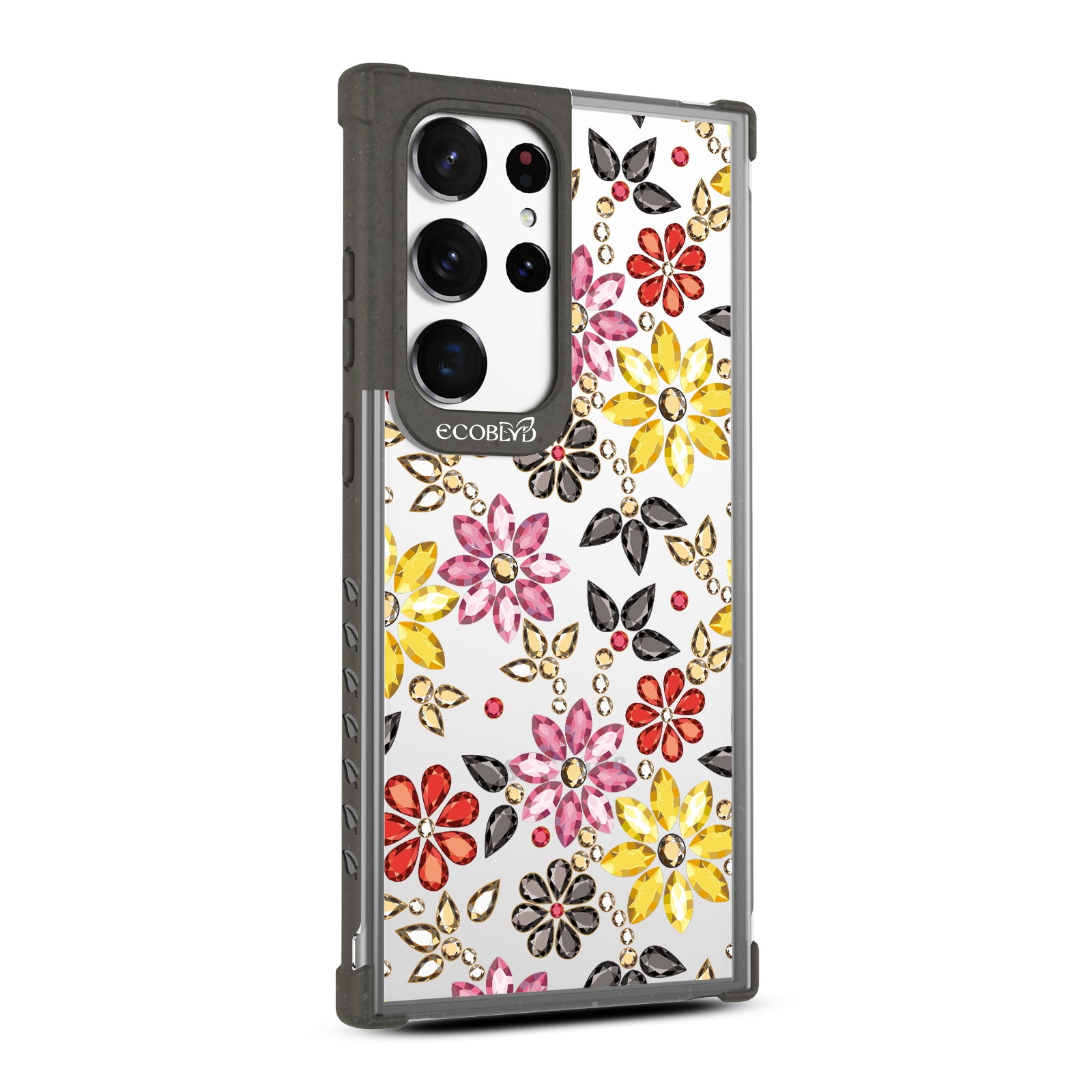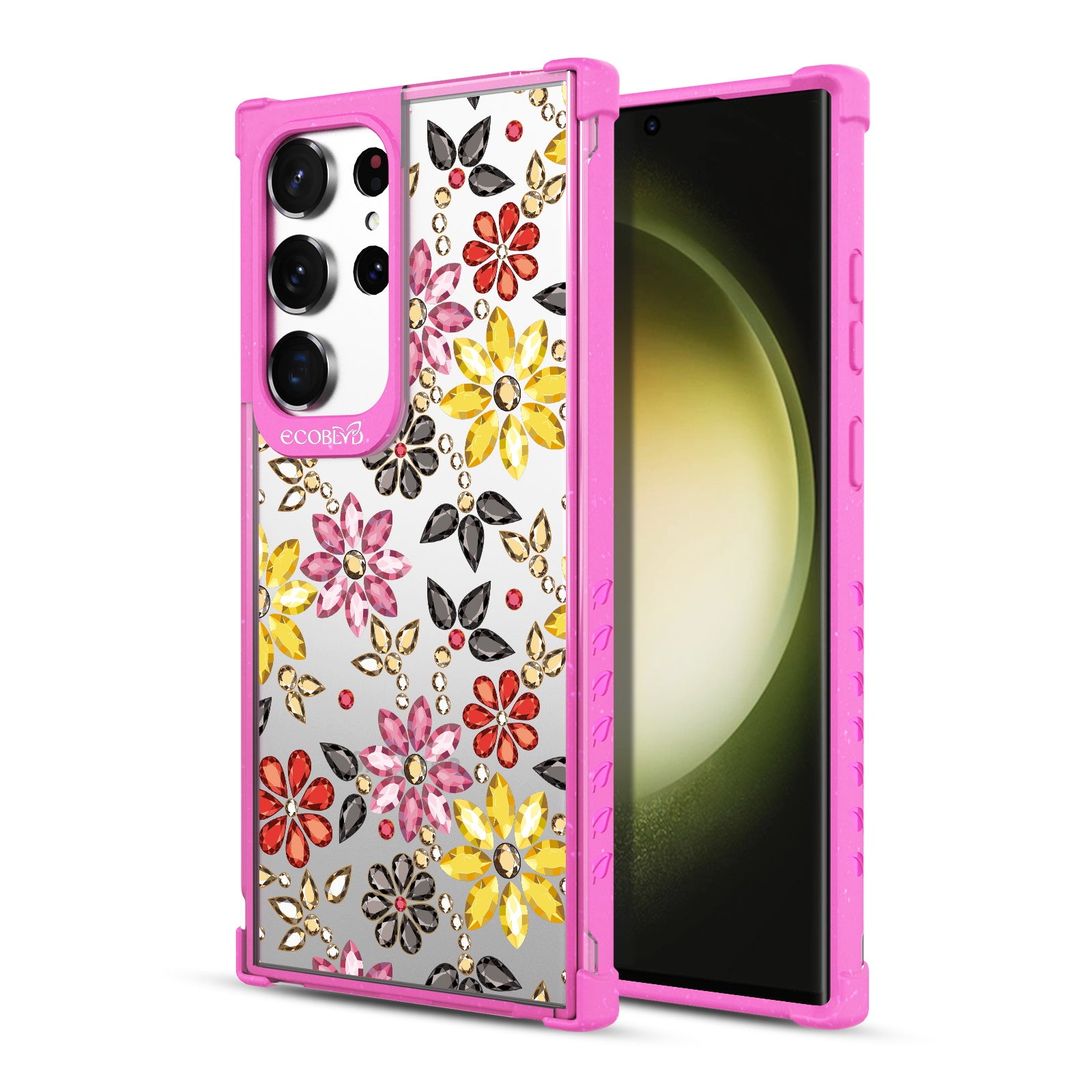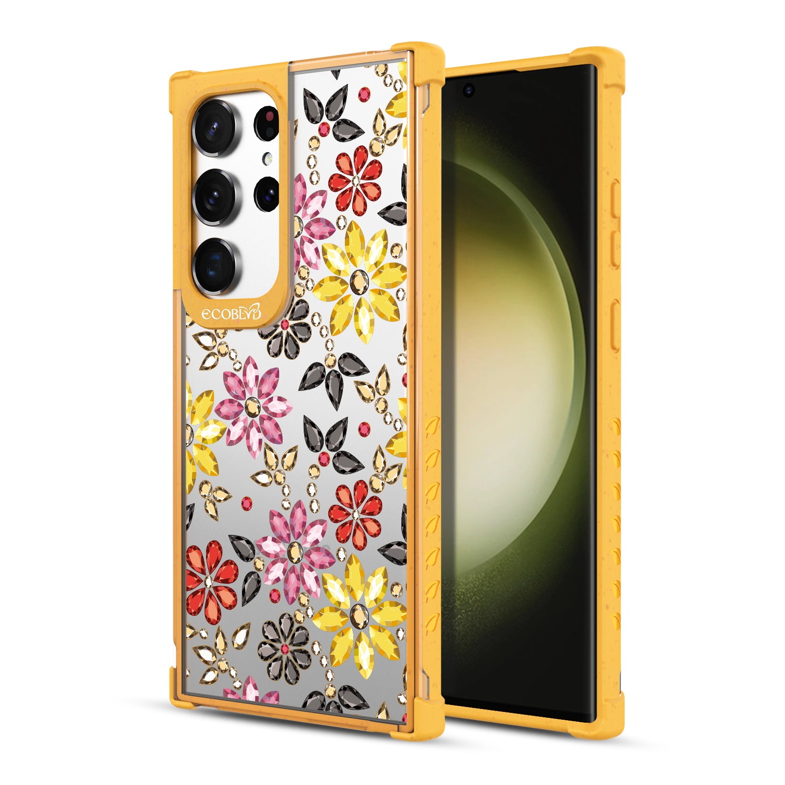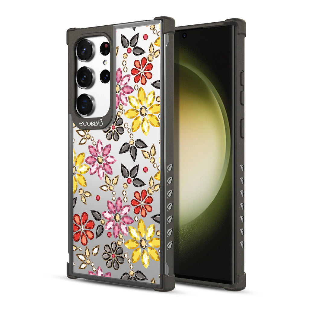 The Bejeweled design on our Laguna clear compostable Galaxy S23 case is a radiant burst of Spring bling, a cheerful display of rhinestone jewels and playful floral patterns that brighten up your day and your phone in three colorways: Midnight Black, Illuminating Yellow, and Wildflower Pink.