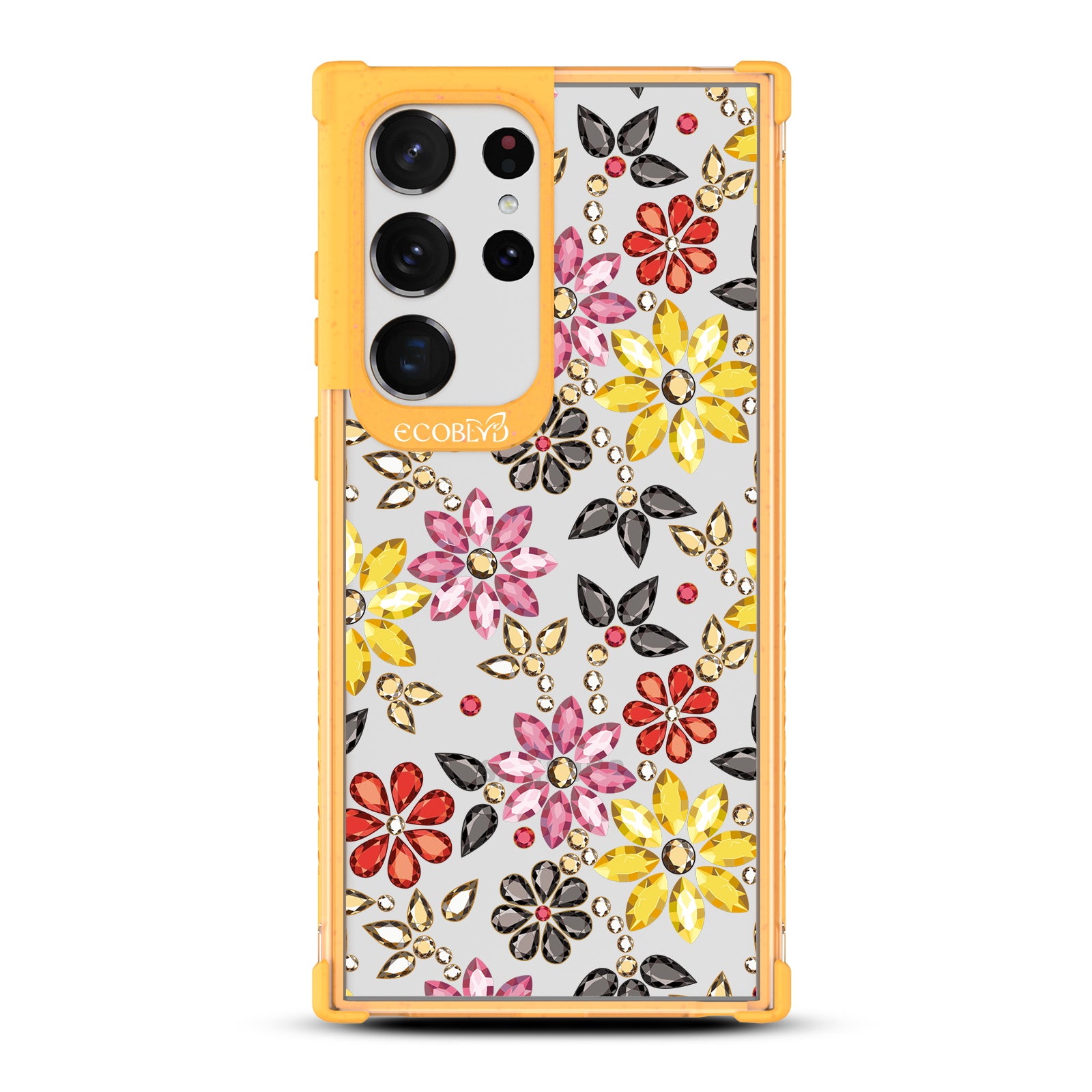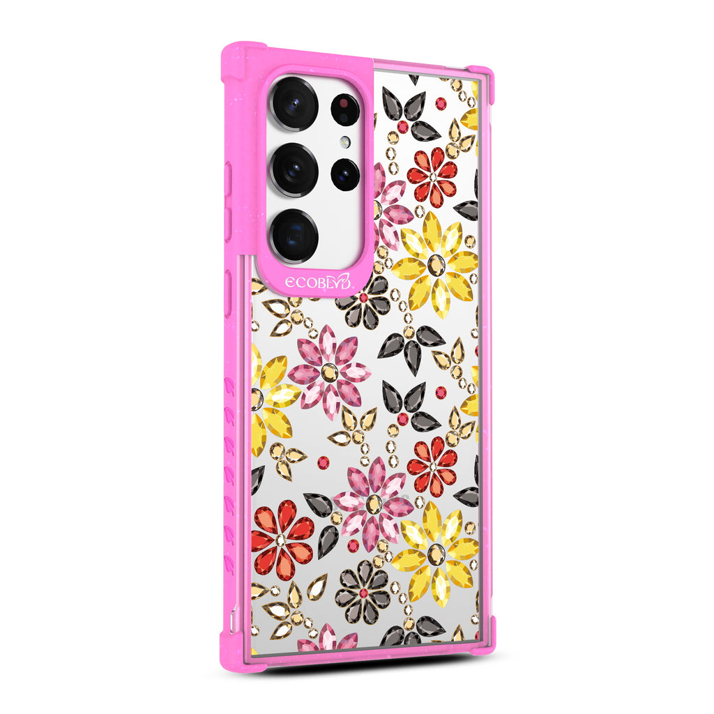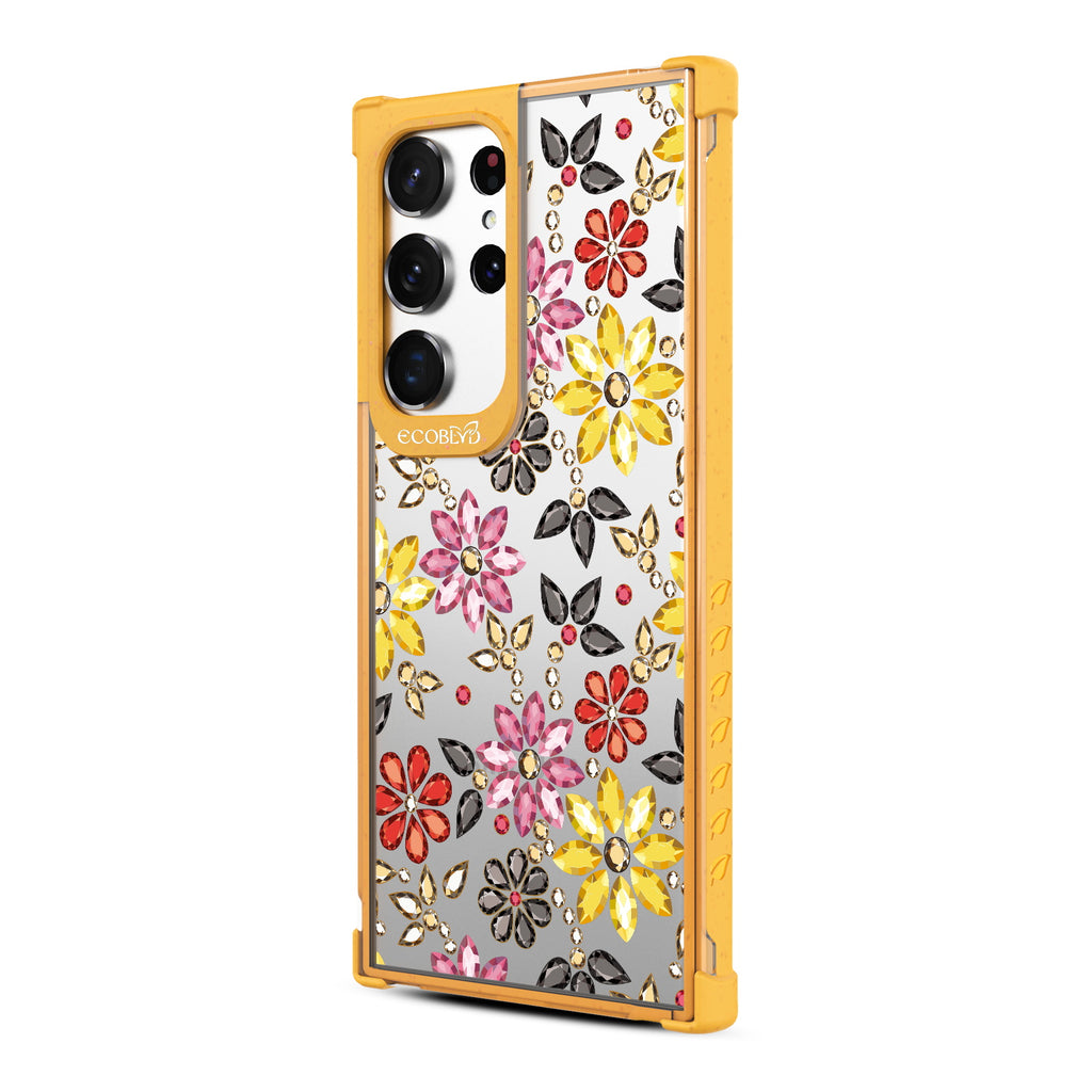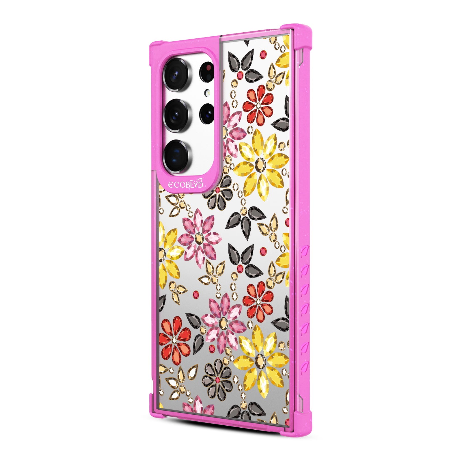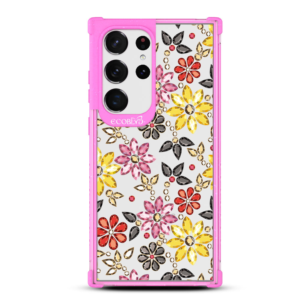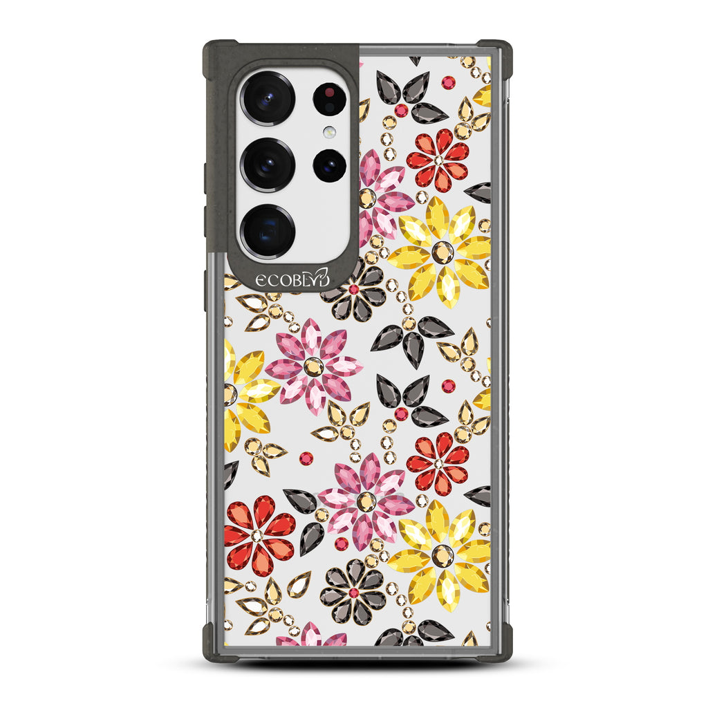 The Bejeweled design on our Laguna clear compostable Galaxy S23 case is a radiant burst of Spring bling, a cheerful display of rhinestone jewels and playful floral patterns that brighten up your day and your phone in three colorways: Midnight Black, Illuminating Yellow, and Wildflower Pink.