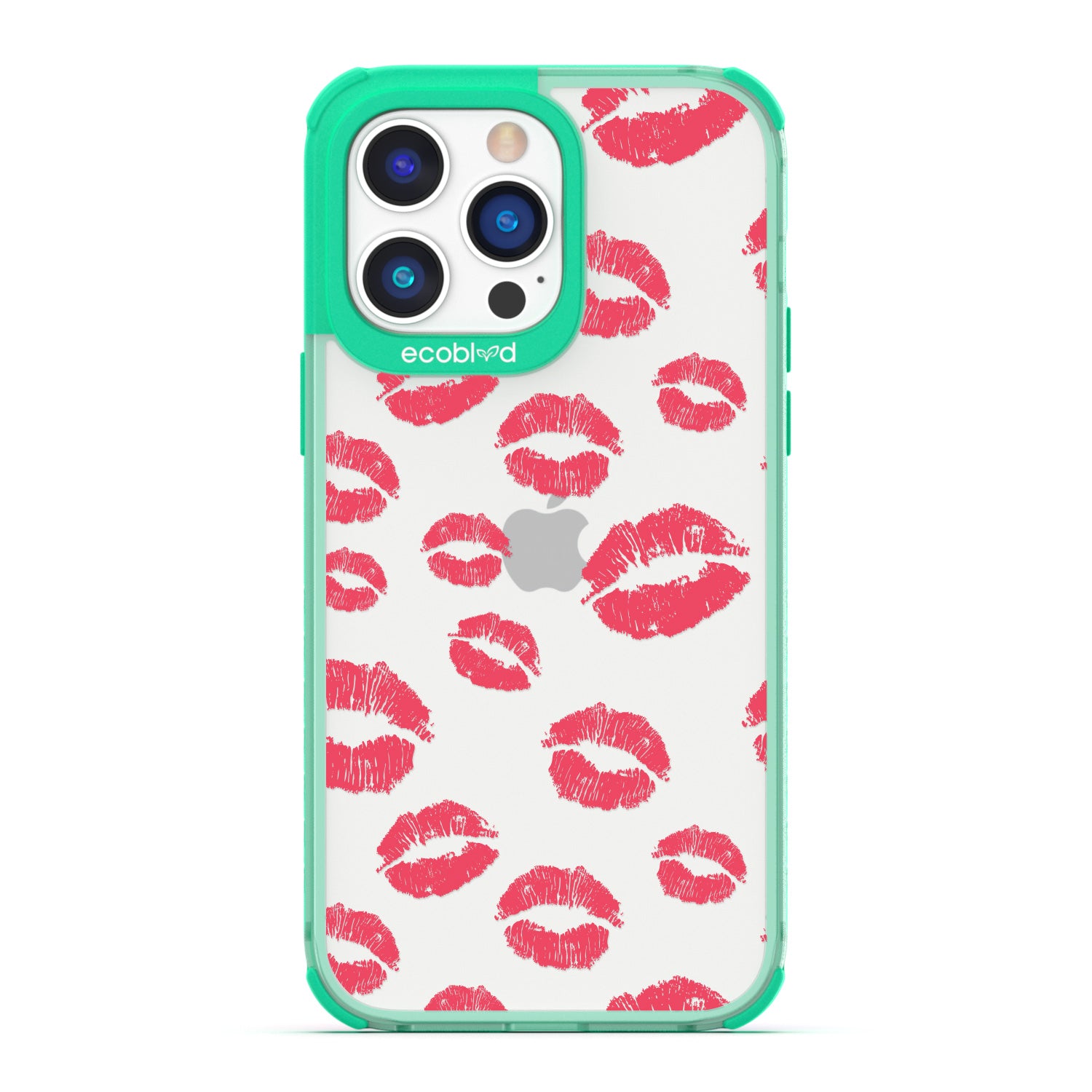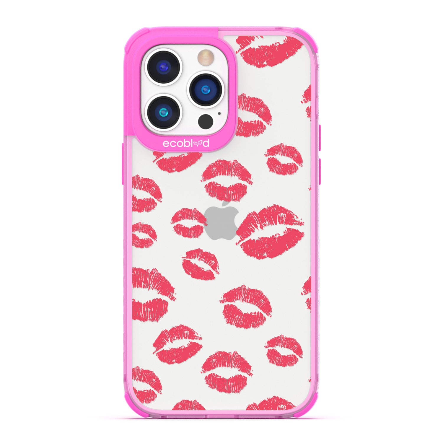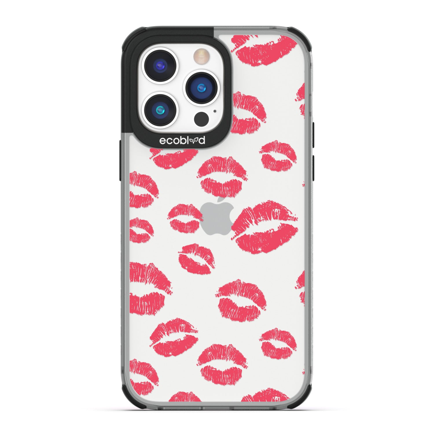 Put on your best flirt with our Bisou design on our Laguna clear compostable iPhone 14 Pro case, featuring an array of playful red lipstick kisses that are sure to make any head turn and a touch of je ne sais quoi to your phone on five fierce colorways: Midnight Black, Cascade Blue, Foliage Green, Illuminating Yellow, and Wildflower Pink.