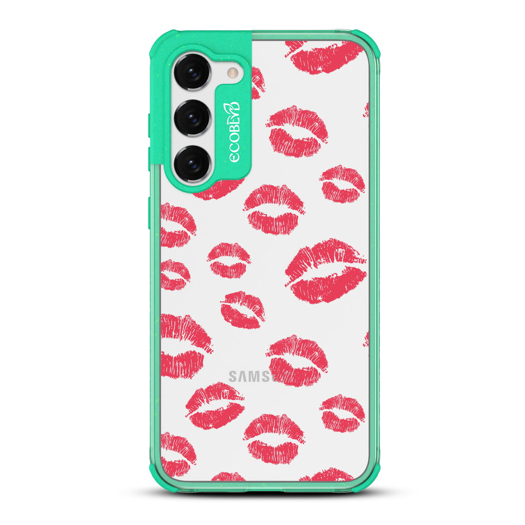 Put on your best flirt with our Bisou design on our Laguna clear compostable Galaxy S23 Plus case, featuring an array of playful red lipstick kisses that are sure to make any head turn and a touch of je ne sais quoi to your phone on five fierce colorways: Midnight Black, Cascade Blue, Foliage Green, Illuminating Yellow, and Wildflower Pink.