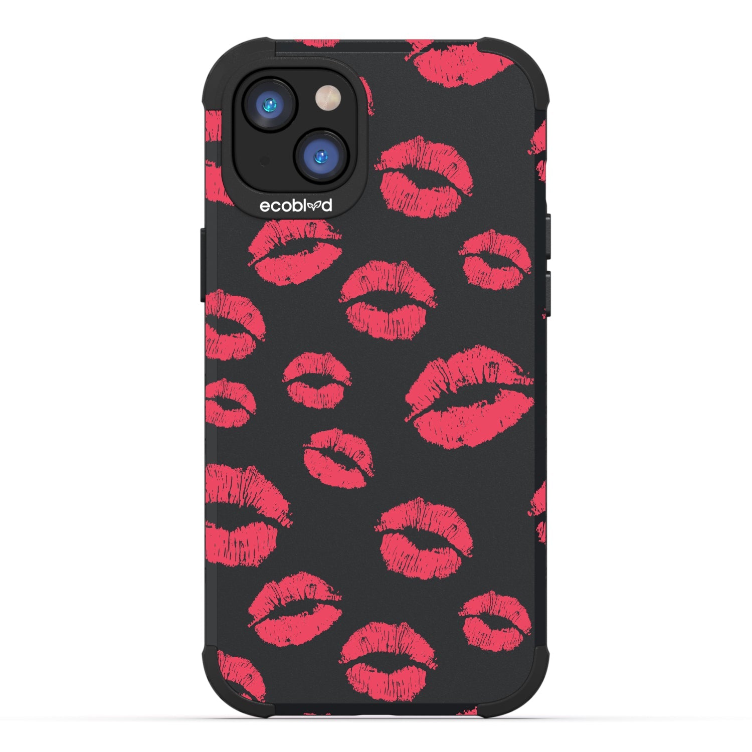 Put on your best flirt with our Bisou design on our Mojave rugged and compostable iPhone 16e, iPhone 14, and iPhone 13 case, featuring an array of playful red lipstick kisses that are sure to make any head turn and a touch of je ne sais quoi to your phone. Available on our bold Midnight Black colorway.