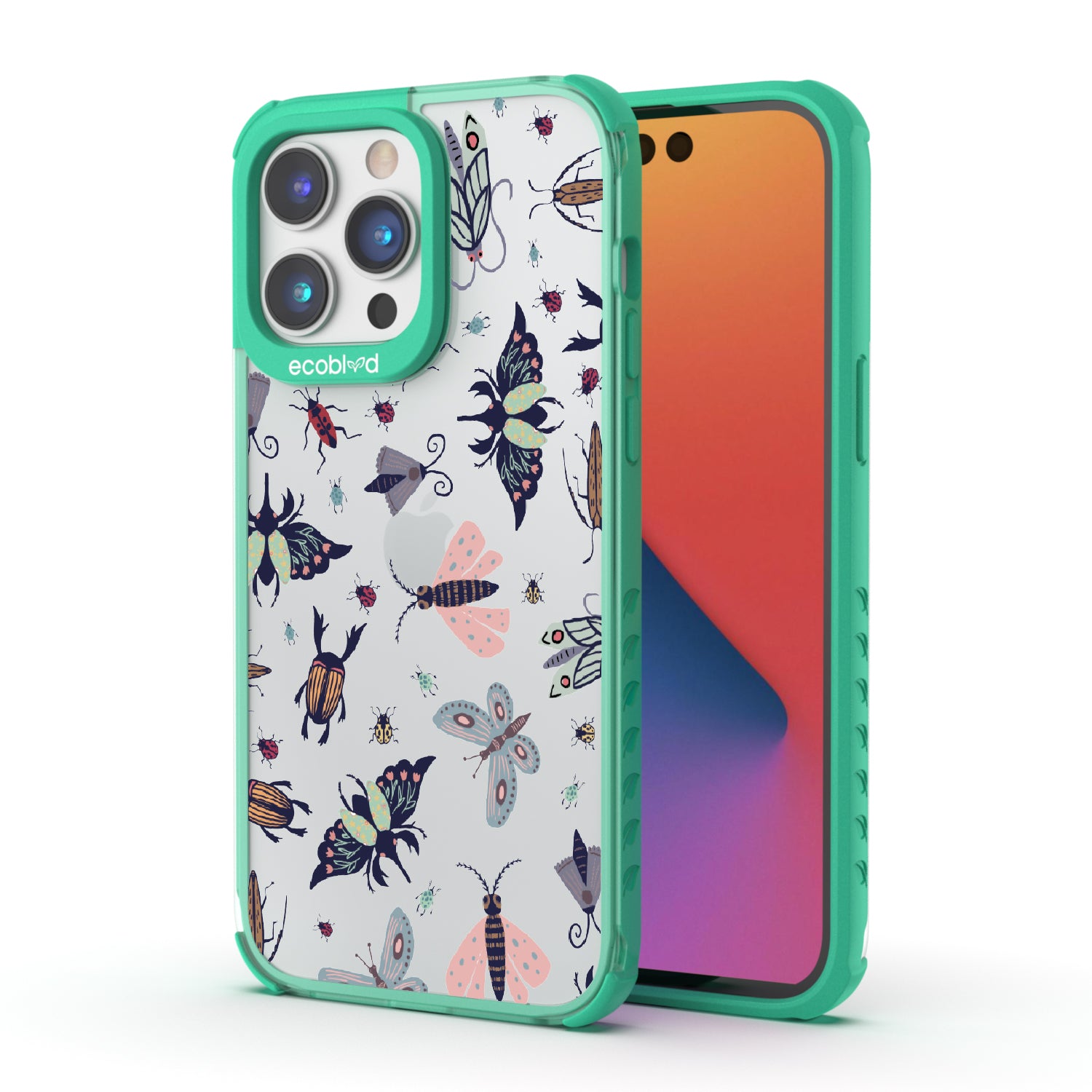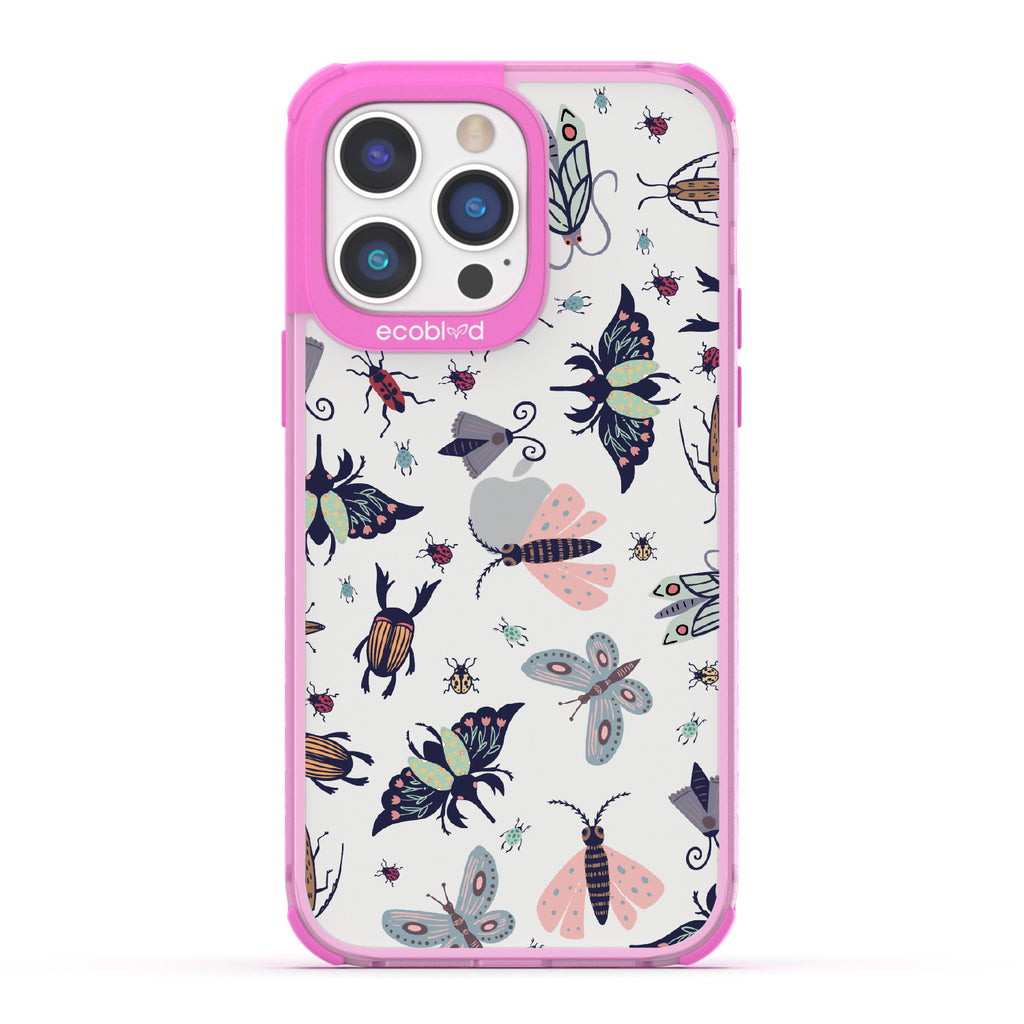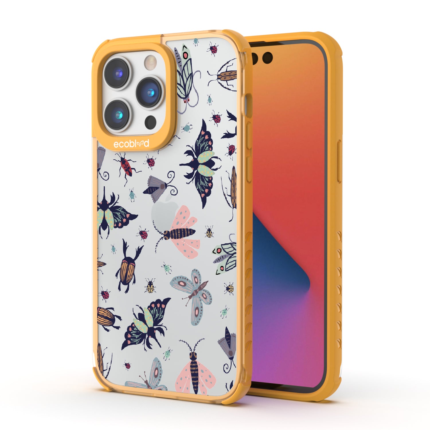 You beetle bee-lieve that the Laguna clear iPhone 14 Pro case - with its conversation-starting insect phone case design offers a one-of-a-kind style and protection while supporting ocean conservation efforts. Want to make your phone stand out from the swarm? The Bug Out design features a delightful array of whimsical insects, including fluttering butterflies and speedy dragonflies, that will keep you feeling playful and carefree in five captivating colors: Midnight Black, Cascade Blue, Foliage Green, Illuminating Yellow, and Wildflower Pink.