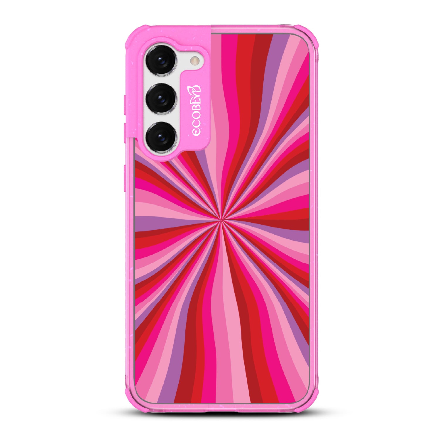 It's easy to express your pure emotions and devotion right from your phone with the Burst Of Passion design Laguna clear compostable Galaxy S23 case, as a radial, gradient explosion of delicate pinks, purples, and reds evokes your intense emotions on a Wildflower Pink case.