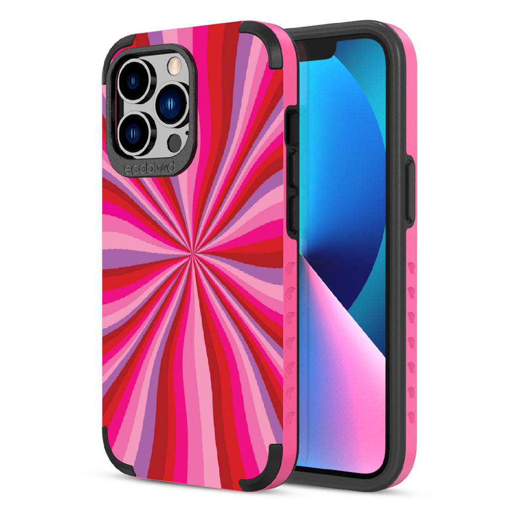 It's easy to express your pure emotions and devotion right from your iPhone with the loving style from the Burst Of Passion design on our Mojave rugged and compostable iPhone 13 Pro case, as a radial, gradient explosion of delicate pinks, purples, and reds evokes your intense emotions. Available on our Wildflower Pink colorway.