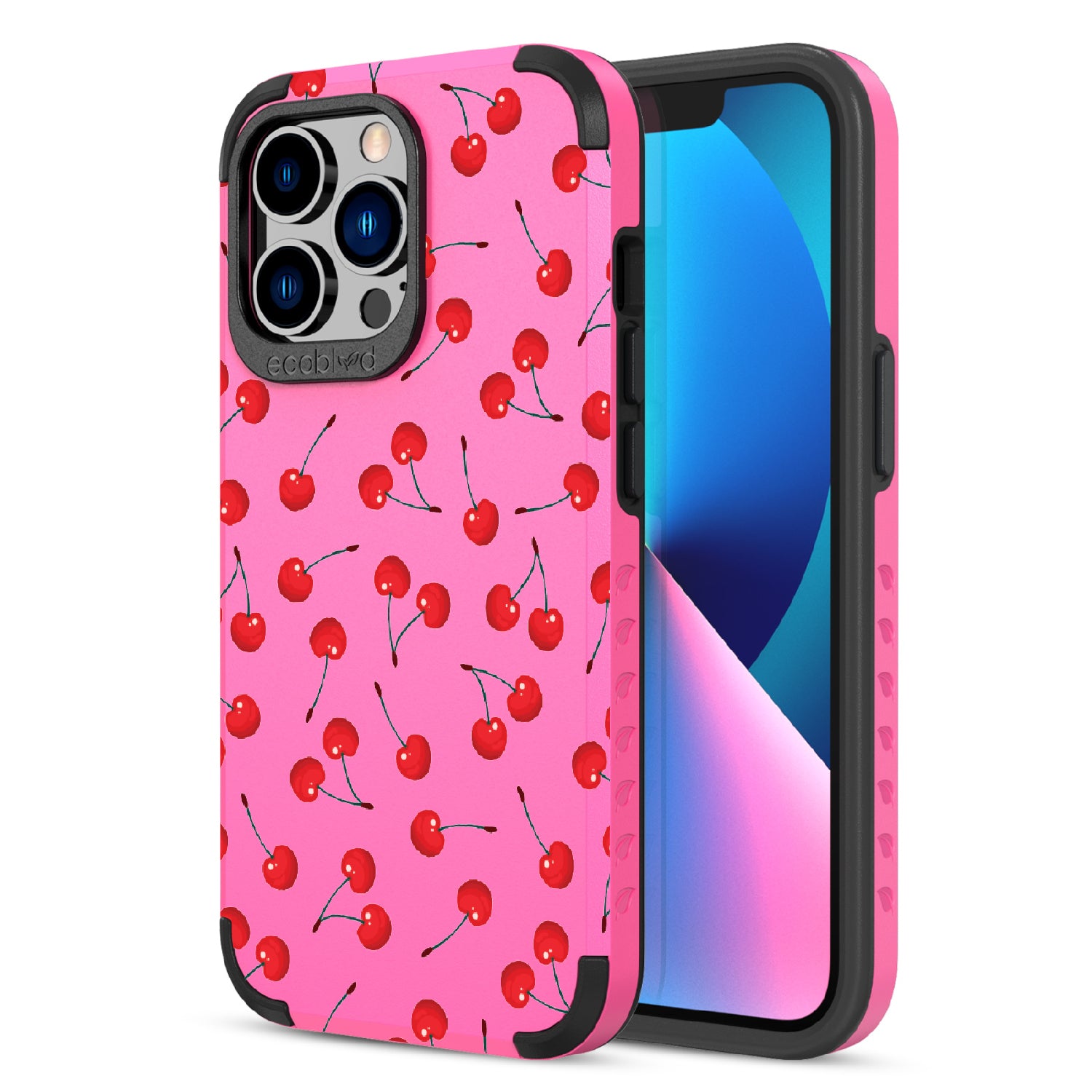 Cherish the little things with the Cherry On Top design on our Mojave rugged and compostable iPhone 13 Pro case, where each luscious cherry adds a juicy burst of passion that ties your entire look together to make you look like a sweet tart.