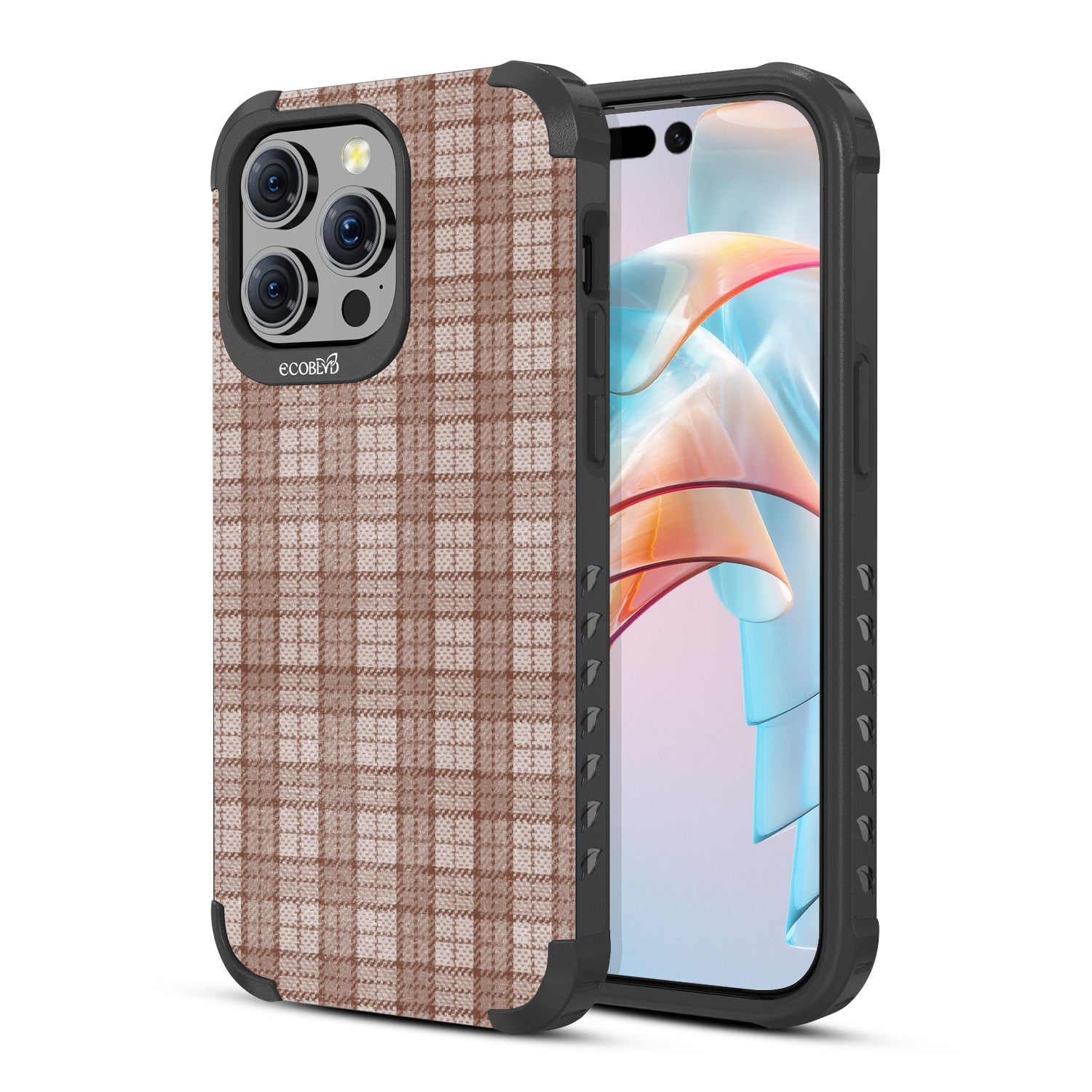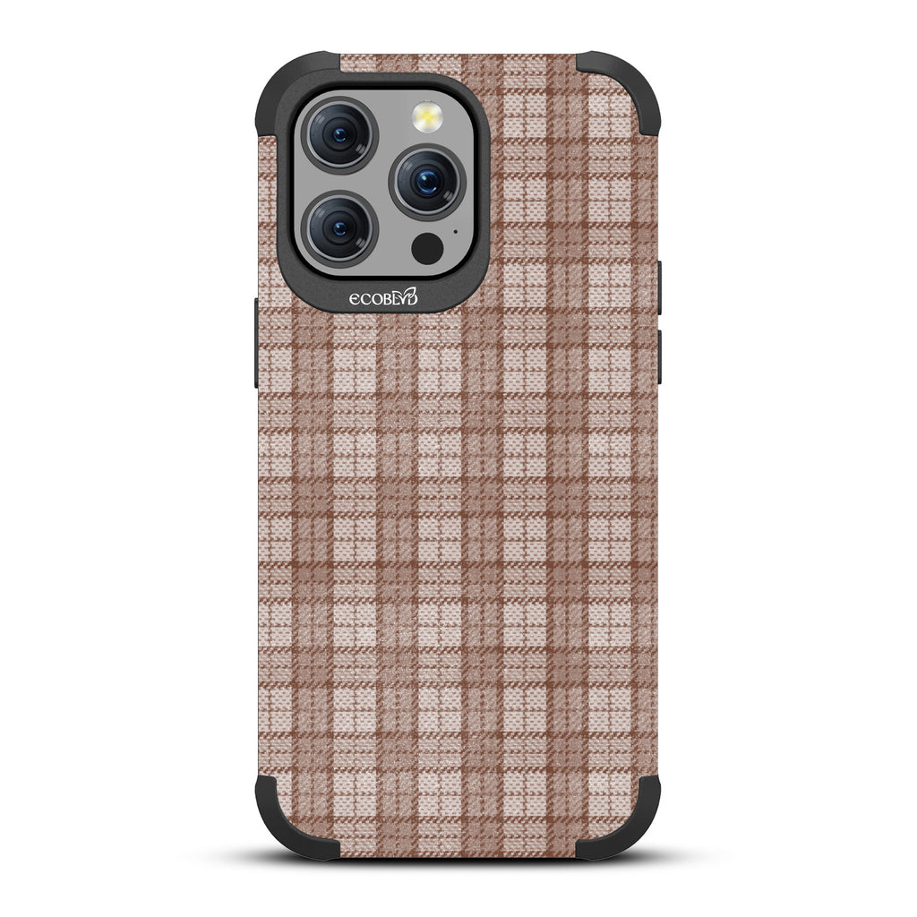 We bring you the cozy charm of Chestnut Tartan on our Mojave rugged and compostable iPhone 15 Pro Max MagSafe case, where the intricate chestnut and tan tones blend in a unique plaid pattern that embodies the spirit of the fall season. Your phone becomes a statement piece, showcasing the warmth of autumn's fashion.