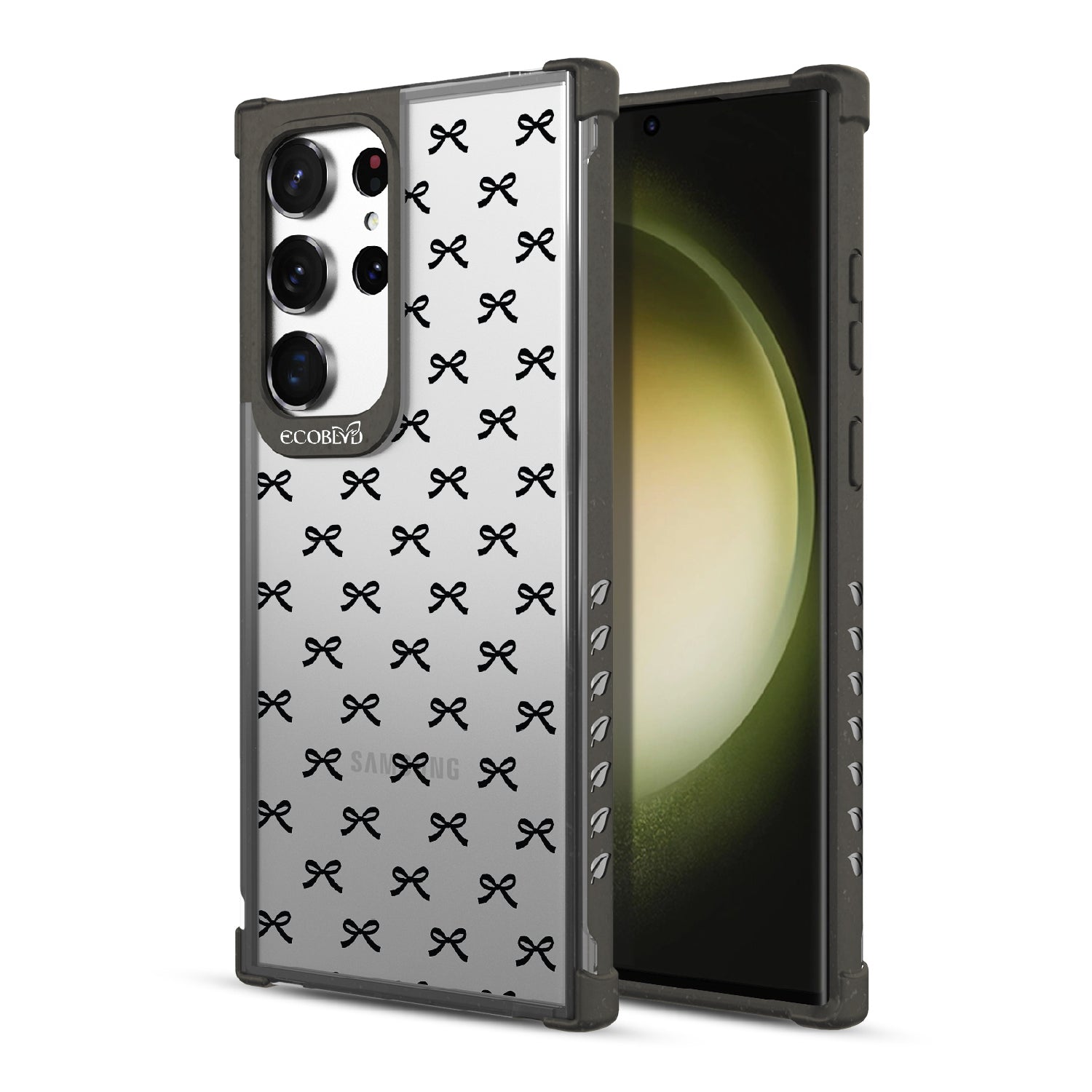 Get all dressed up to adorn and adore with the Coquette design on our Galaxy S23 Ultra case. Let the cute black bows be the stars of the show, gracing your phone with their dainty presence. As you hold your device, you'll feel the subtle embrace of everlasting bonds formed by each dainty knot, creating a sense of feminine connection and girlhood that goes beyond mere aesthetics.